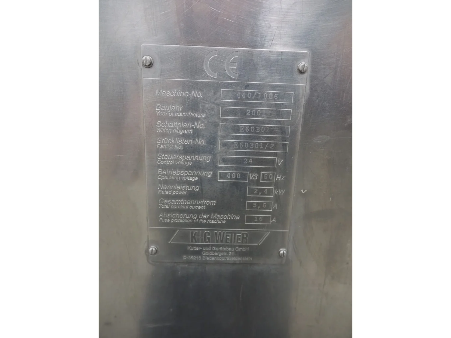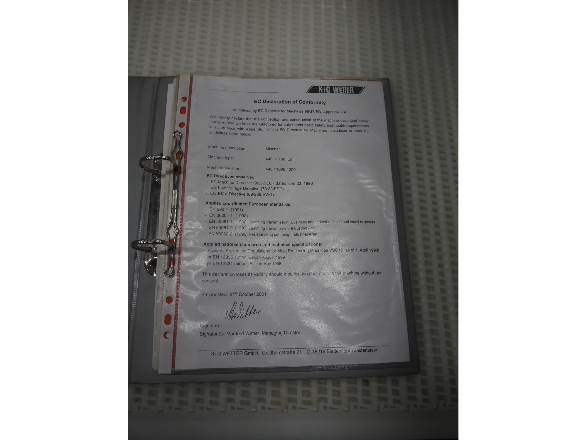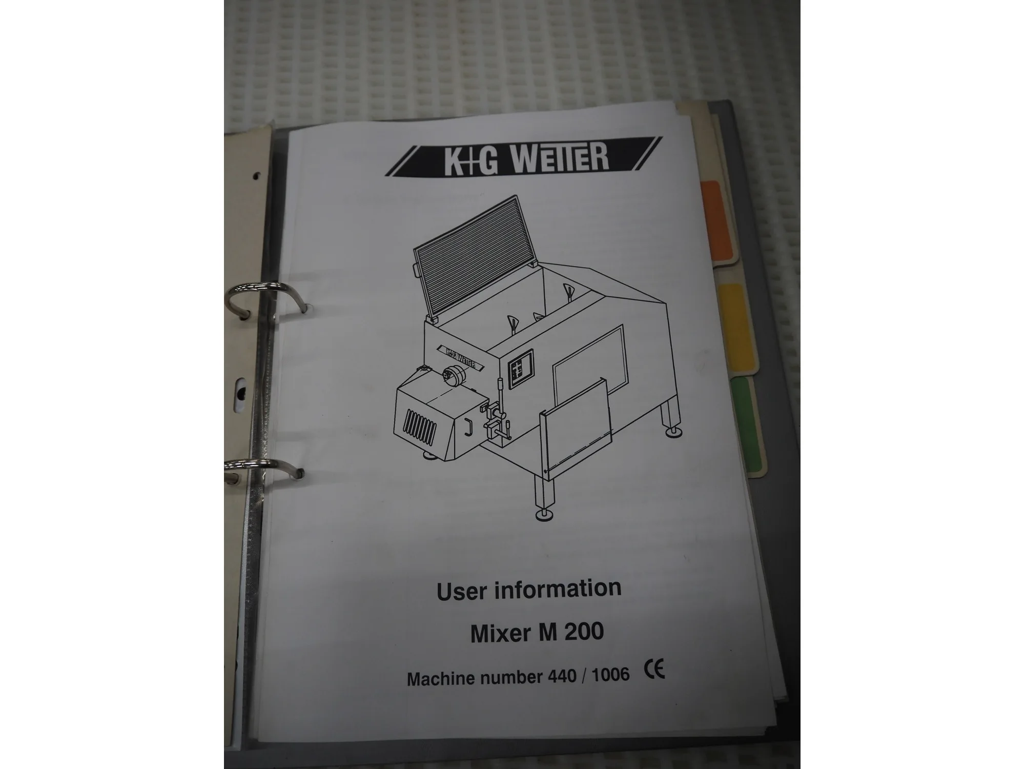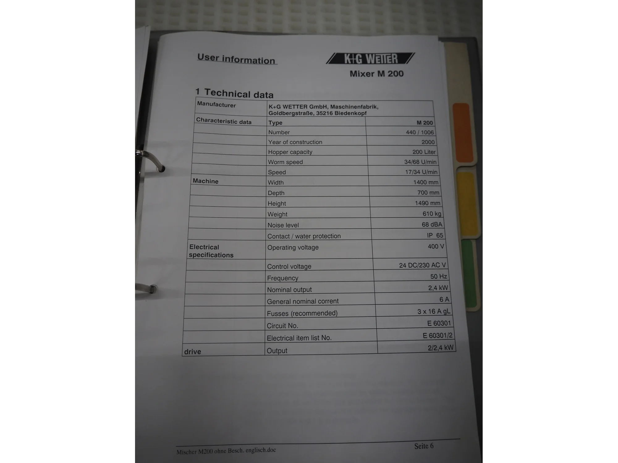 K+G Wetter paddle mixer, type: 440/200 Ltr., machine number: 440/1006, year of construction: 2001, 400 V, 50 Hz, 5.6 A, 2.4 kW, dimensions: 1800 mm x 1000 mm x 2310 mm.