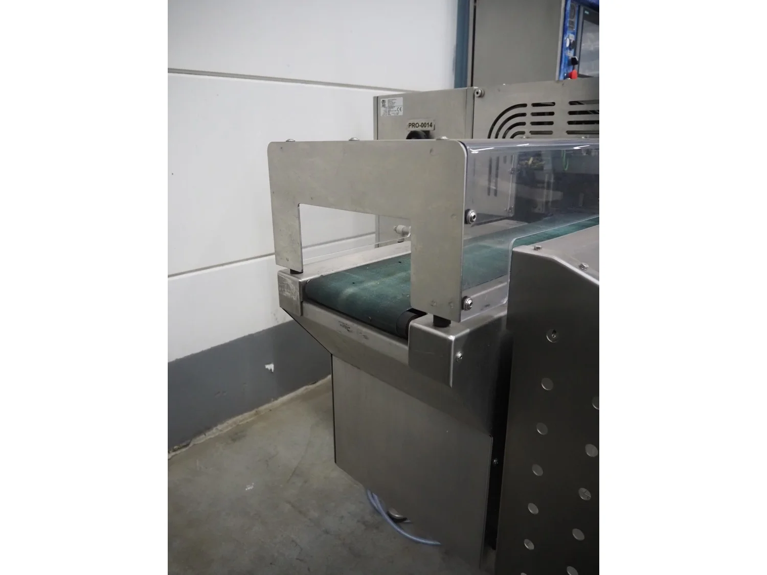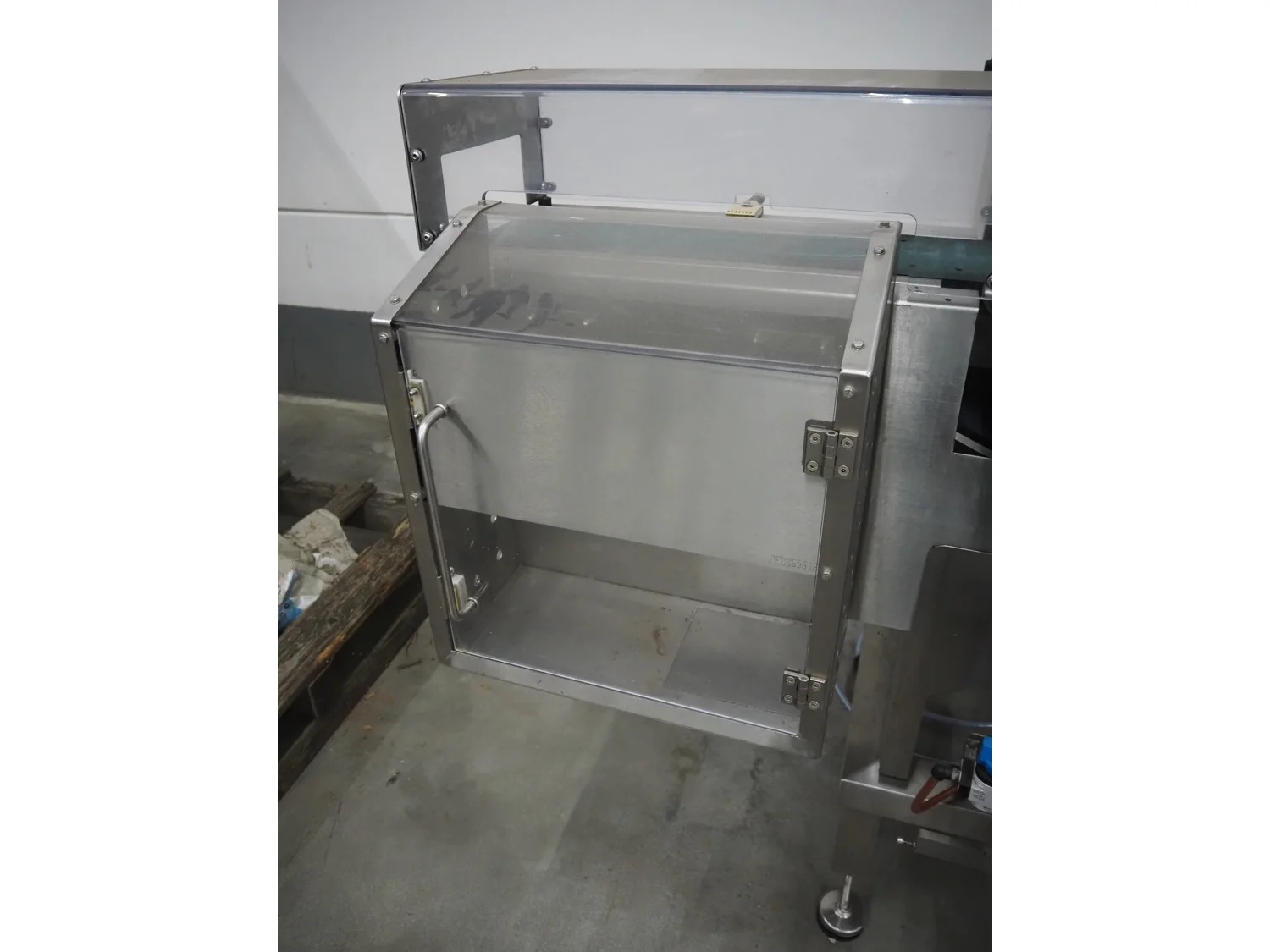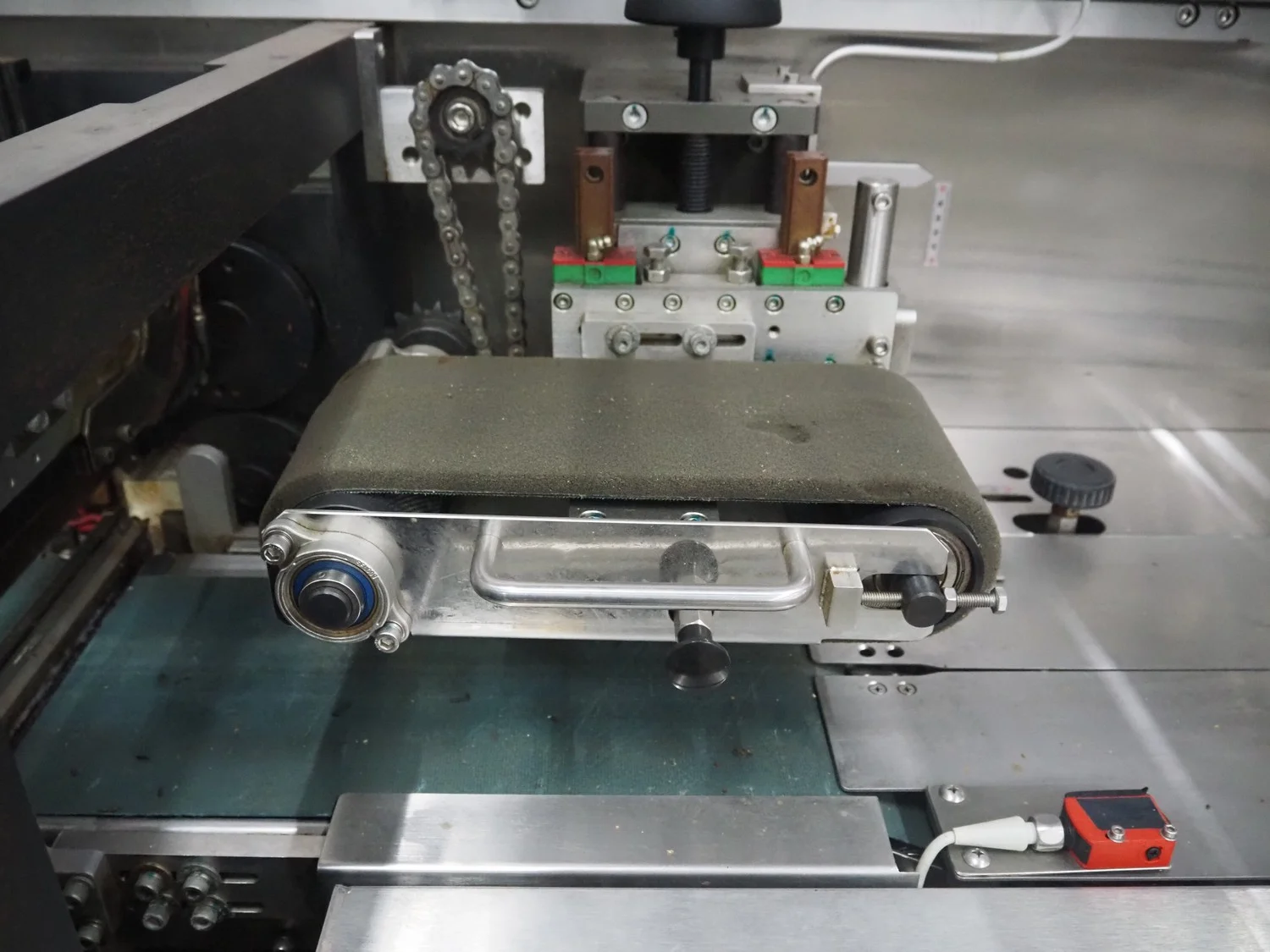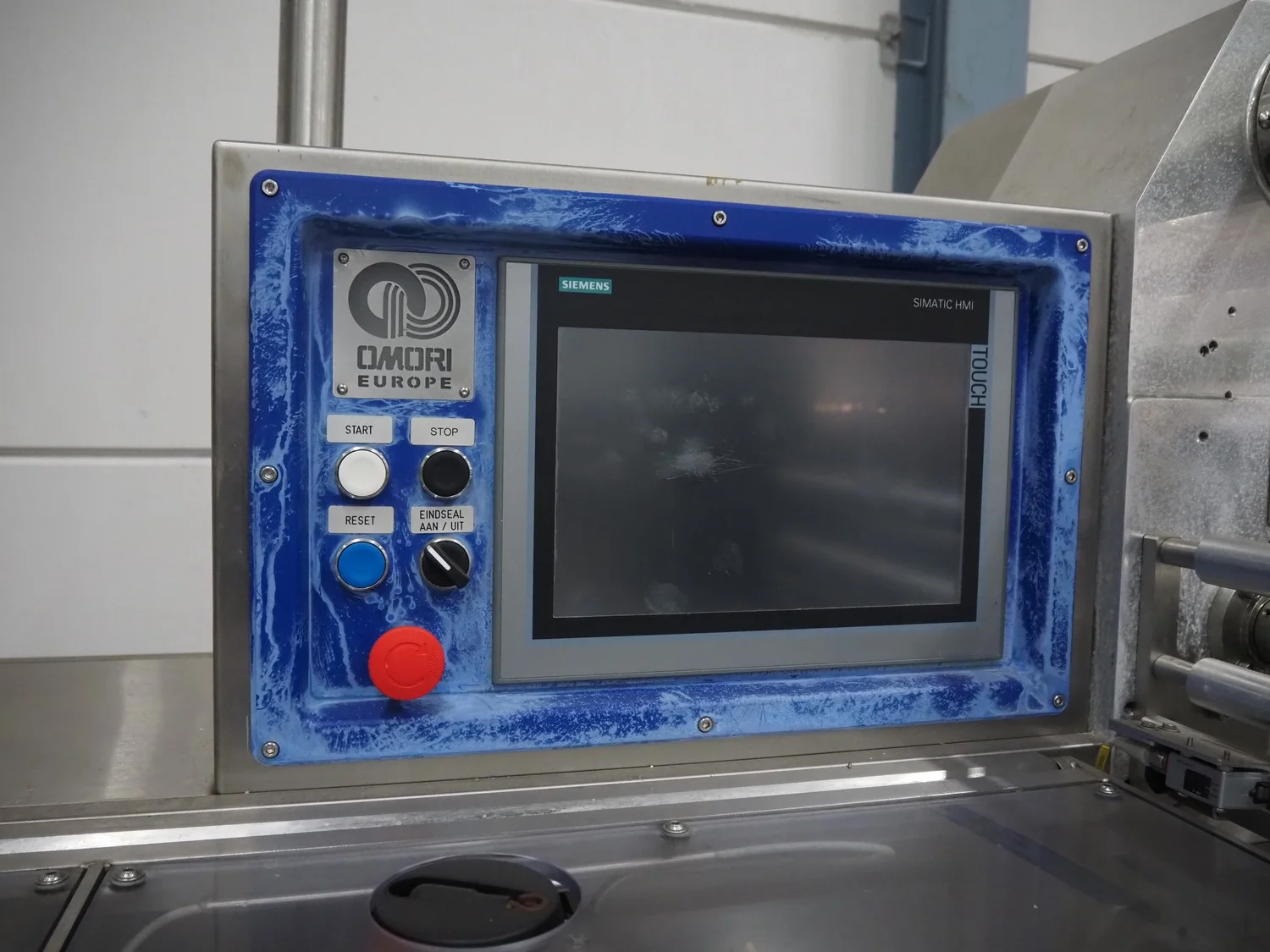 Omori Europe B.V. flowpacker, type: S-5015EU-BX, serial number: X18228, year of construction: 2020, 400 V, 3 Ph, 50 Hz, 10 kW, weight: 1500 kg, seal length: 250 mm, plastic outfeed belt, belt width: 180 mm, total dimensions: 3900 mm x 1100 mm x 1850 mm.