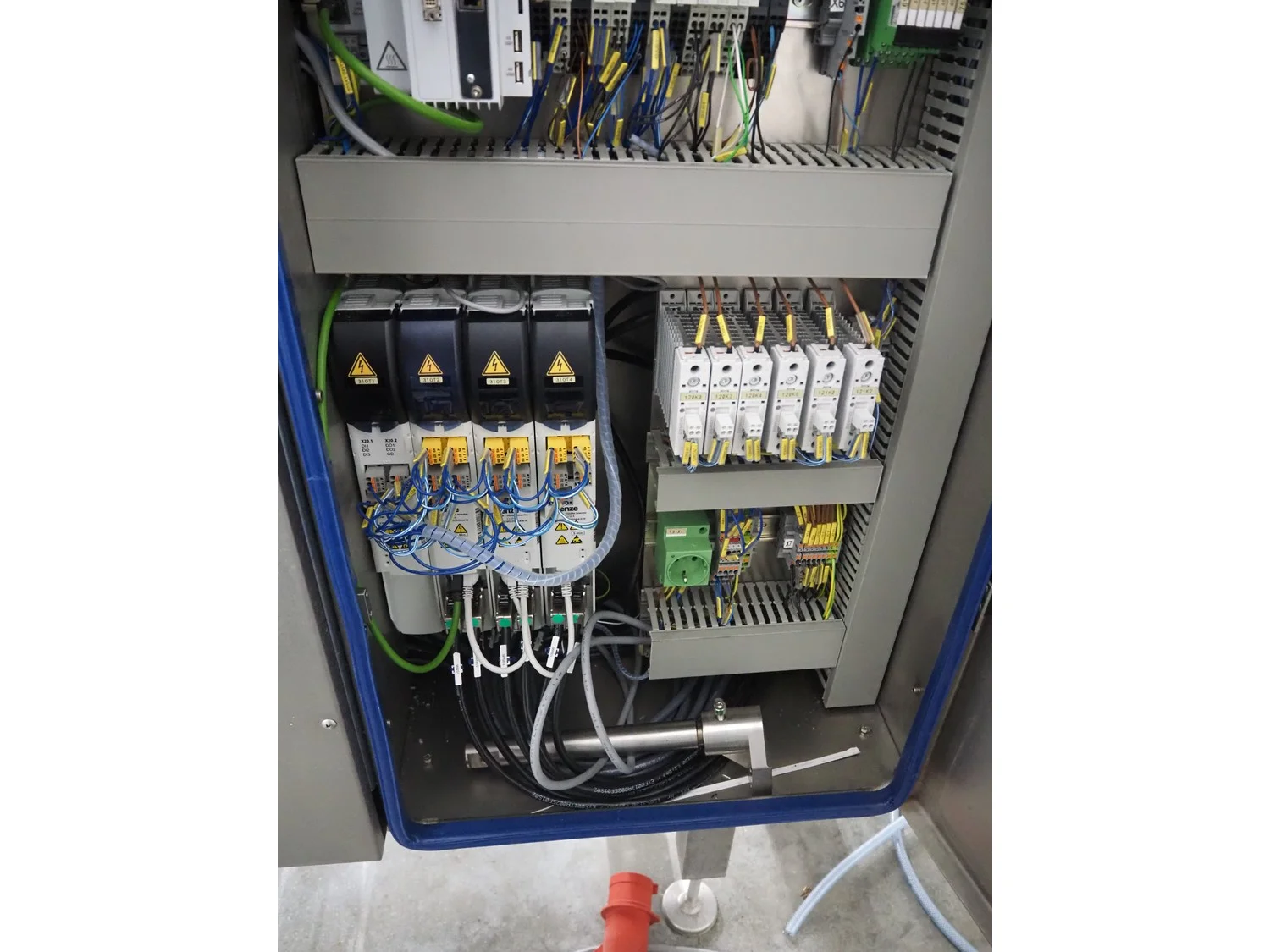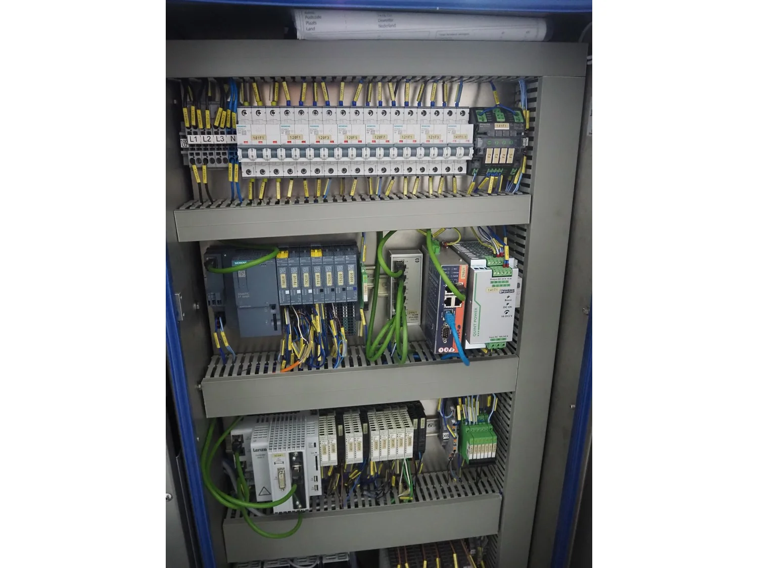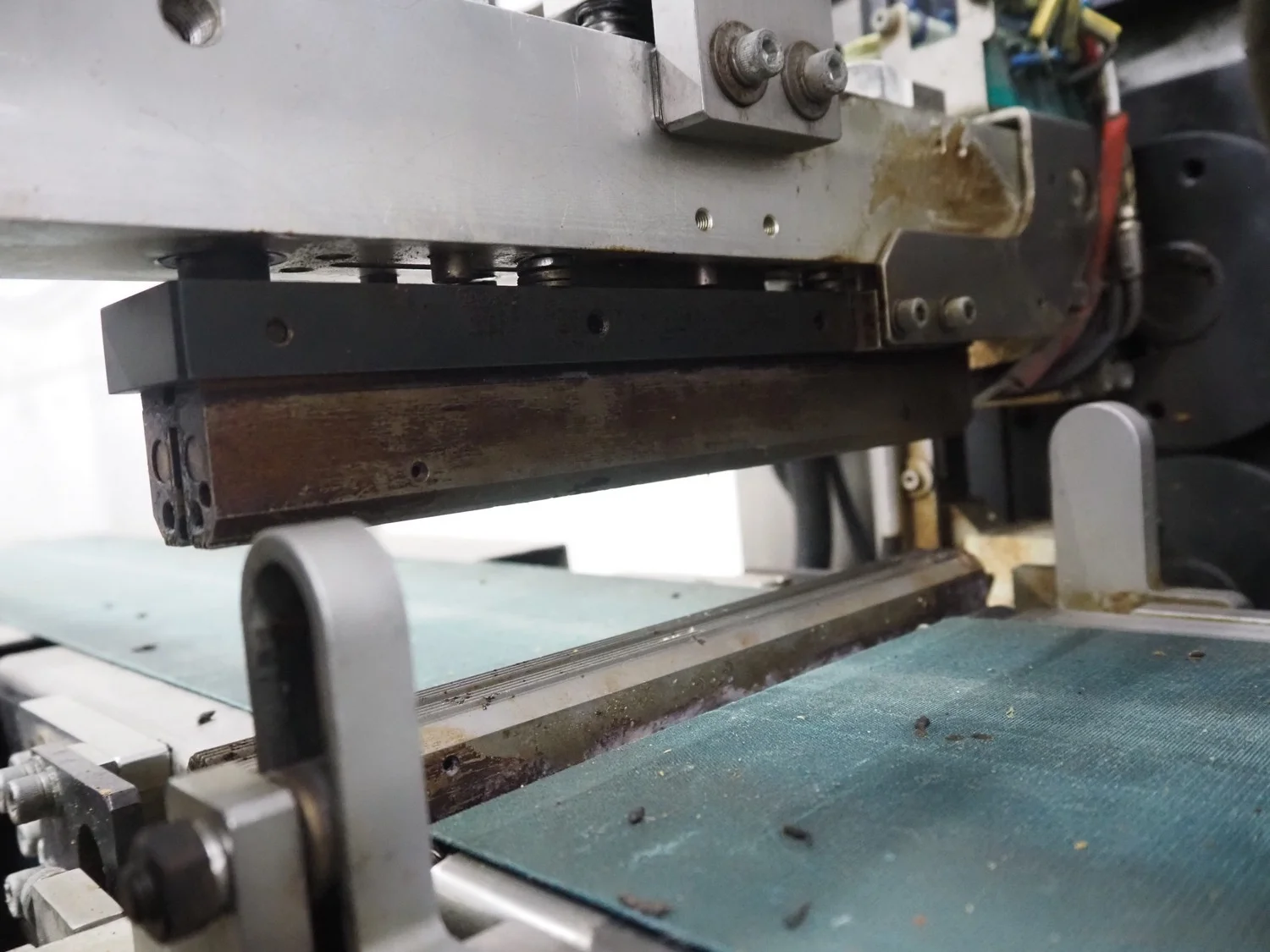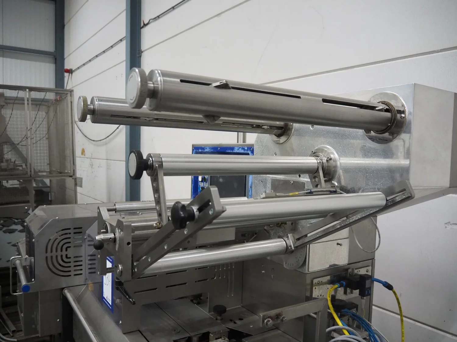 Omori Europe B.V. flowpacker, type: S-5015EU-BX, serial number: X18228, year of construction: 2020, 400 V, 3 Ph, 50 Hz, 10 kW, weight: 1500 kg, seal length: 250 mm, plastic outfeed belt, belt width: 180 mm, total dimensions: 3900 mm x 1100 mm x 1850 mm.