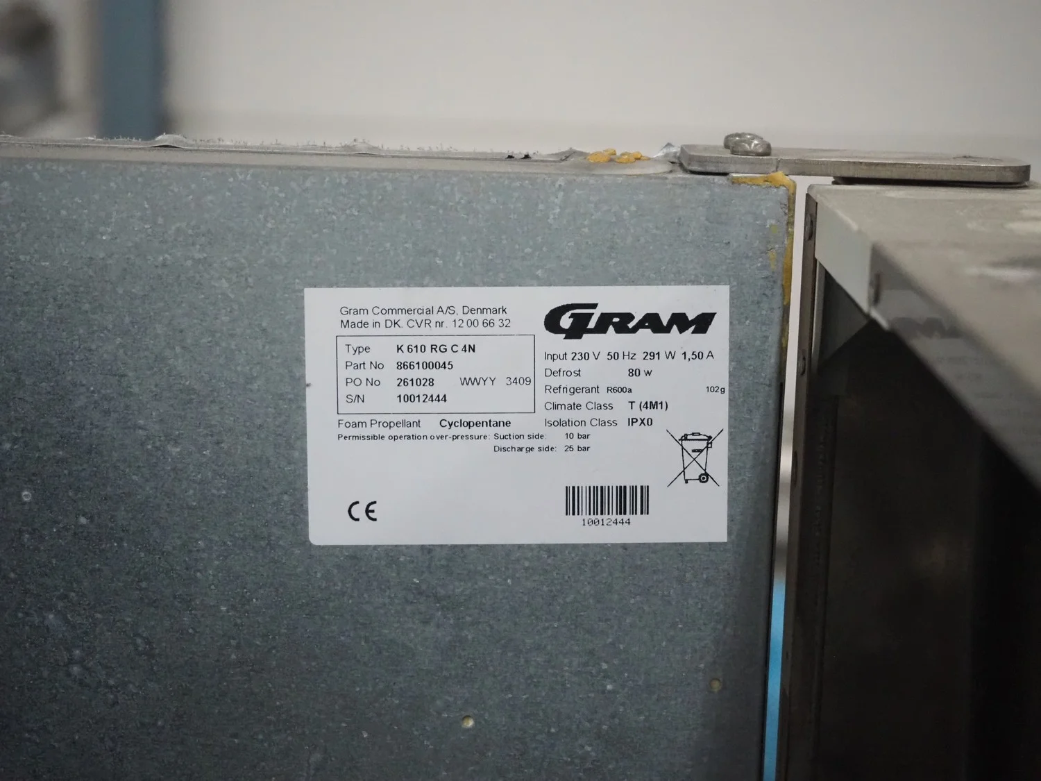 Gram mobile refrigerator, type: K 610 RG C 4N, serial number: 10012444, 230 V, 50 Hz, 1.50 A, 291 W, refrigerant: R600a, 102 gram, dimensions: 700 mm x 870 mm x 2000 mm.