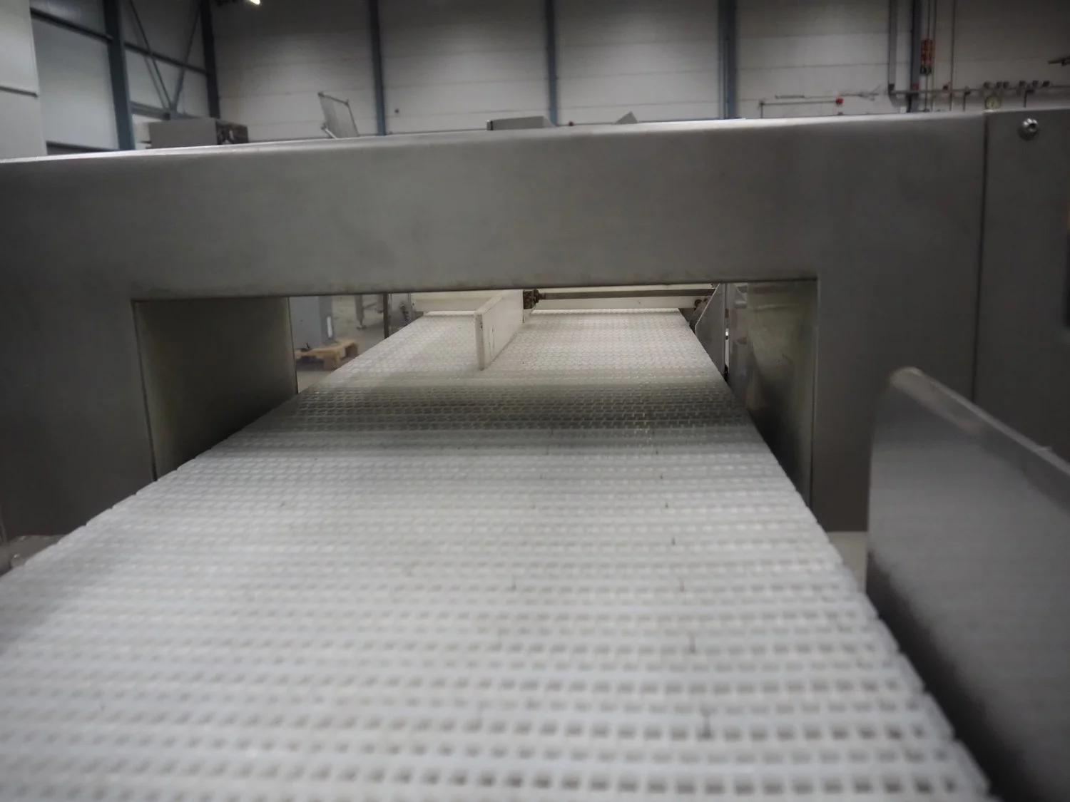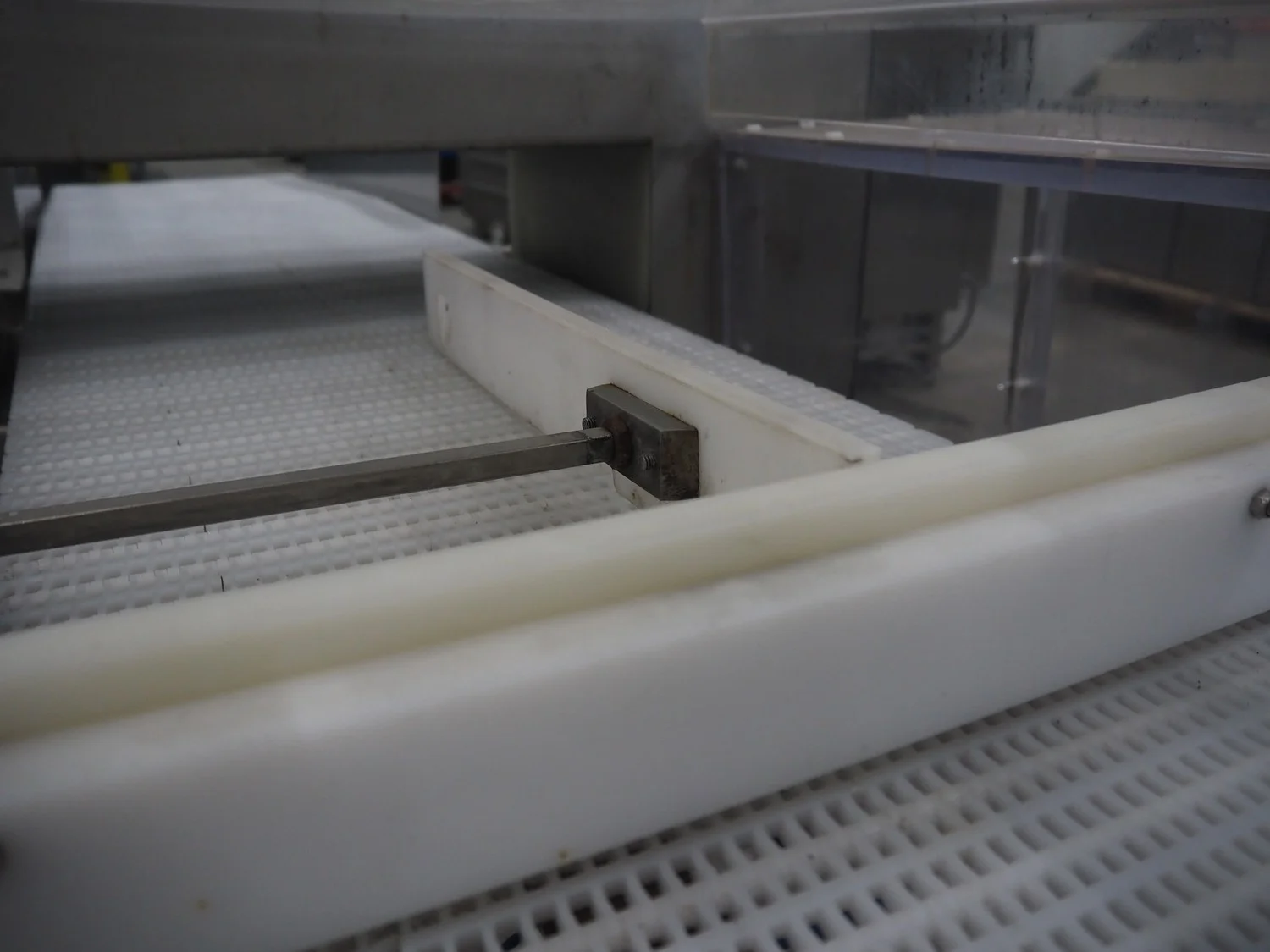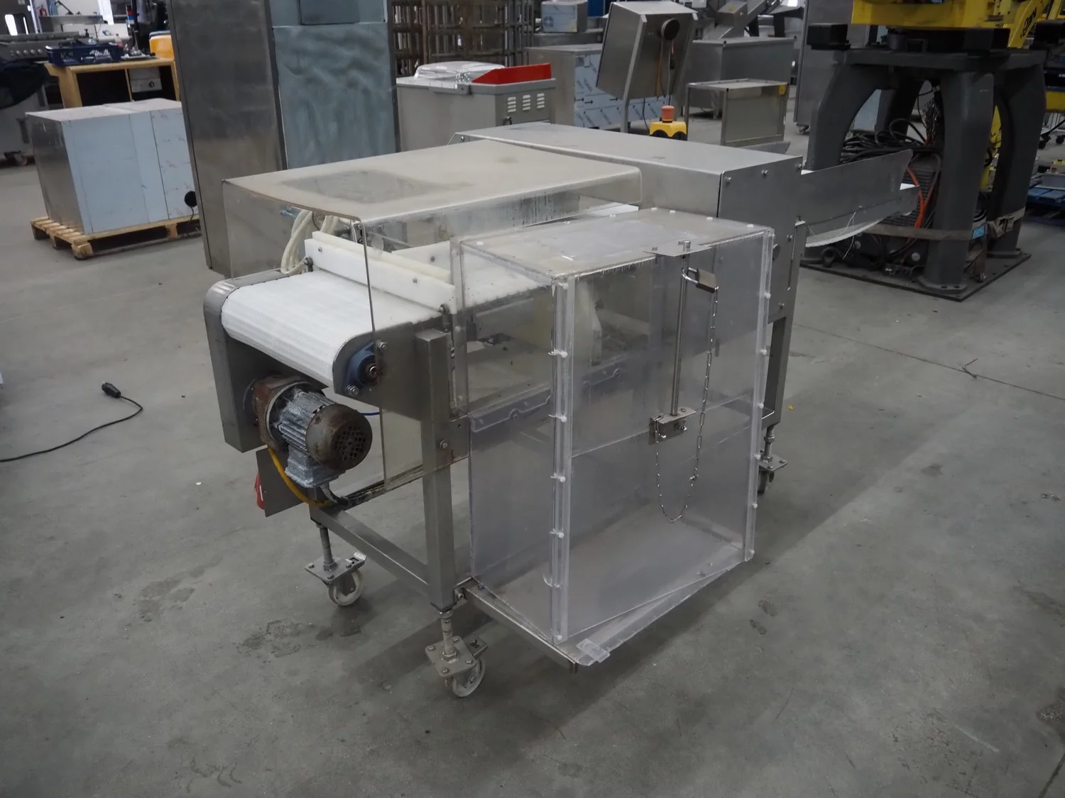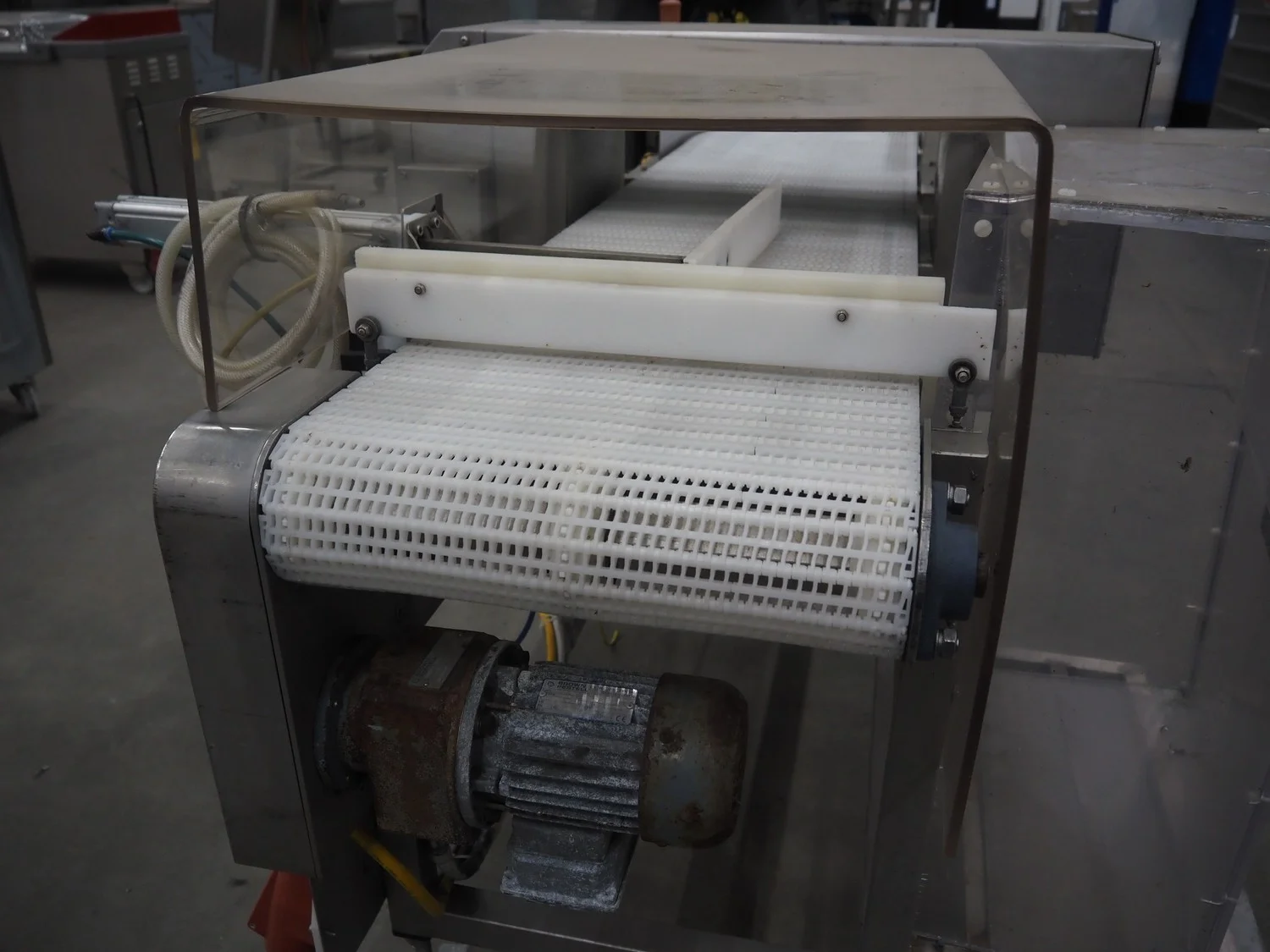 Loma Systems mobile metal detector with rejector, year of construction: 1997, plastic mesh belt, belt width: 400 mm, clearance: 450 mm x 120 mm, total dimensions: 2200 mm x 1200 mm x 1100 mm.