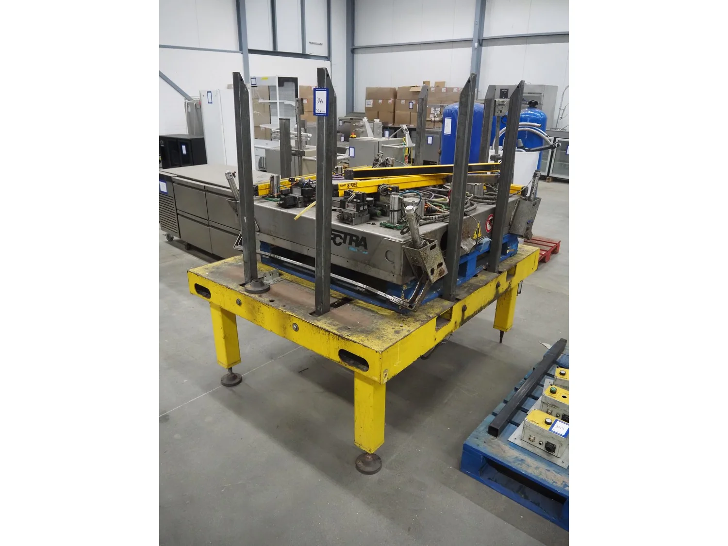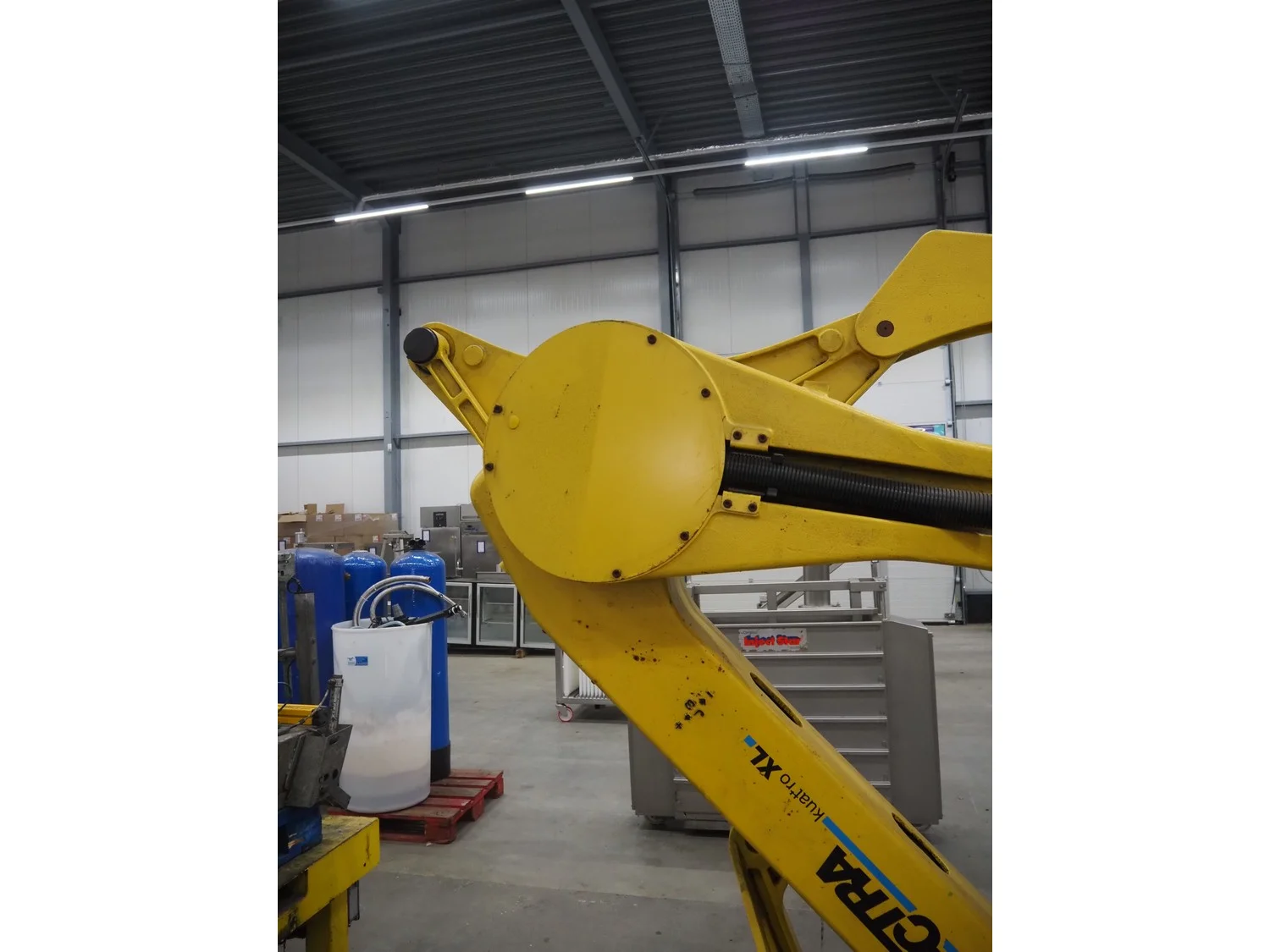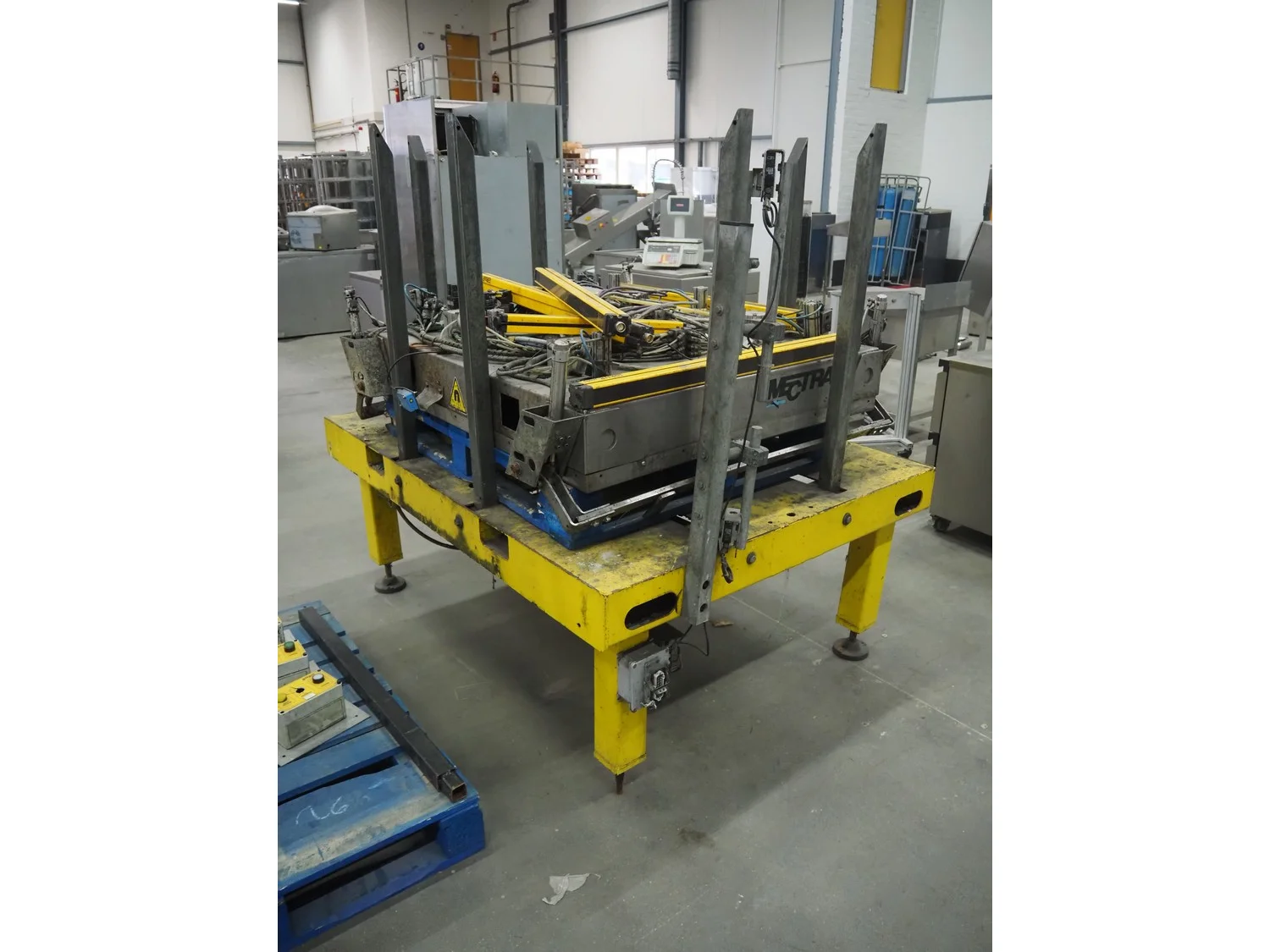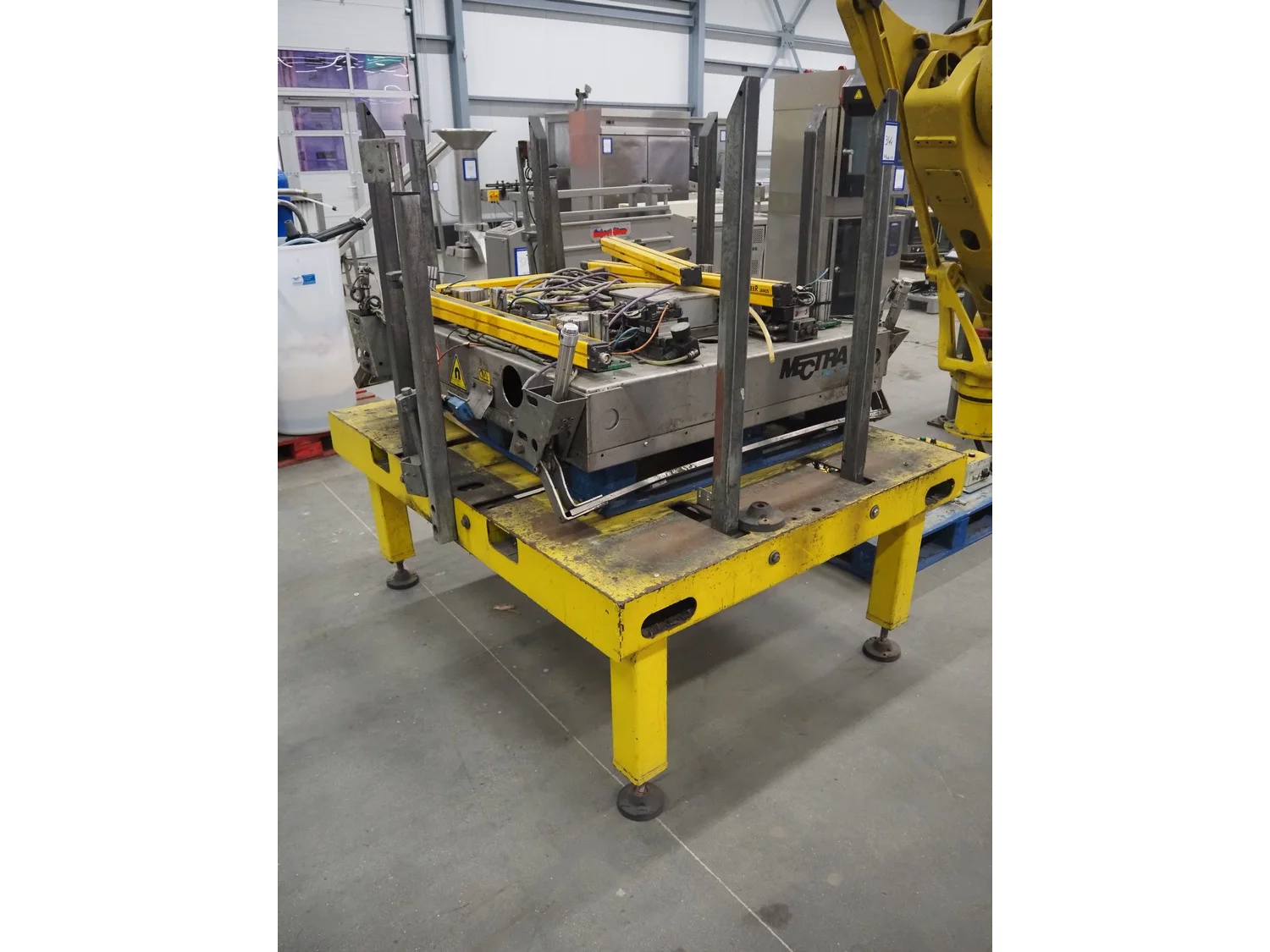 Fanuc palletizing robot with part for palletising system, pallet size: 1200 mm x 1000 mm x 145 mm, system: R-J3IC, type robot: A05B-2513-B010. dimensions robot: 2950 mm x 1200 mm x 2290 mm.