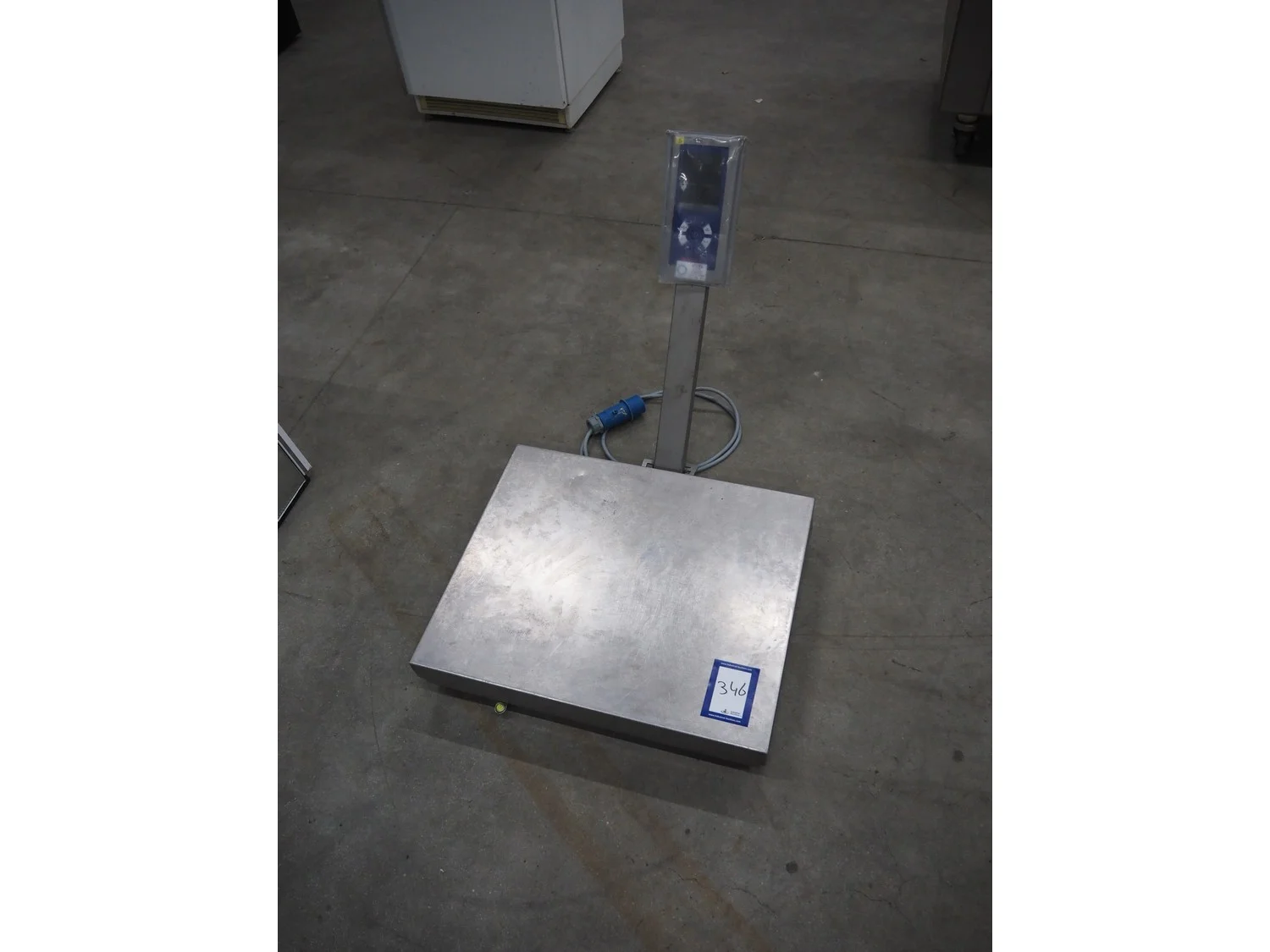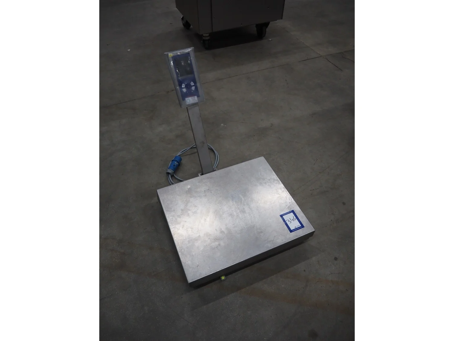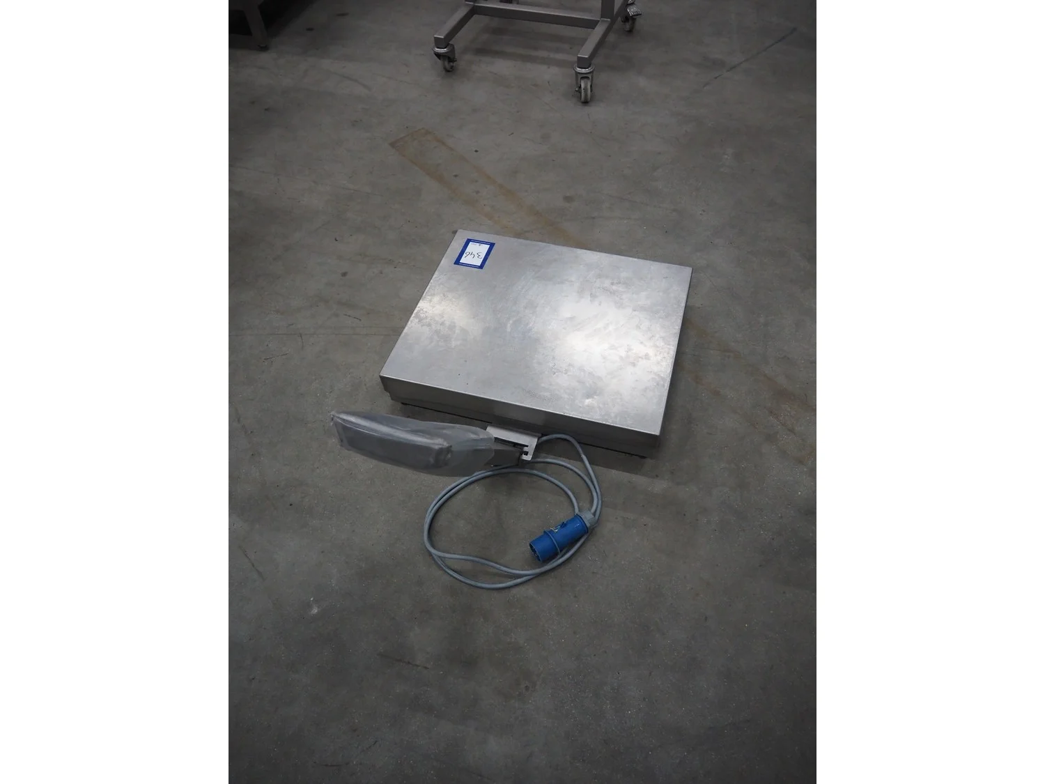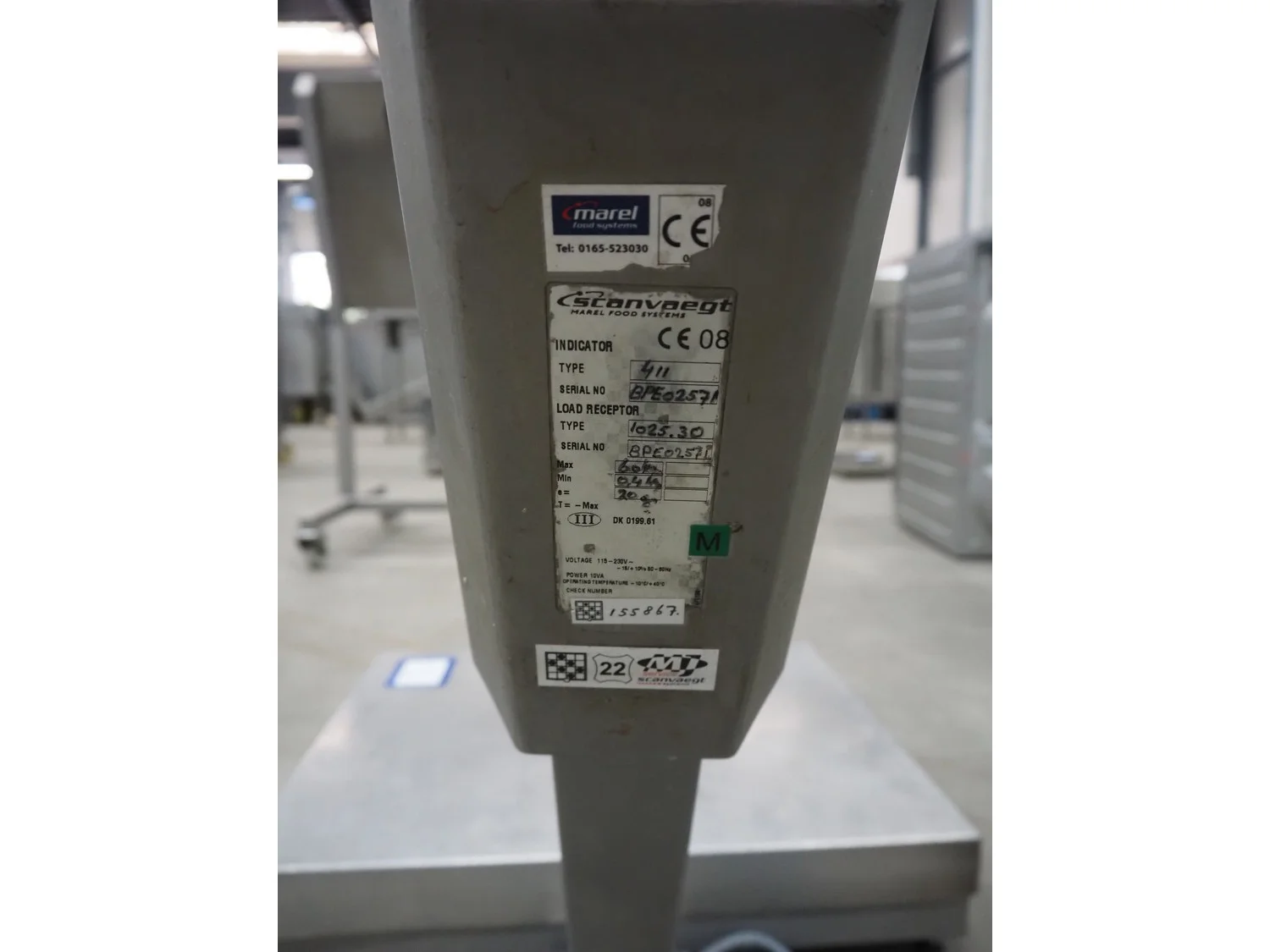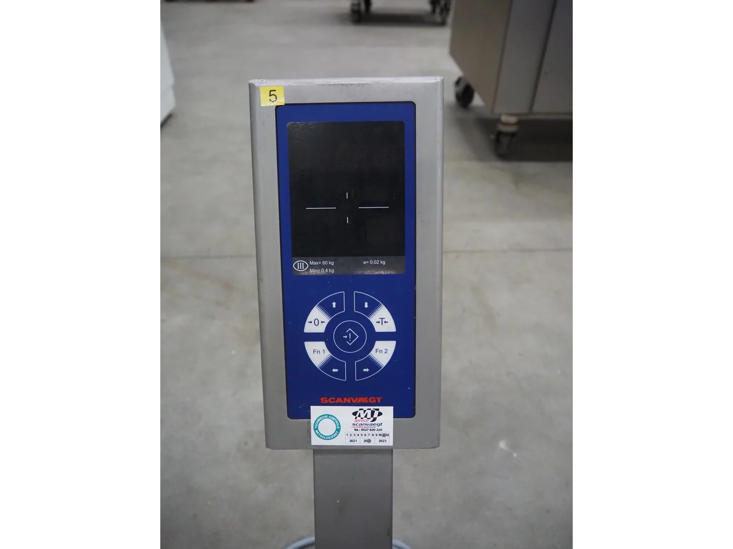 Scanveagt weighing scale with indicator, type indicator: 411, serial number: BPE02571, type receptor: 1025.30, serial number: BPE02571, maximum weight: 60 kg, minimum weight: 0.4 kg, e= 20 gram, dimensions: 560 mm x 600 mm x 700 mm.