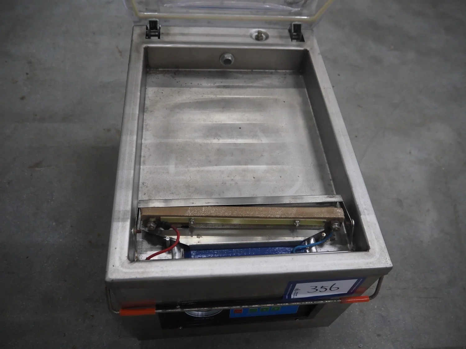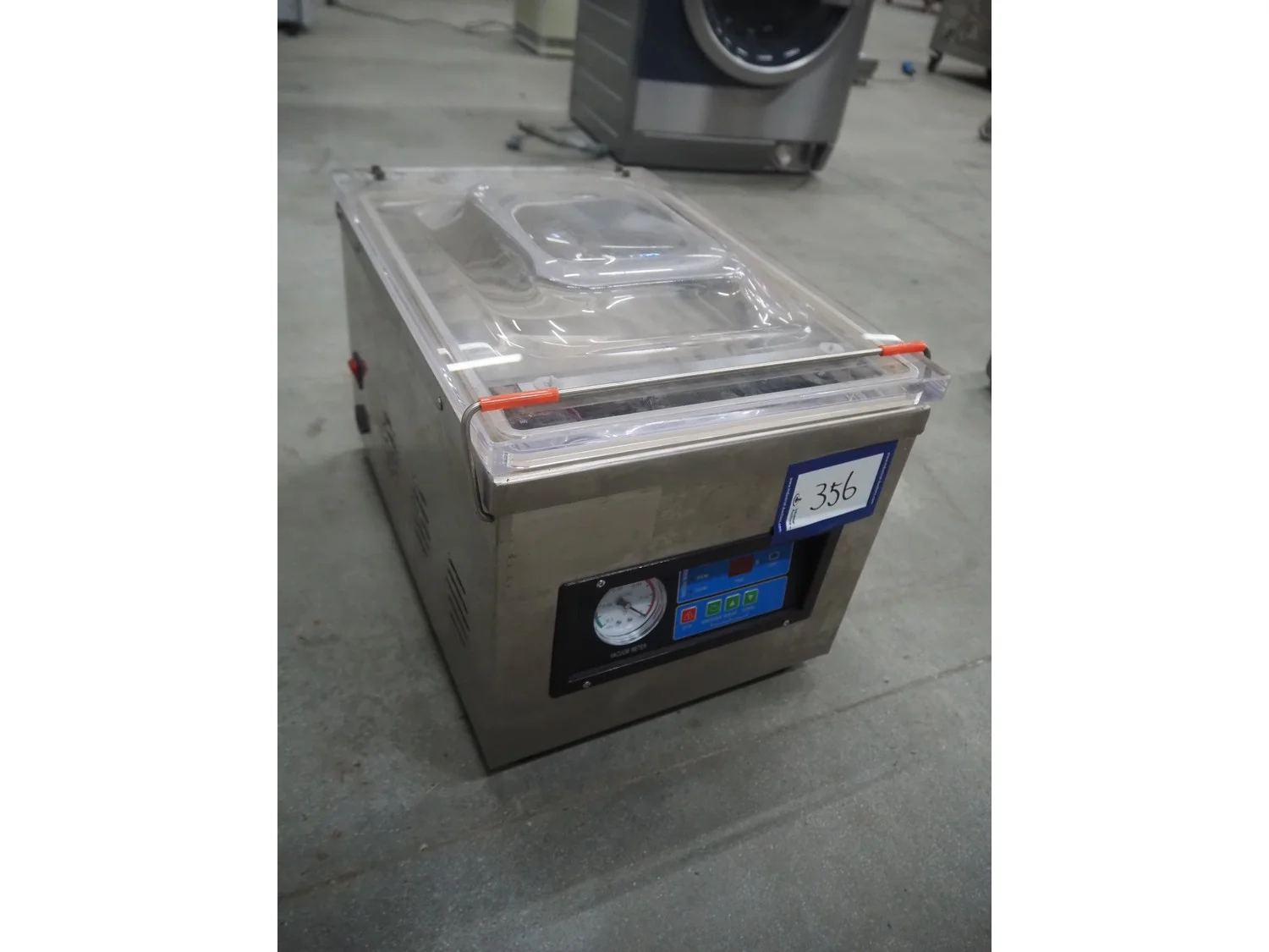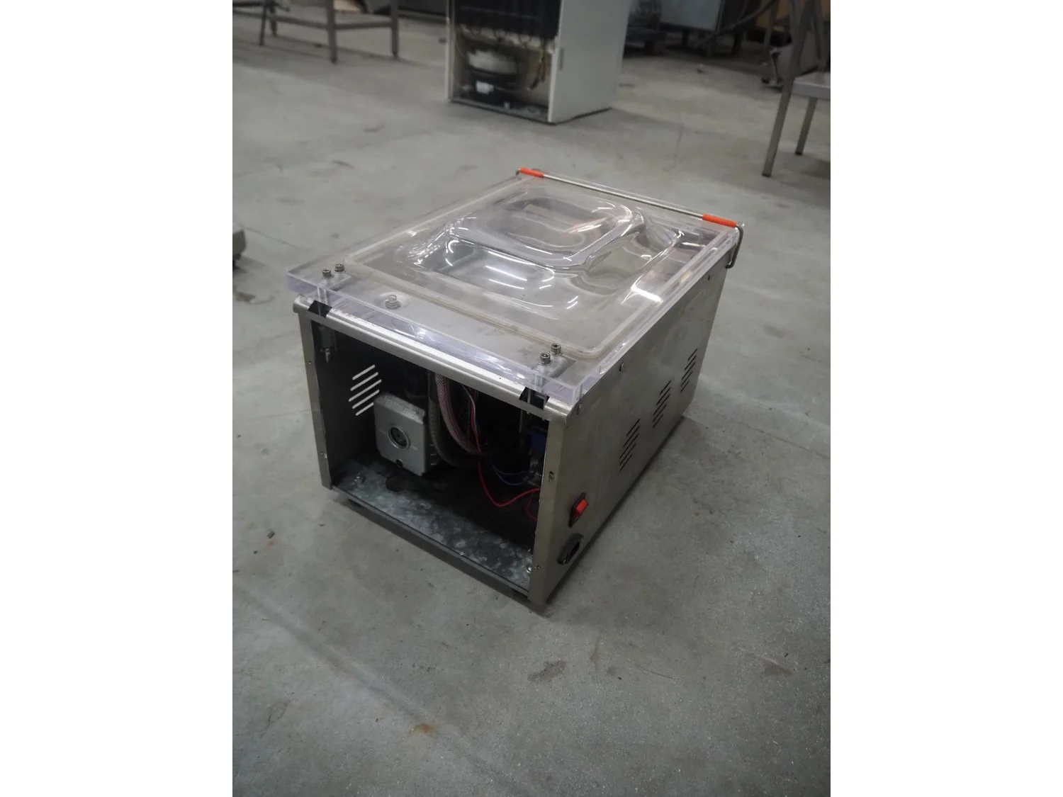 Table model vacuum machine, seal length: (1x) 260 mm, dimensions chamber: 390 mm x 285 mm, total dimensions: 500 mm x 340 mm x 400 mm. Missing cover.