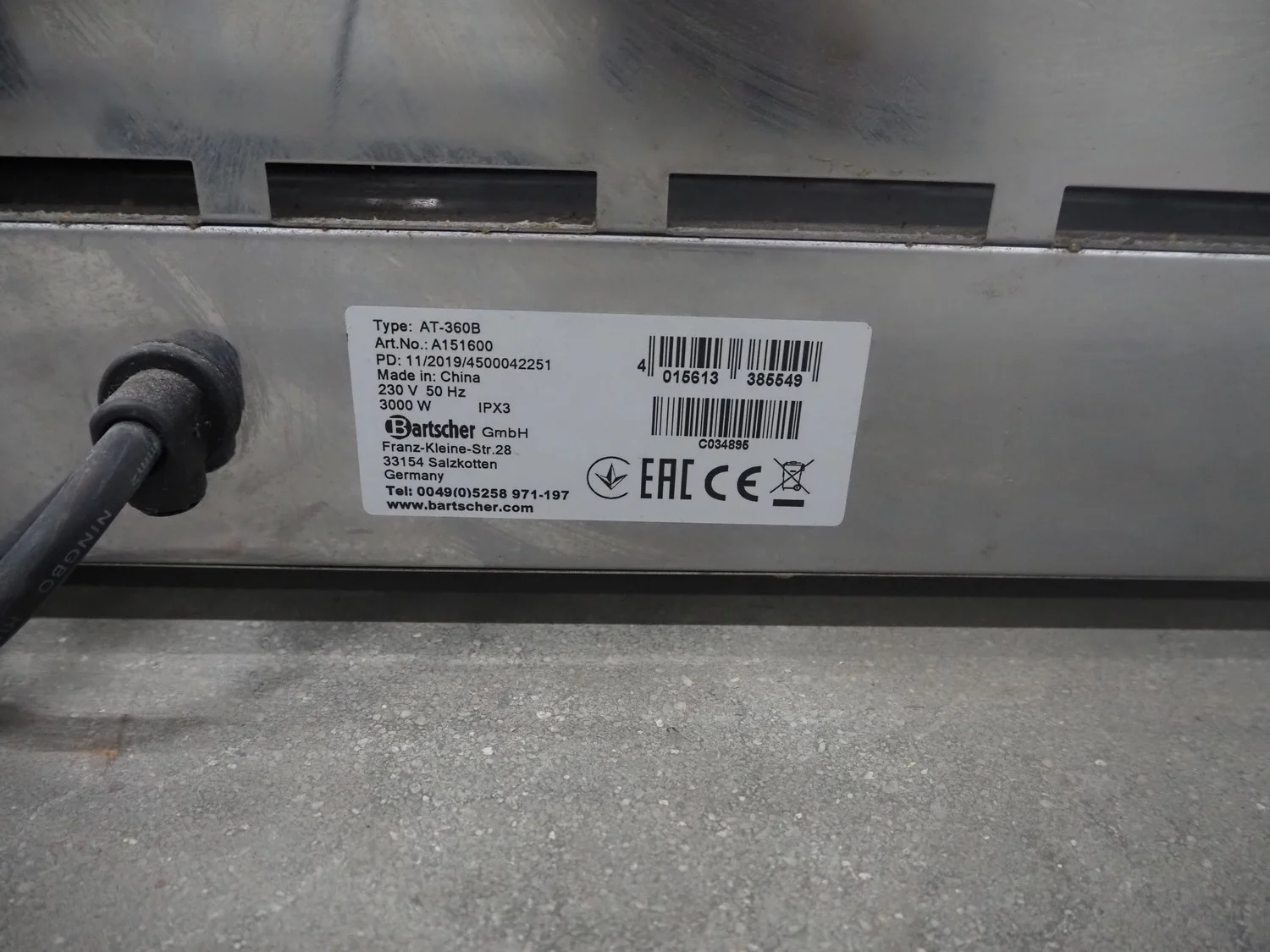 Bartscher grill, type: AT-360B, year of construction: 2019, 230 V, 50 Hz, 3000 Watt, electric heated, dimensions: 440 mm x 250 mm x 400 mm.