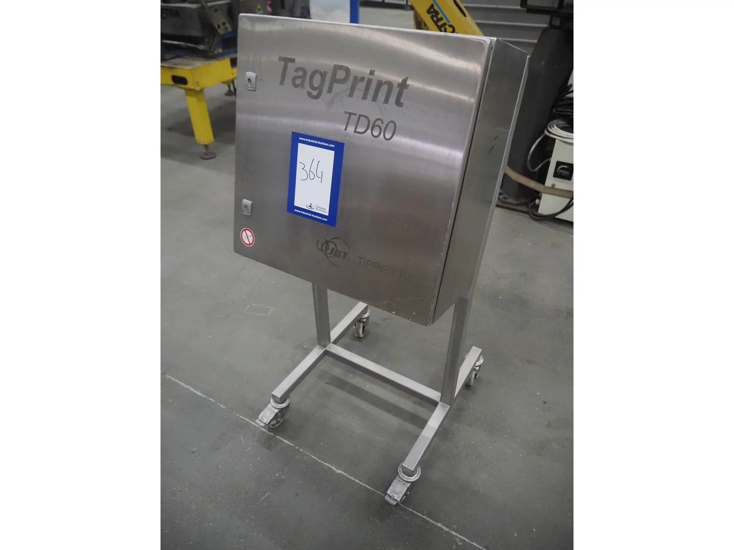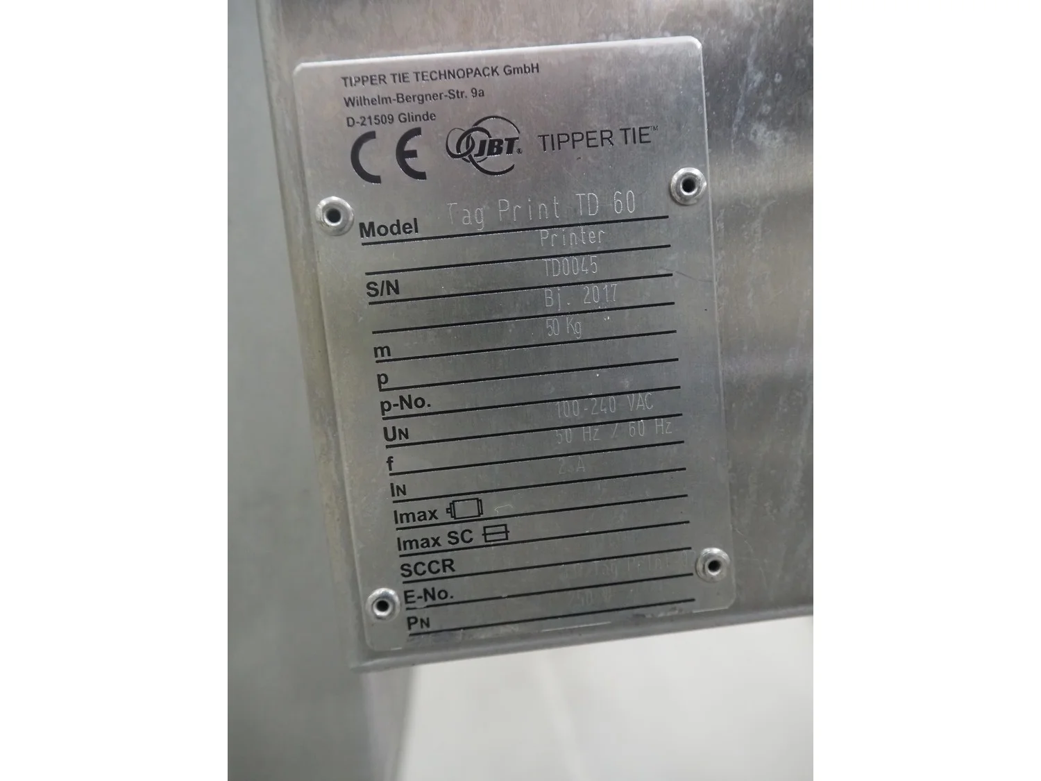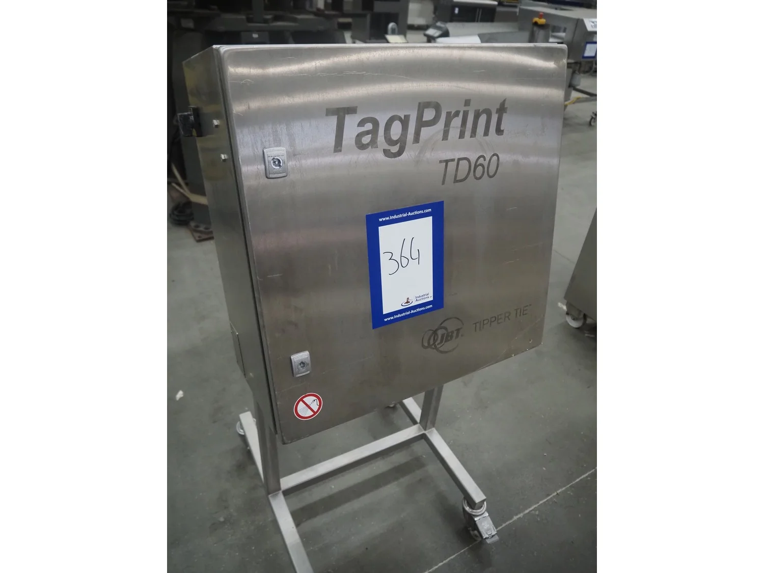 Tipper Tie Technopack mobile labelling system, type: Tag print TD-60, serial number: TD0045, year of construction: 2017, 240 V, 50-60 Hz, 2 A, dimensions: 600 mm x 600 mm x 1350 mm.