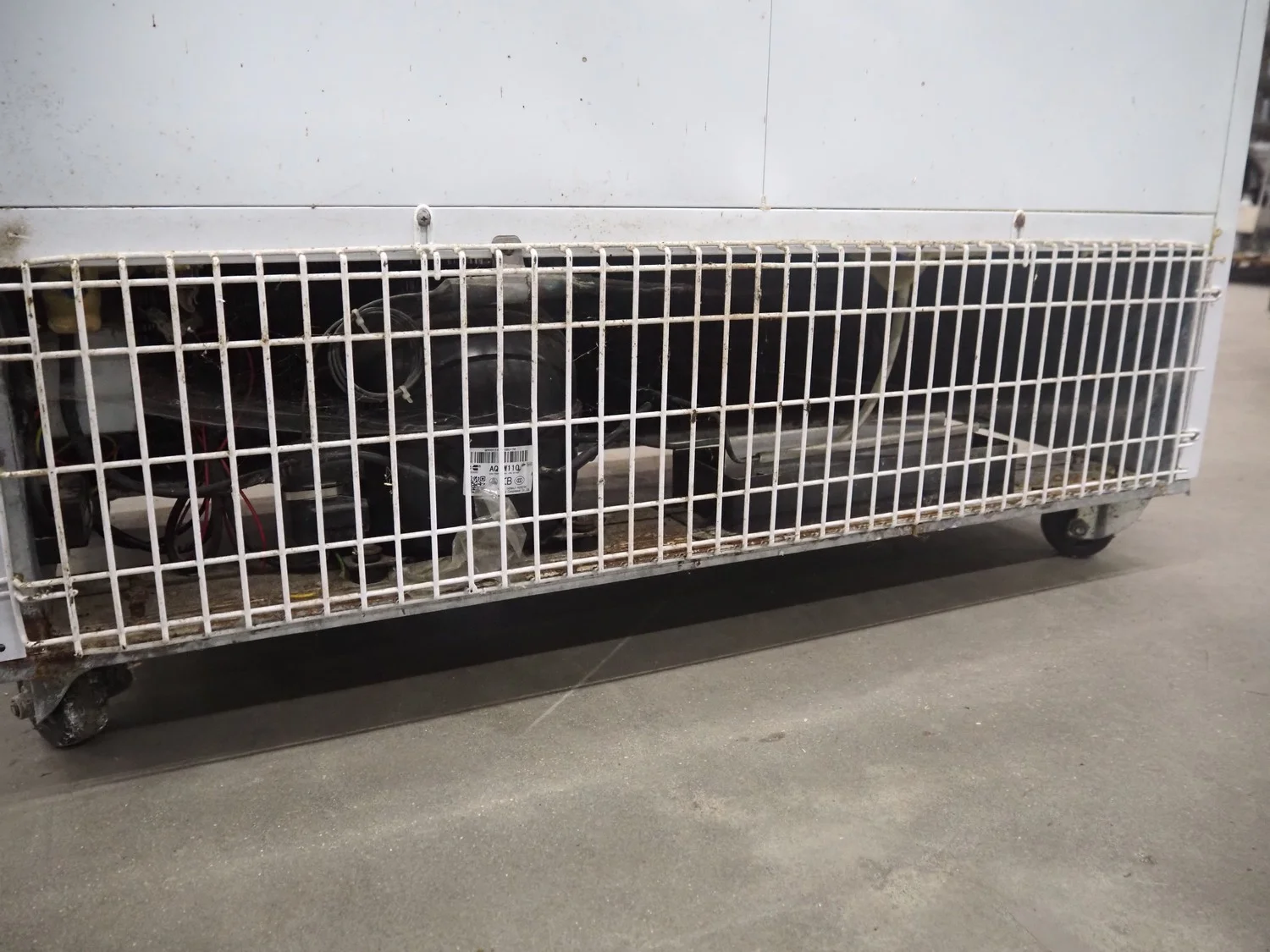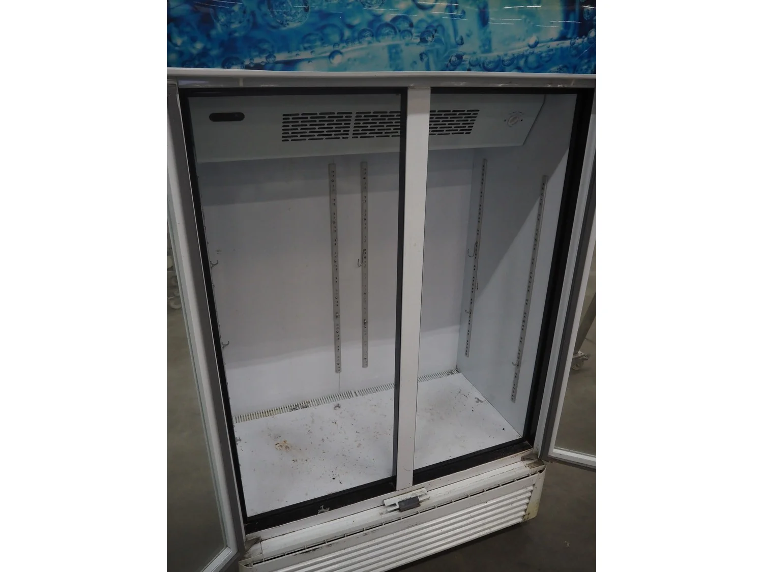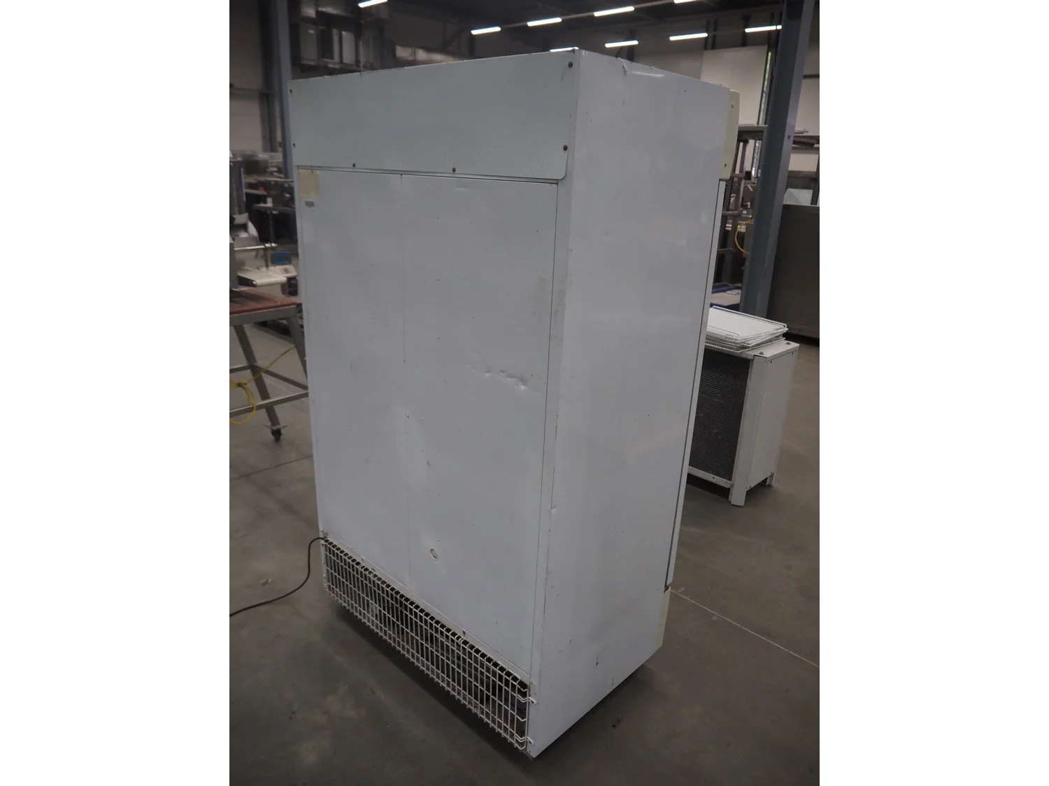 Mobile refrigerated showcase, dimensions: 1100 mm x 680 mm x 1850 mm.