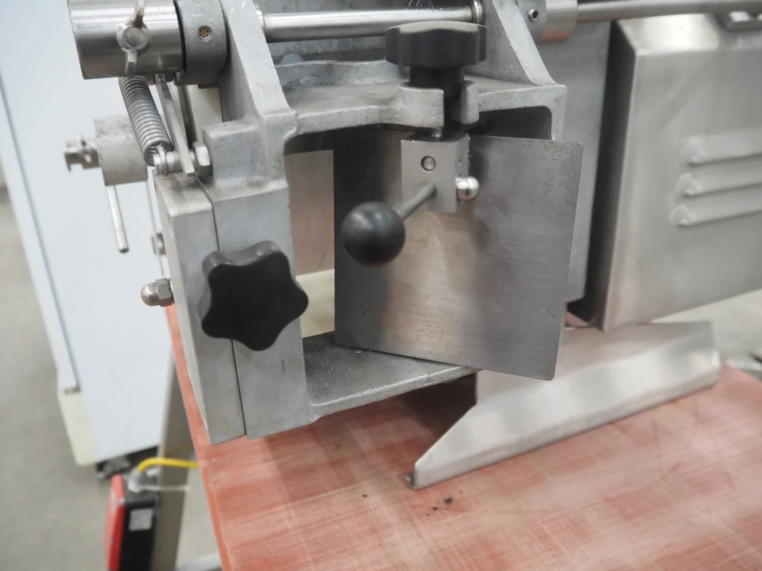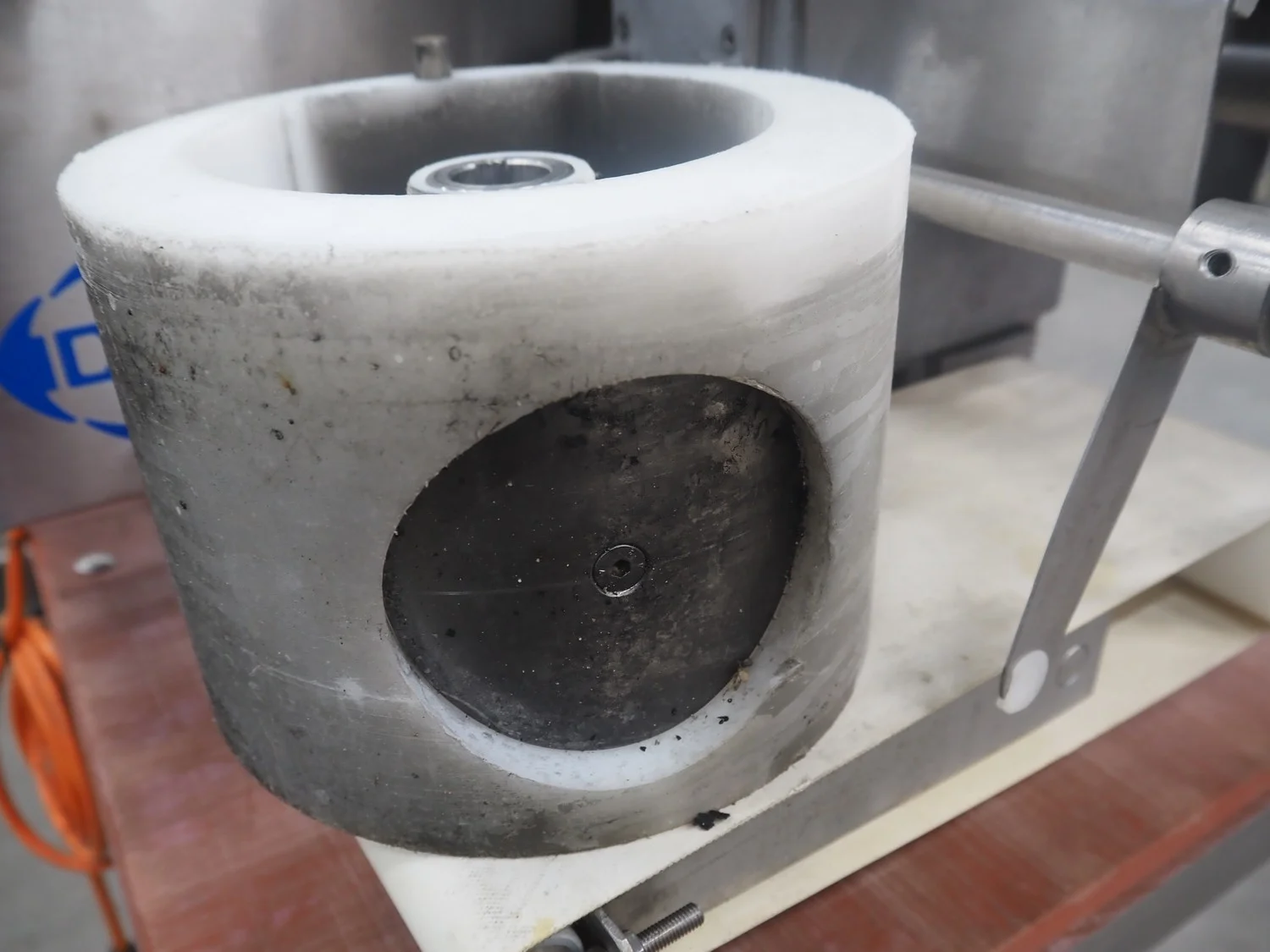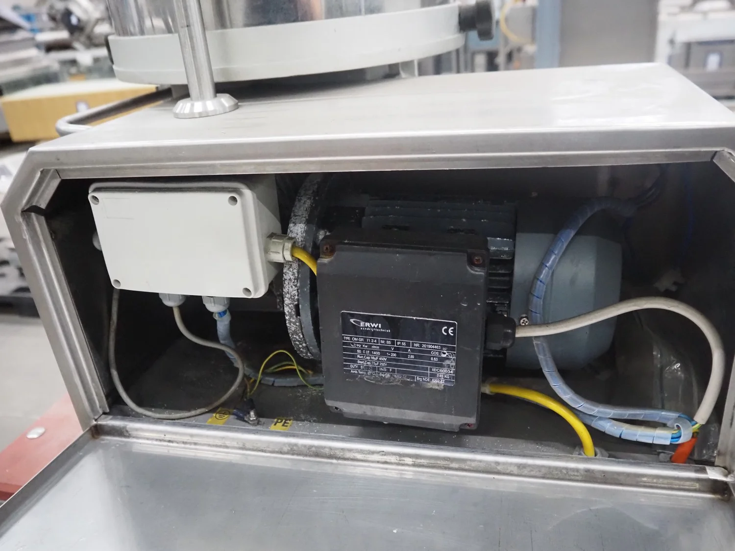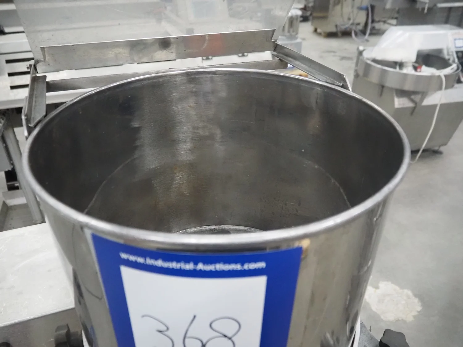 C.R.M. srl mobile hamburger forming machine on s/s trolley with plastic top, machine type: PLANUS H 200/94, serial number: 260, year of construction: 06-1997, 230 V, 0.37 kW, dye: 100 mm, belt width: 150 mm, total dimensions: 970 mm x 740 mm x 1630 mm.