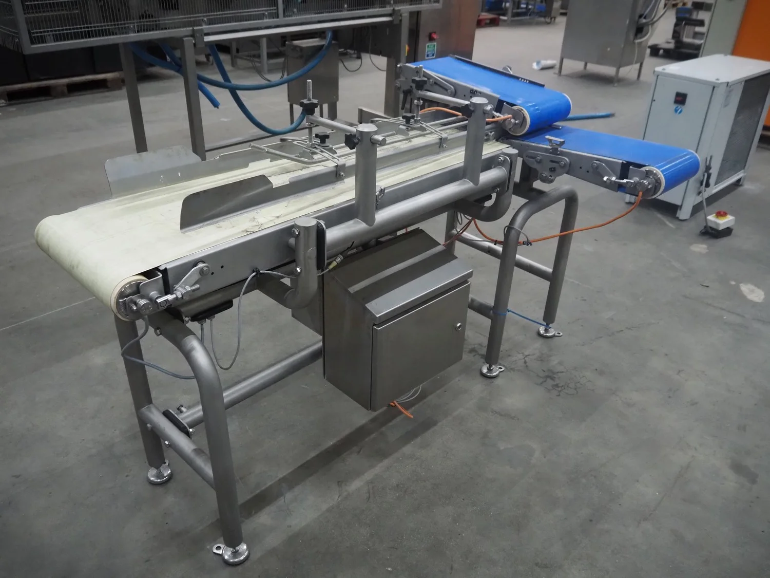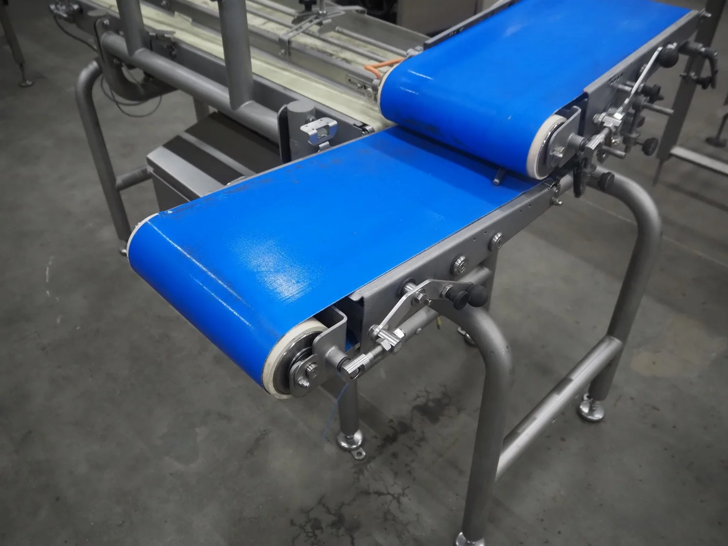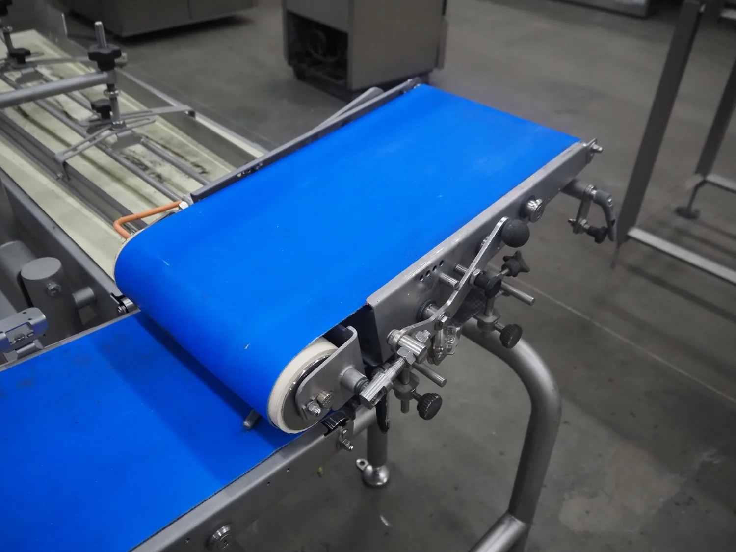 Intray placing belt, type: easy loader, serial number: H-15015, year of construction: 2015, 230 V, 50 Hz, s/s frame, plastic belt, belt width: 370 mm and 375 mm, total dimensions: 1750 mm x 950 mm x 1080 mm.