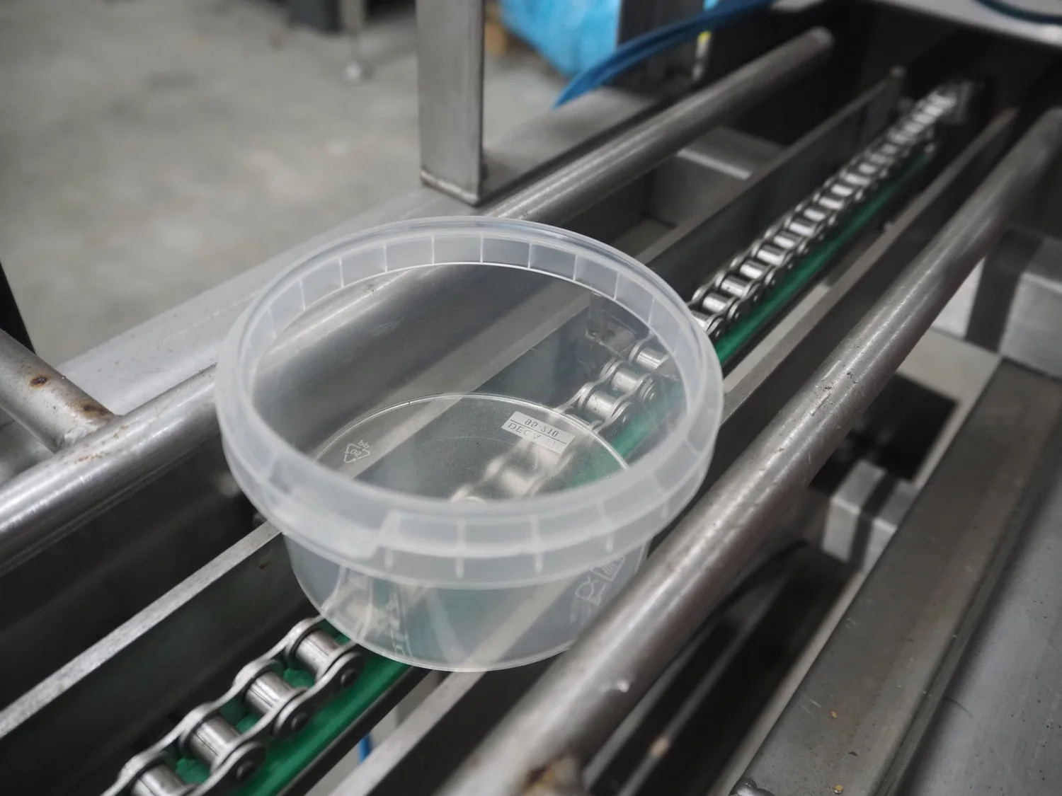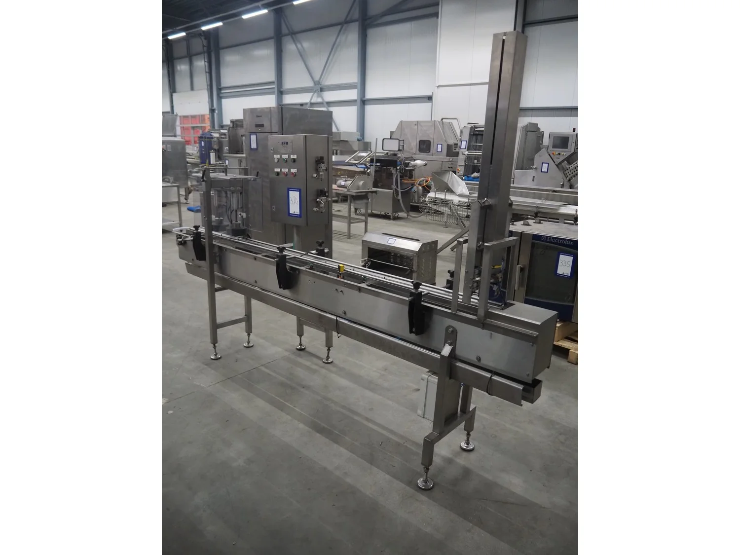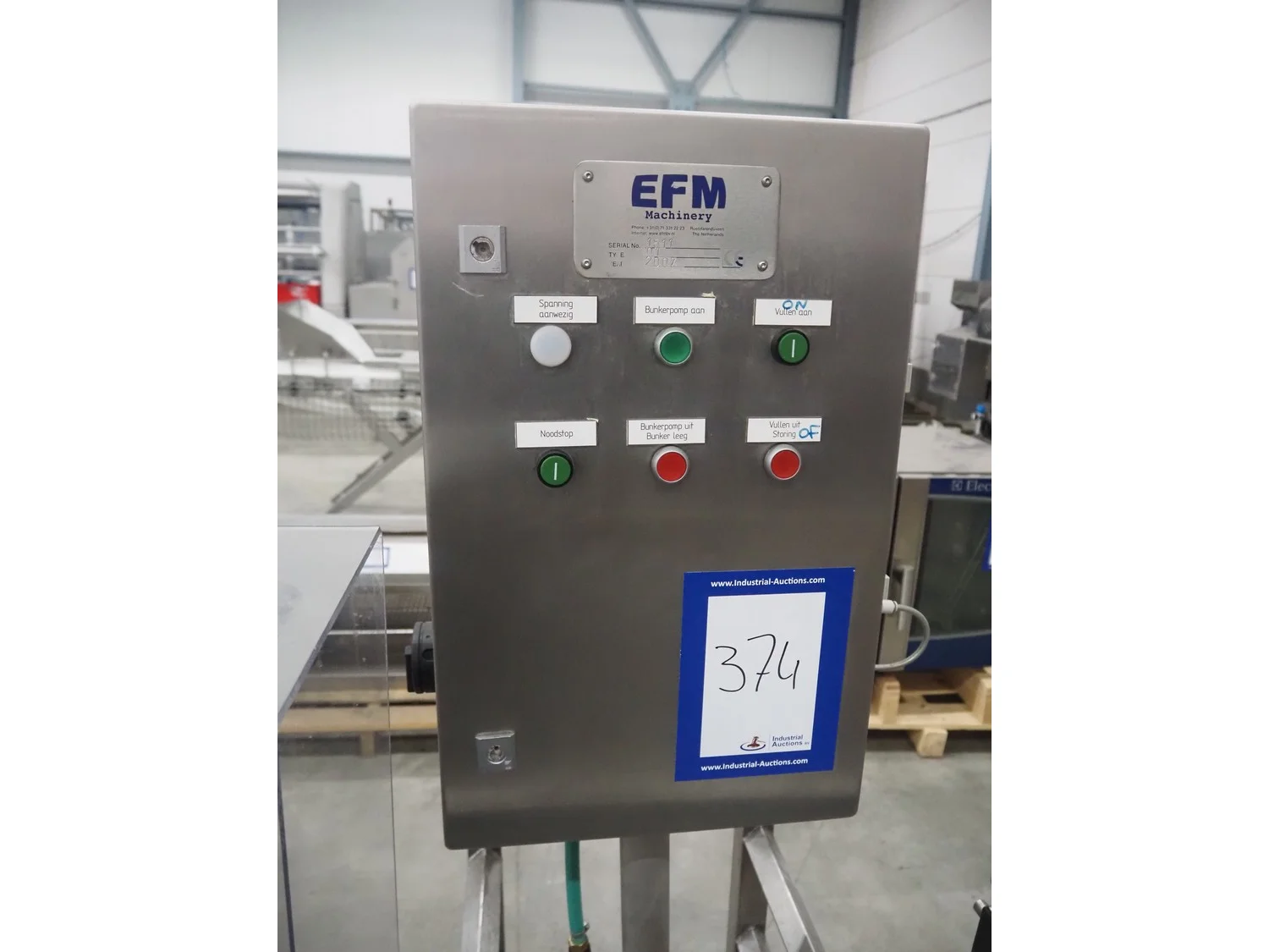 EFM machinery filling and lid closing machine, type: 01, serial number: 1511, year of construction: 2007, chain belt, belt width: 40 mm, lid diameter: 80 mm, total dimensions: 3100 mm x 750 mm x 2050 mm.