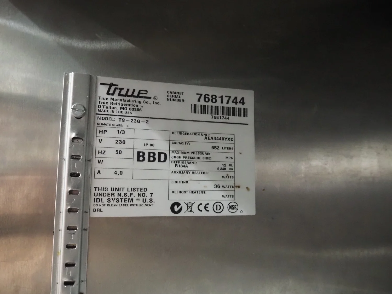 True mobile refrigerator, model: TS-23G-2, serial number: 7681744, 230 V, 50 Hz, 4 A, refrigerant: R134A, 0.34 kg, dimensions: 690 mm x 800 mm x 2070 mm.