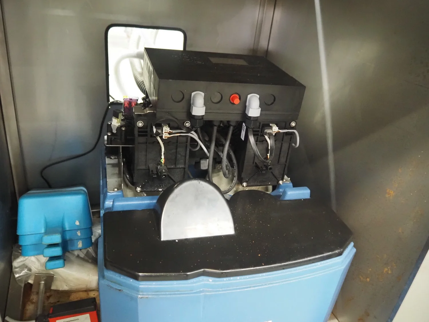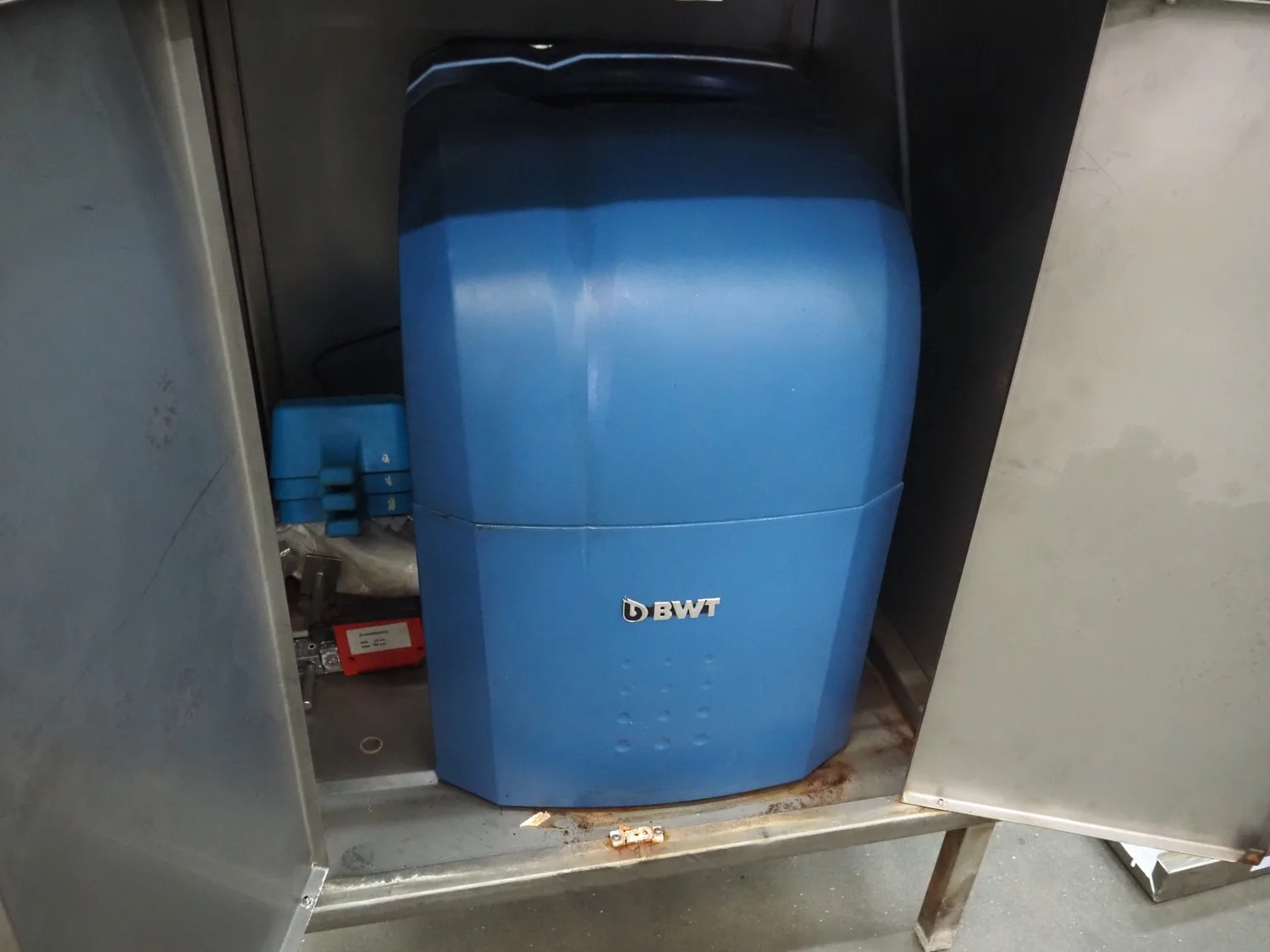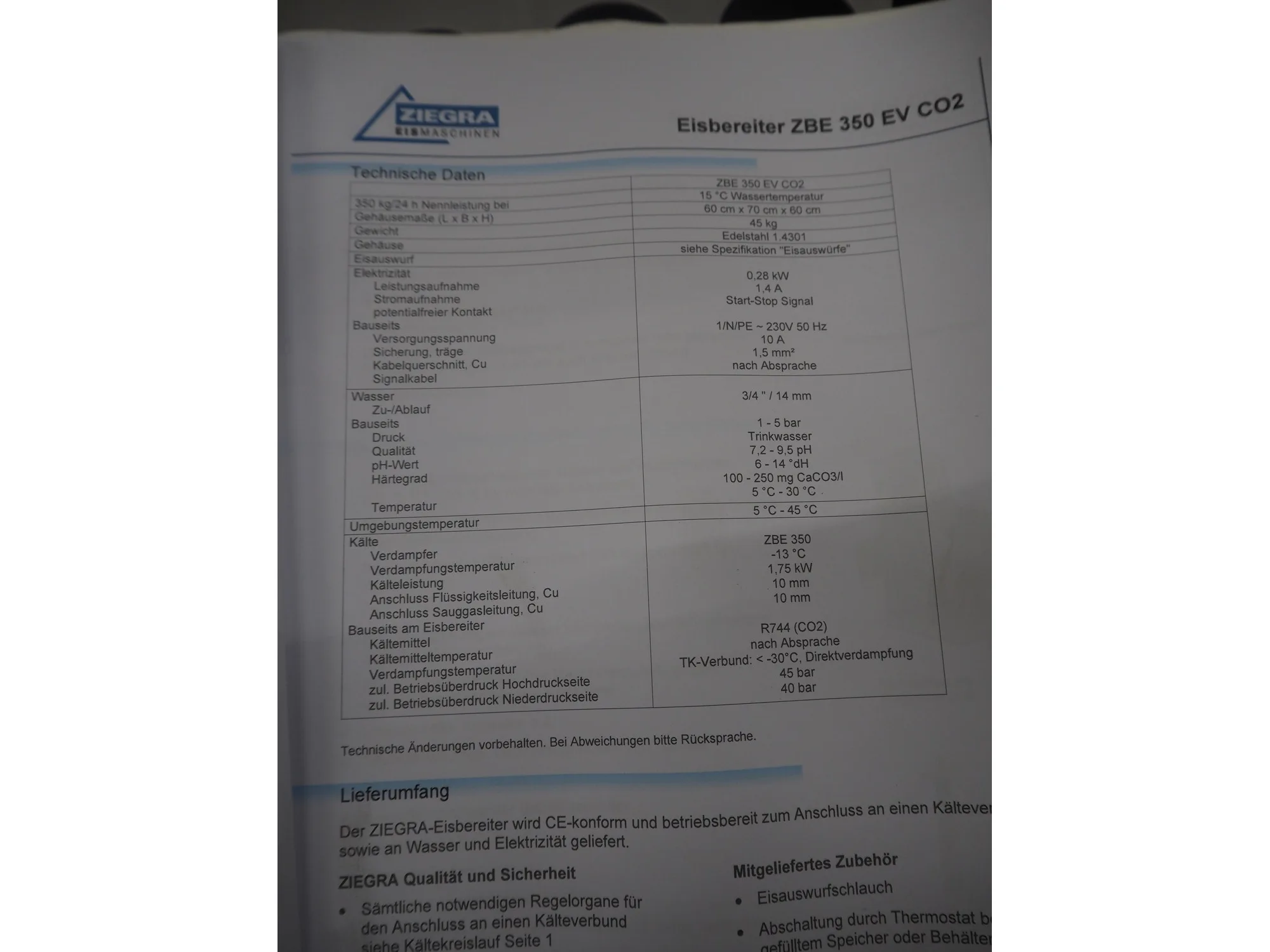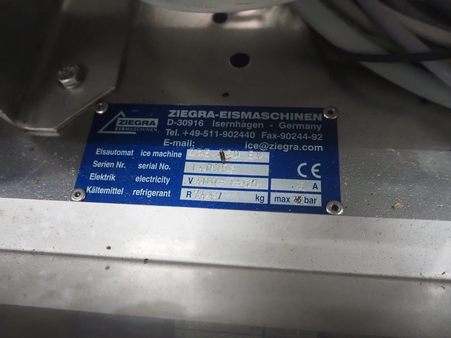 Ziegra-Eismaschinen flake ice machine with BWT water softener, type: ZBE 350 EV, serial number: 140352, 400 V, 3 Ph, 50 Hz, 6 A, refrigerant: R744, dimensions: 700 mm x 750 mm x 1600 mm.