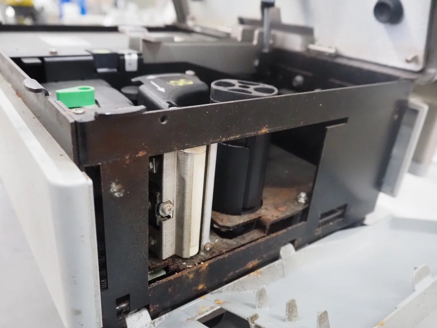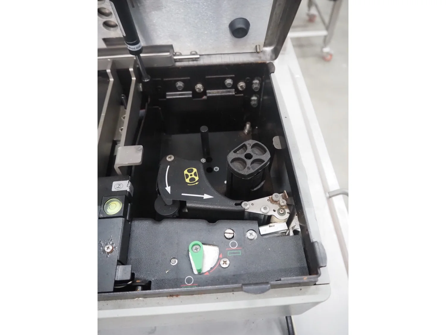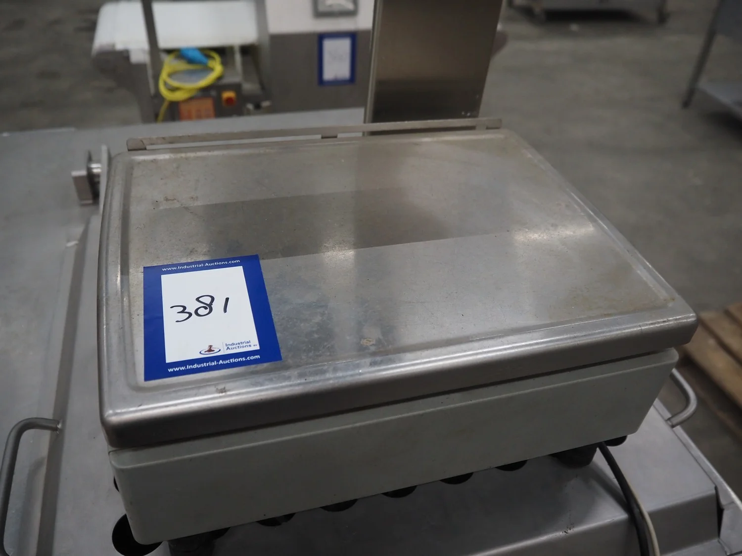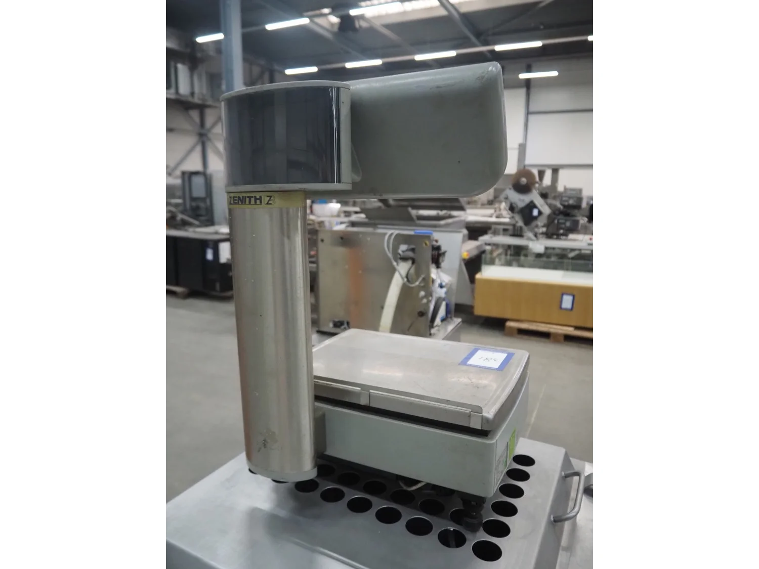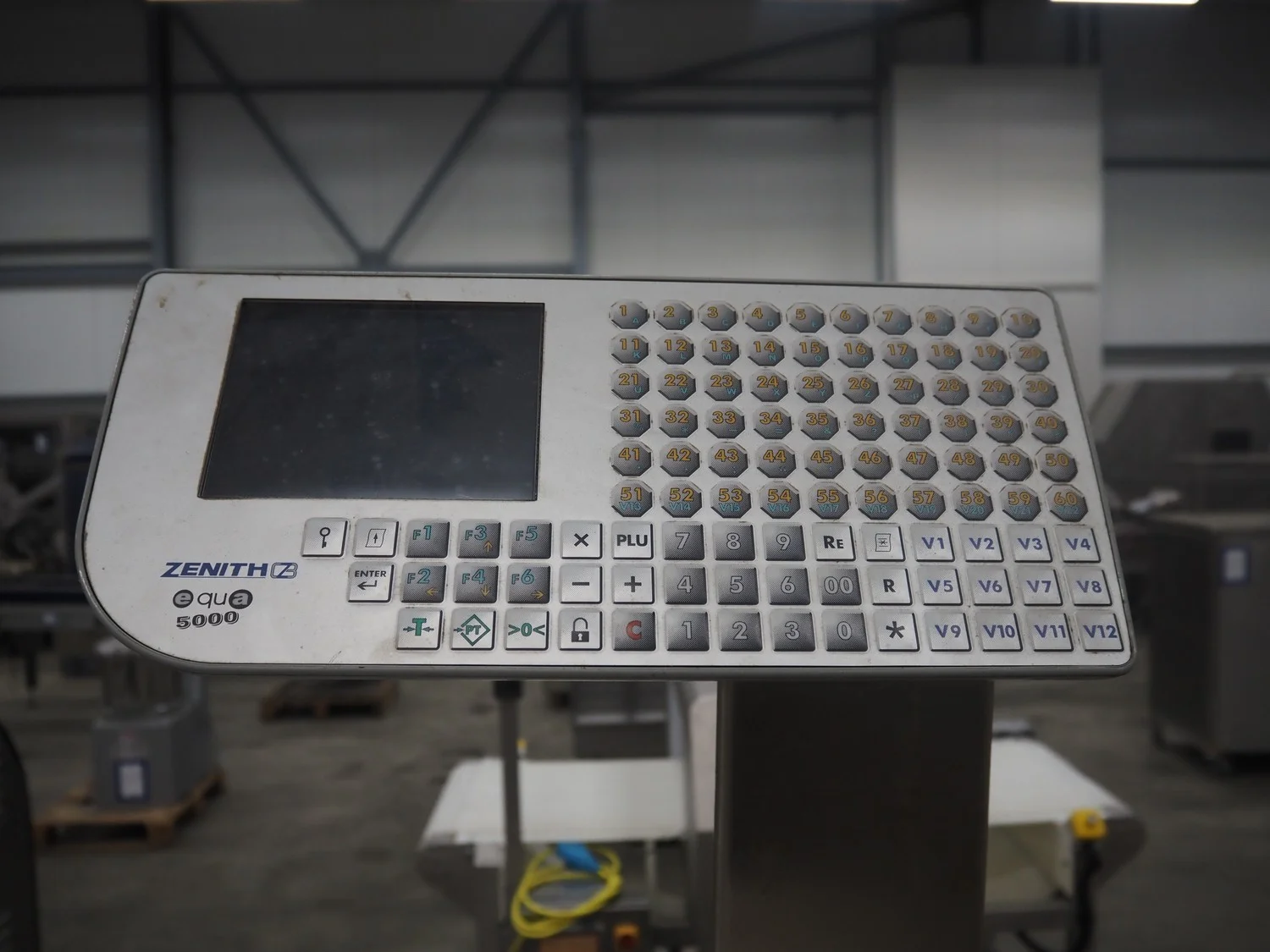CZB weighing scale with label printer, model: EQUA 5000, serial number: 120950249, 110/230 V, 50/60 Hz, 24 W, maximum capacity: 12 kg, minimum capacity: 40 g, e= 2 g, T = -9.998 kg, dimensions: 500 mm x 360 mm x 480 mm.