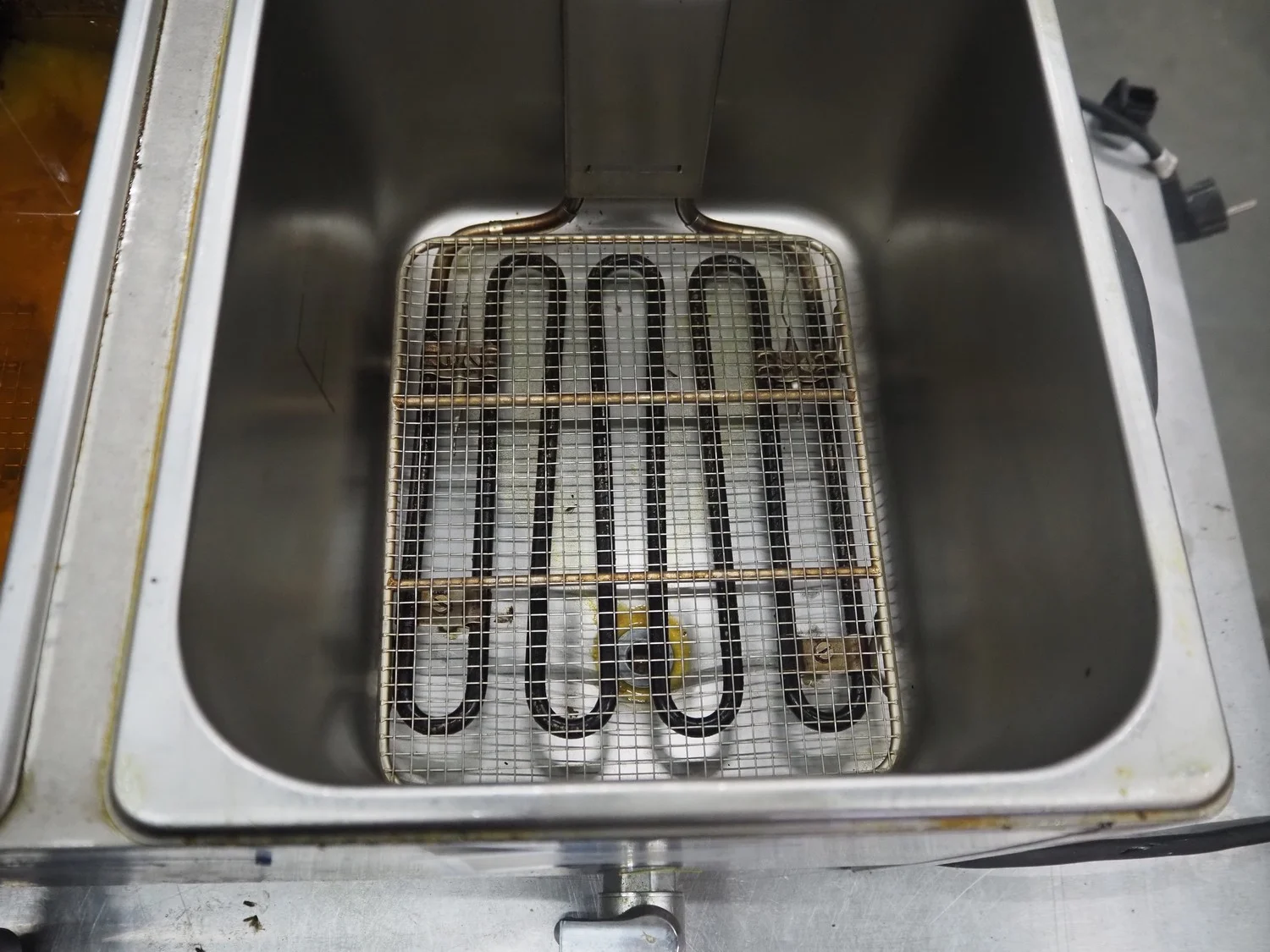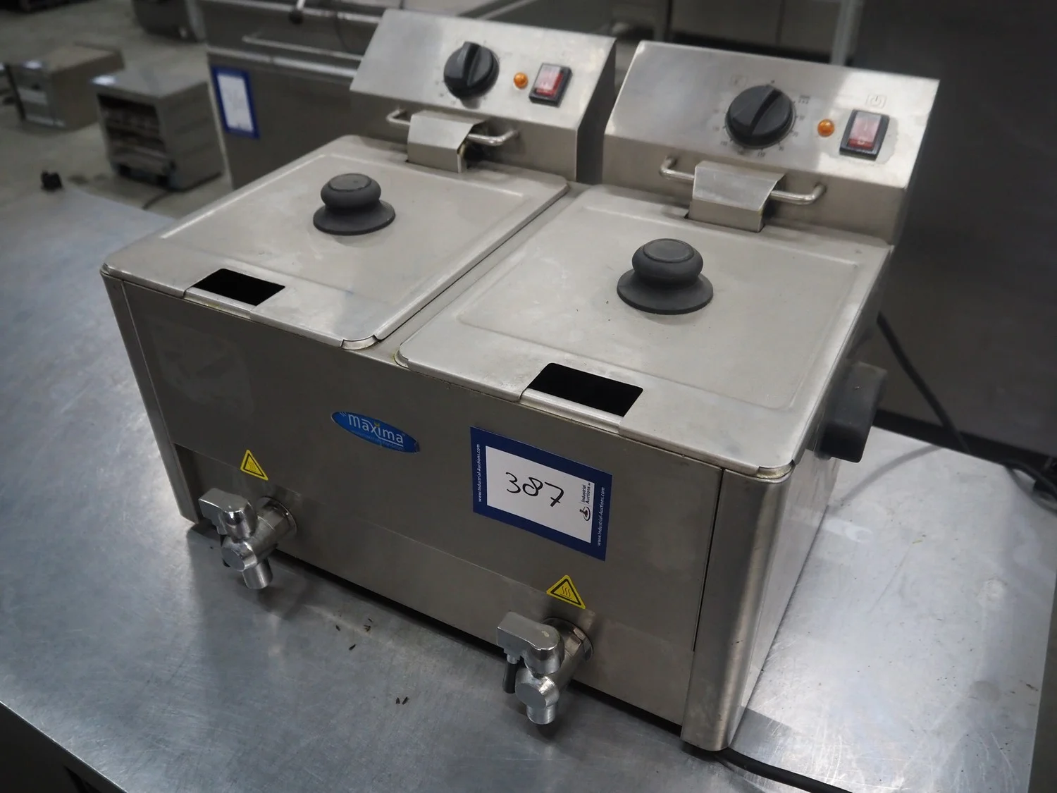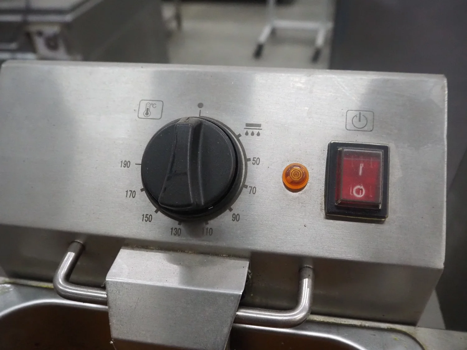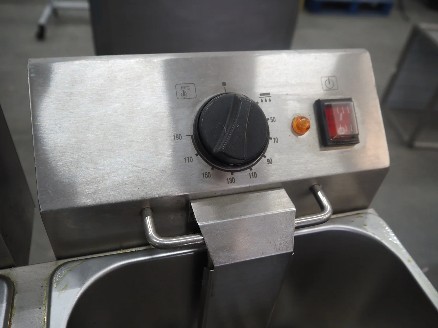 Maxima double fryer, 230 V, 1 Ph, 50 Hz, 6500 Watt, volume: (2x) 8 liter, dimensions: 600 mm x 450 mm x 400 mm.