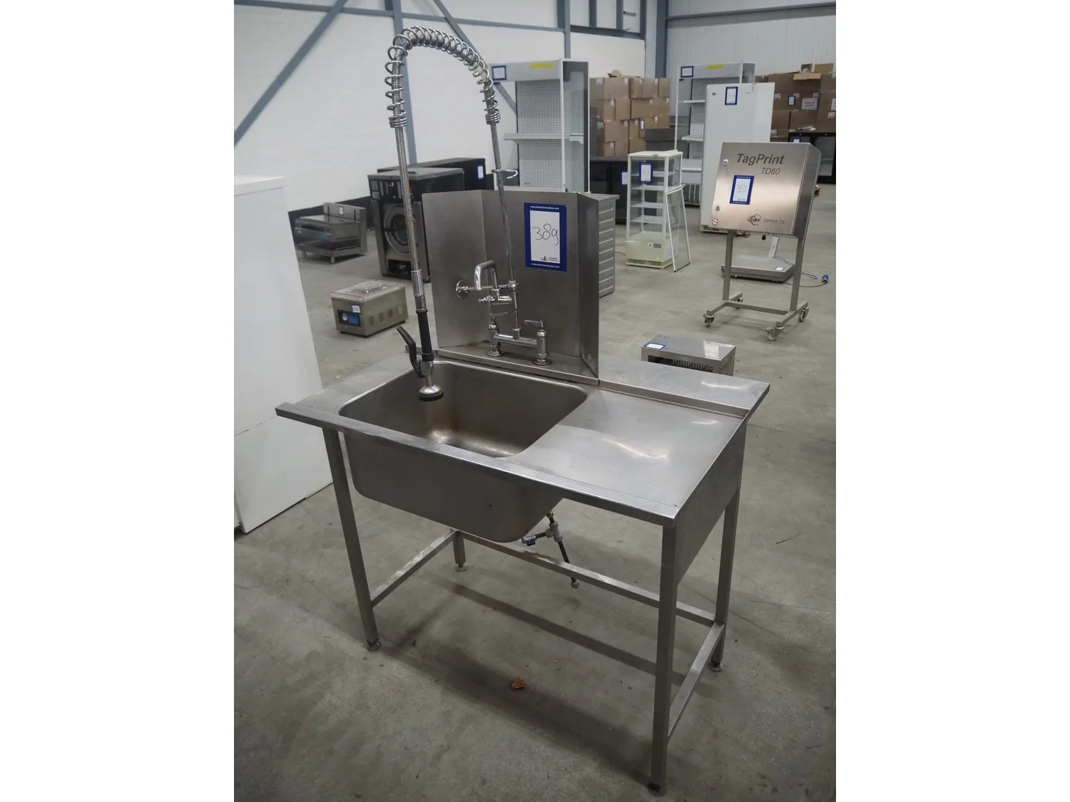 S/s sink with faucet, dimensions: 1200 mm x 750 mm x 1800 mm.