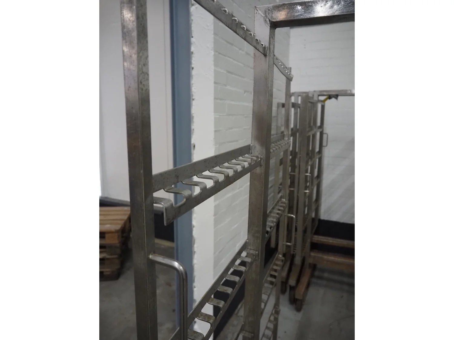 5 s/s smoke trolleys, 6 floors, floor dimensions: 1010 mm x 1000 mm, total dimensions: (5x) 1020 mm x 1000 mm x 1980 mm.