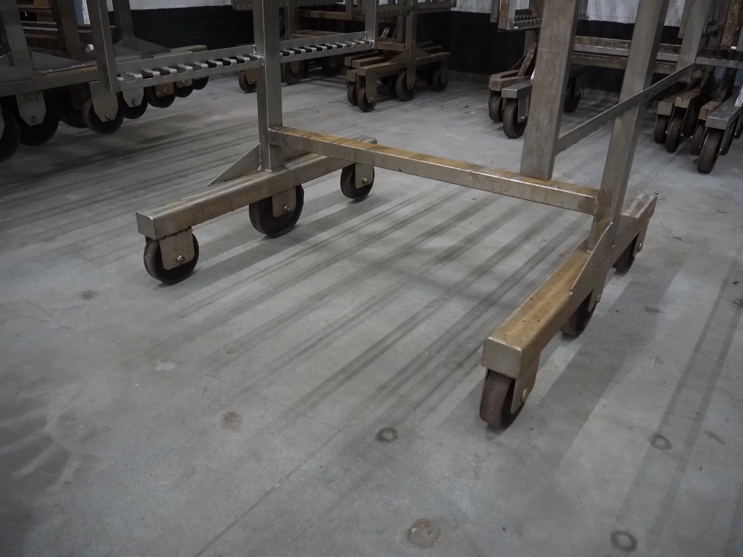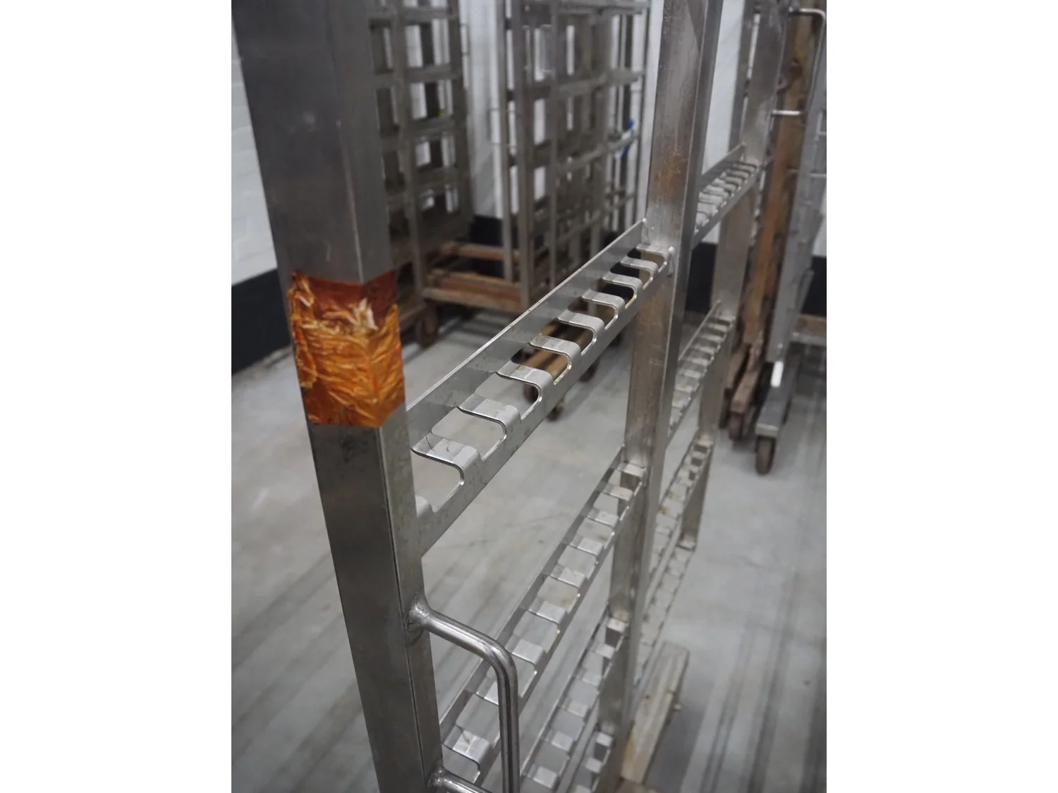 5 s/s smoke trolleys, 6 floors, floor dimensions: 1010 mm x 1000 mm, total dimensions: (5x) 1020 mm x 1000 mm x 1980 mm.