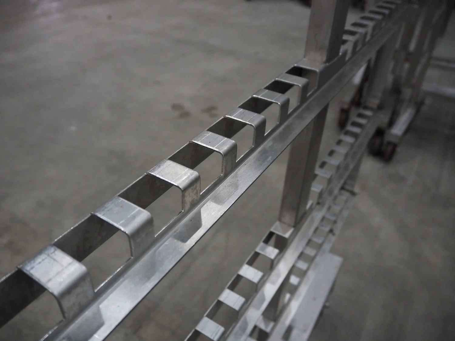 5 s/s smoke trolleys, 6 floors, floor dimensions: 1010 mm x 1000 mm, total dimensions: (5x) 1020 mm x 1000 mm x 1980 mm.