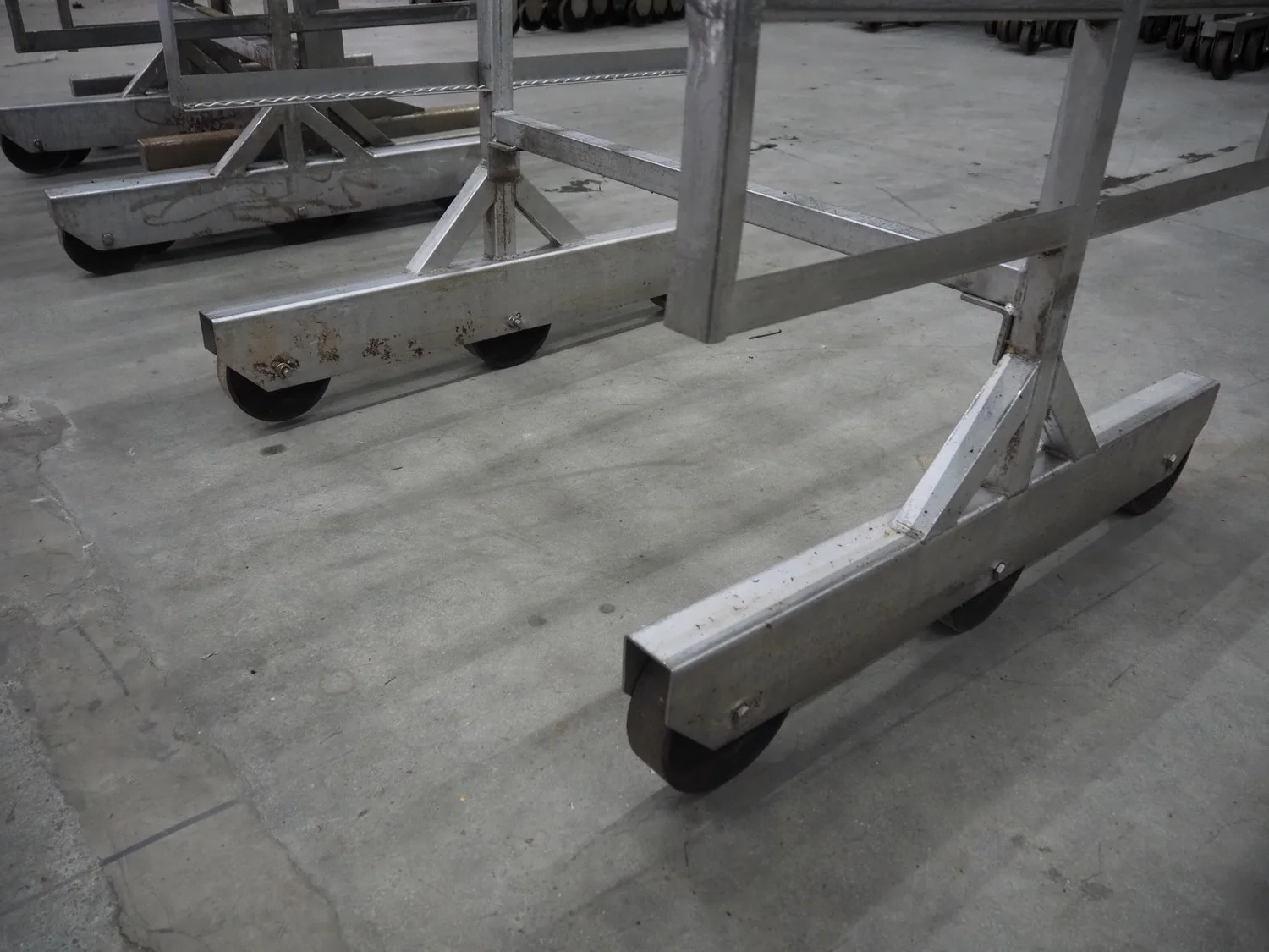 4 s/s smoke trolleys, 8 floors, floor dimensions: 1010 mm x 1000 mm, total dimensions: (4x) 1020 mm x 1000 mm x 1960 mm.