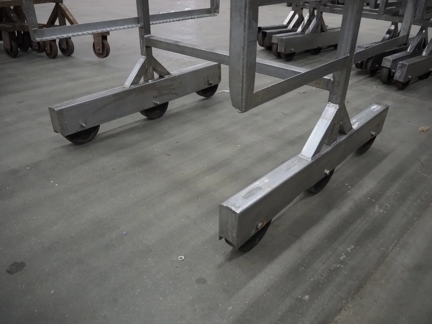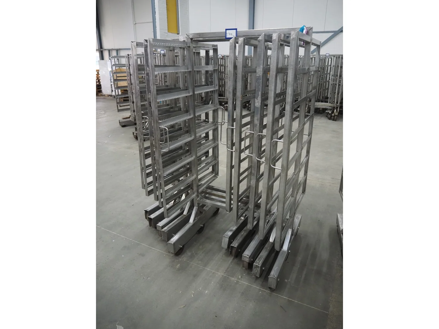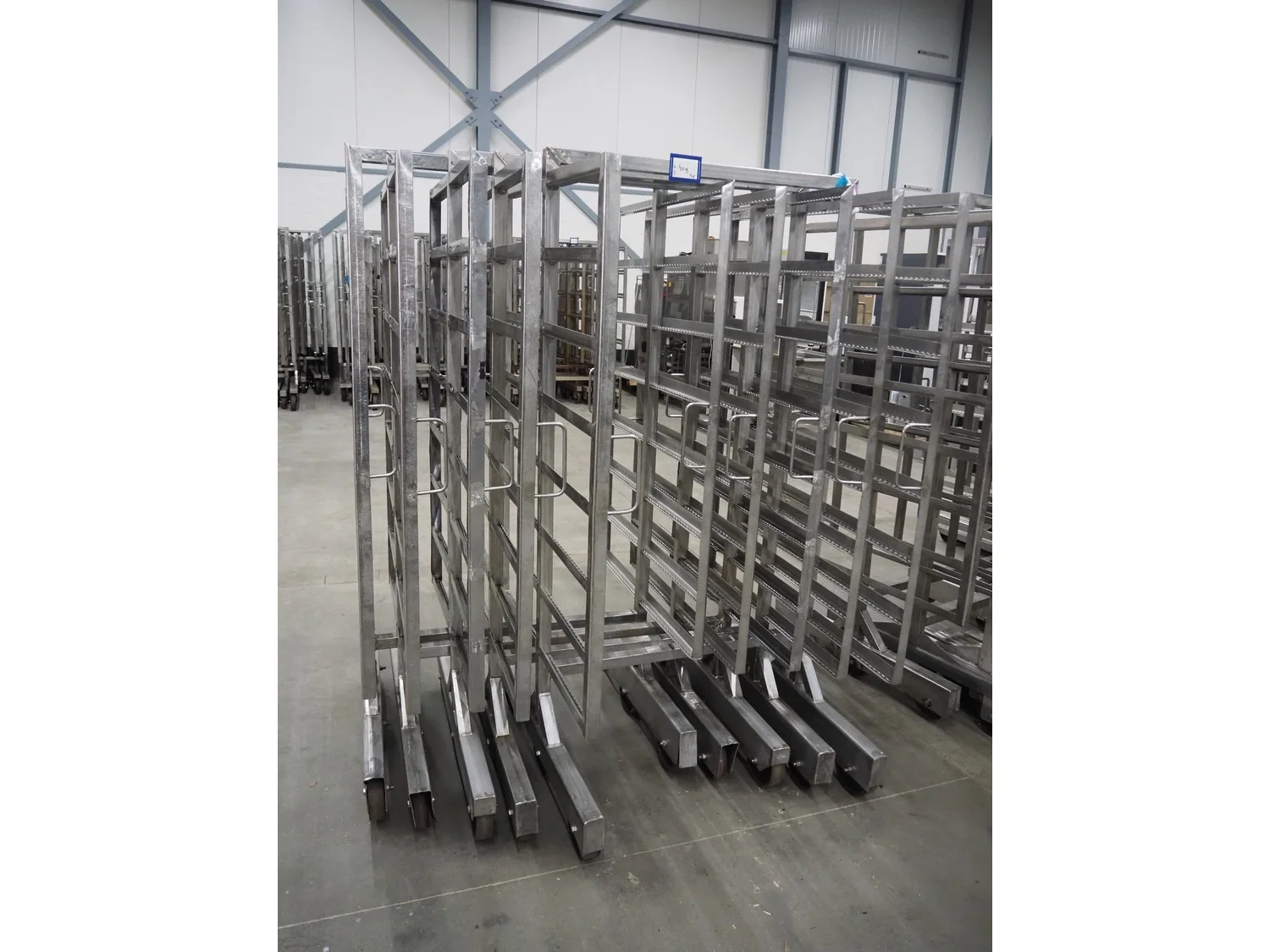 5 s/s smoke trolleys, 8 floors, floor dimensions: 1010 mm x 1000 mm, total dimensions: (5x) 1020 mm x 1000 mm x 1960 mm.