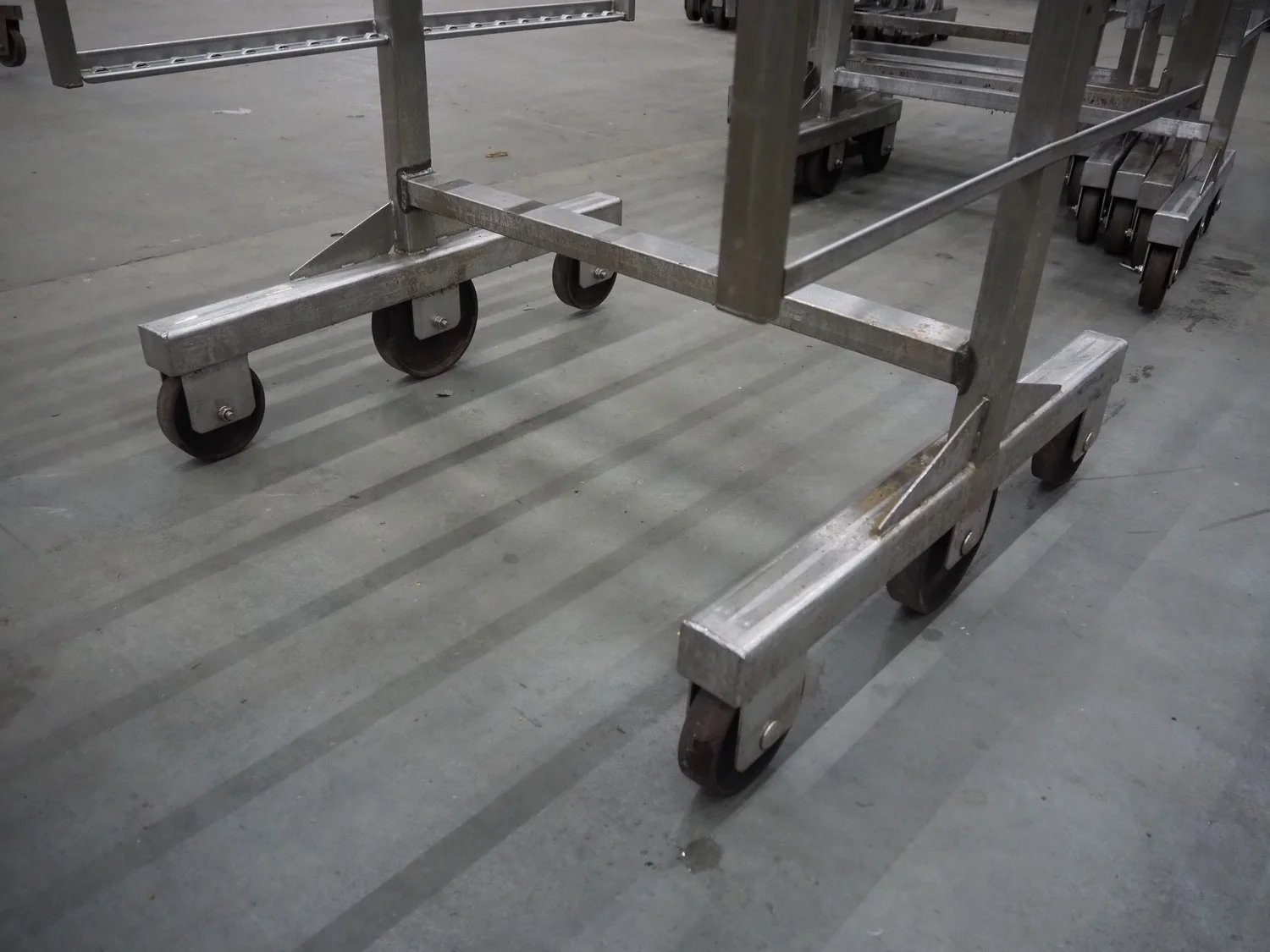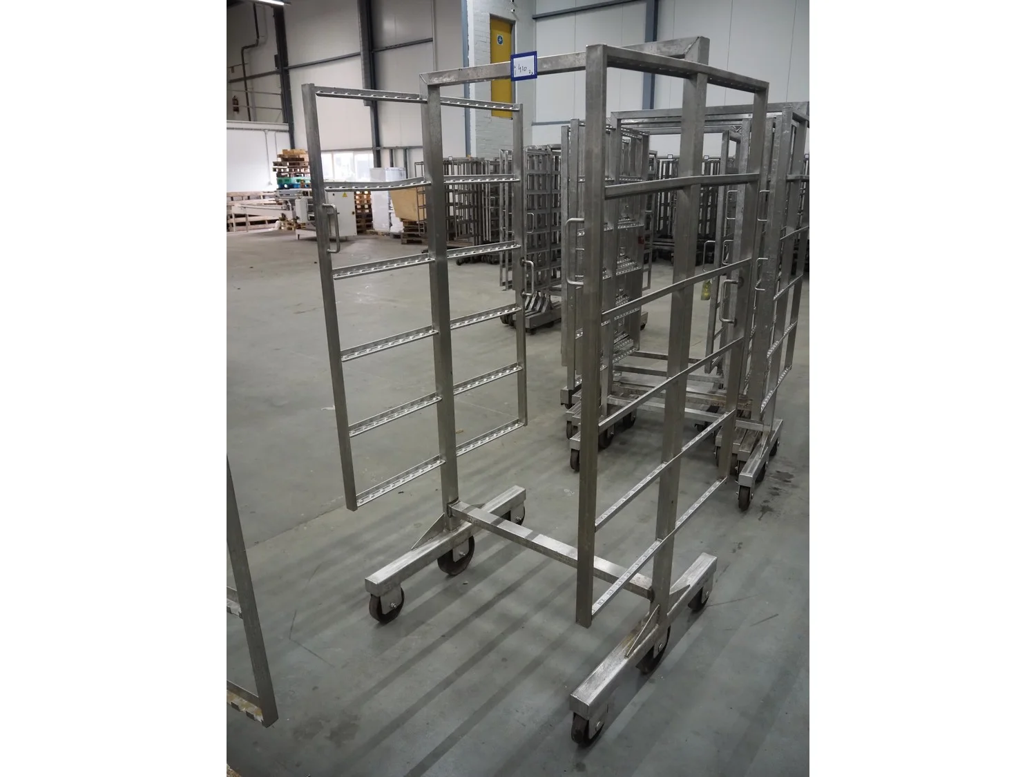 7 s/s smoke trolleys, 6 floors, floor dimensions: 1010 mm x 1000 mm, total dimensions: (7x) 1020 mm x 1000 mm x 1980 mm.
