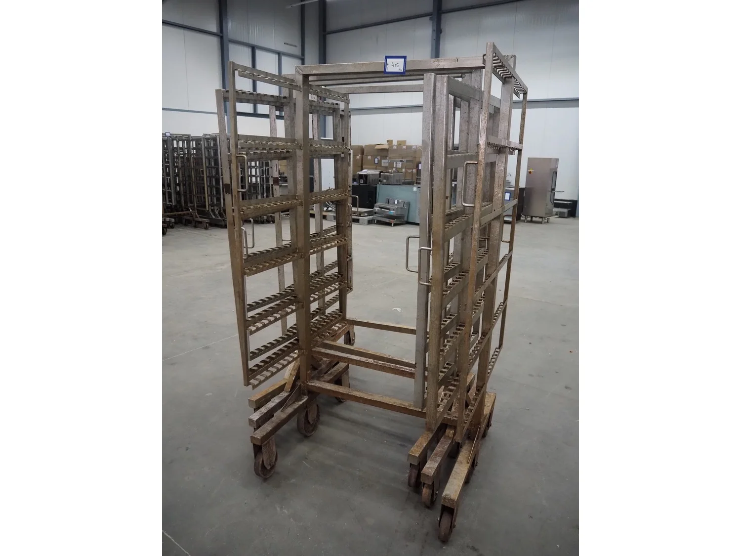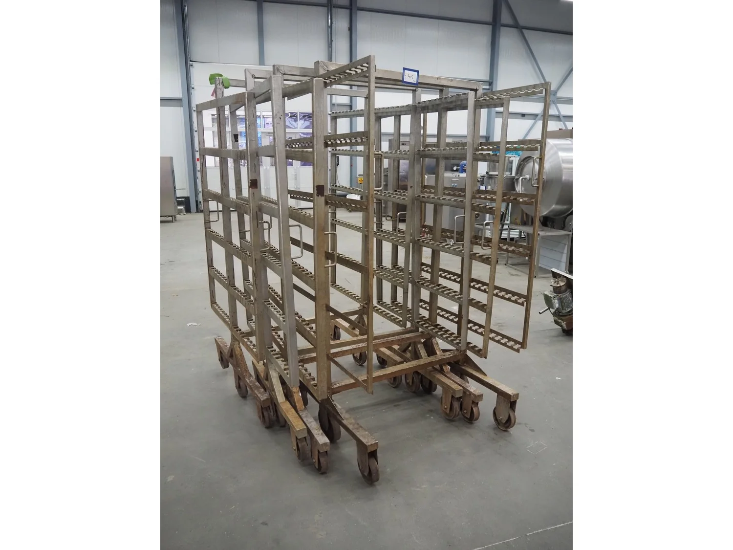 4 s/s smoke trolleys, 6 floors, floor dimensions: 1010 mm x 1000 mm, total dimensions: (4x) 1020 mm x 1000 mm x 1980 mm.