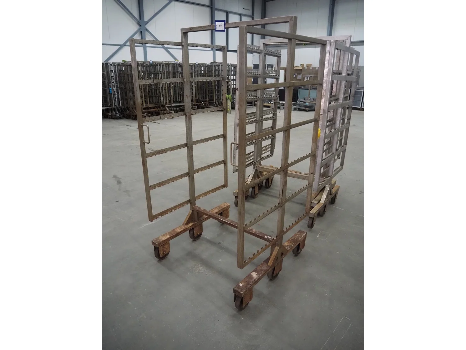 4 s/s smoke trolleys, 6 floors, floor dimensions: 1010 mm x 1000 mm, total dimensions: (4x) 1020 mm x 1000 mm x 1980 mm.