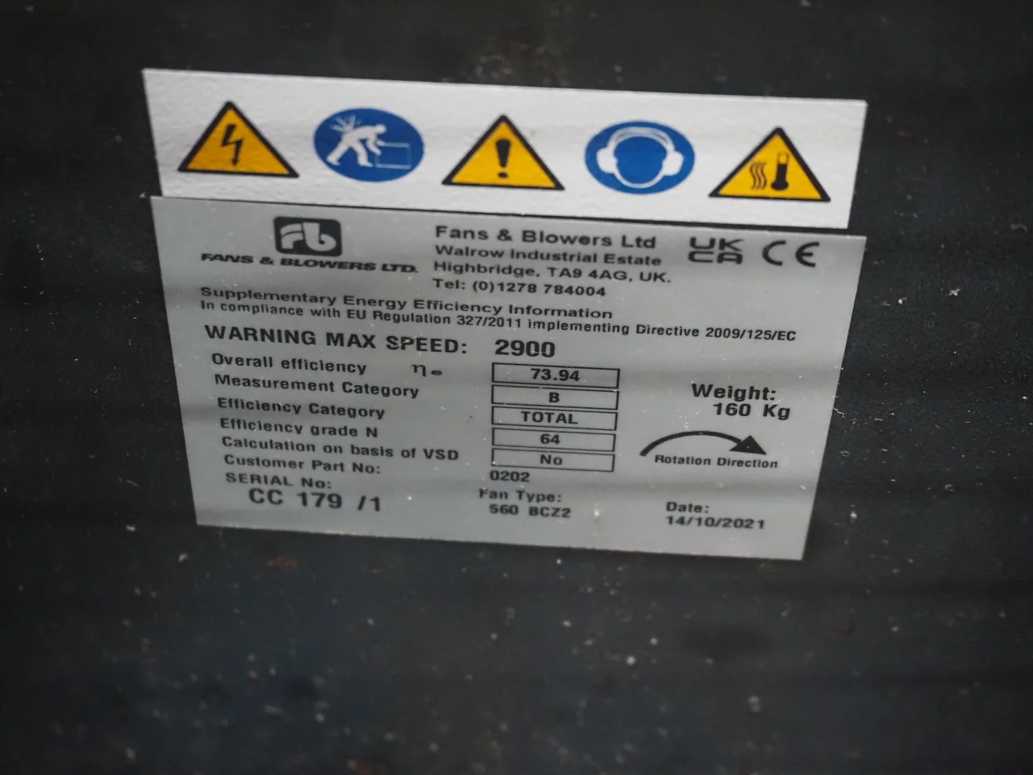Fans & Blowers Ltd blower, weight: 160 kg, dimensions: 1250 mm x 950 mm x 940 mm.
