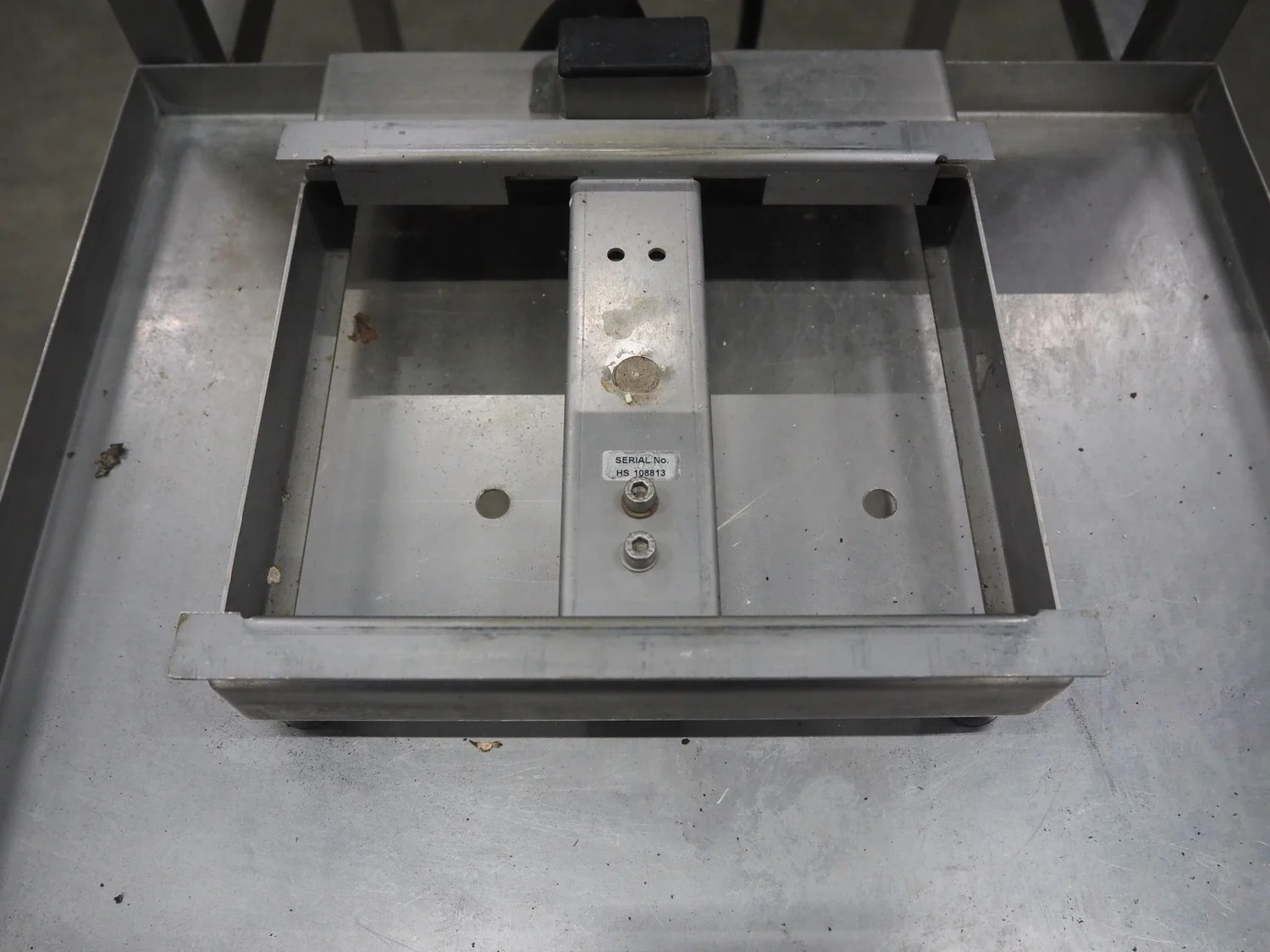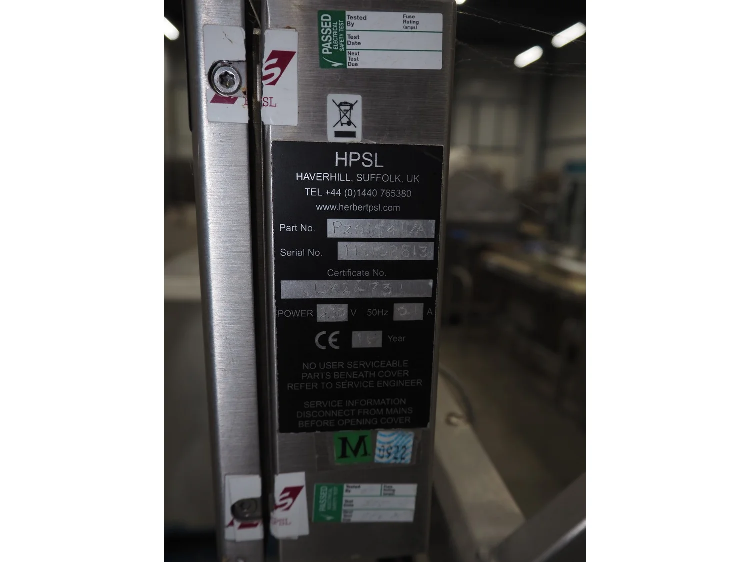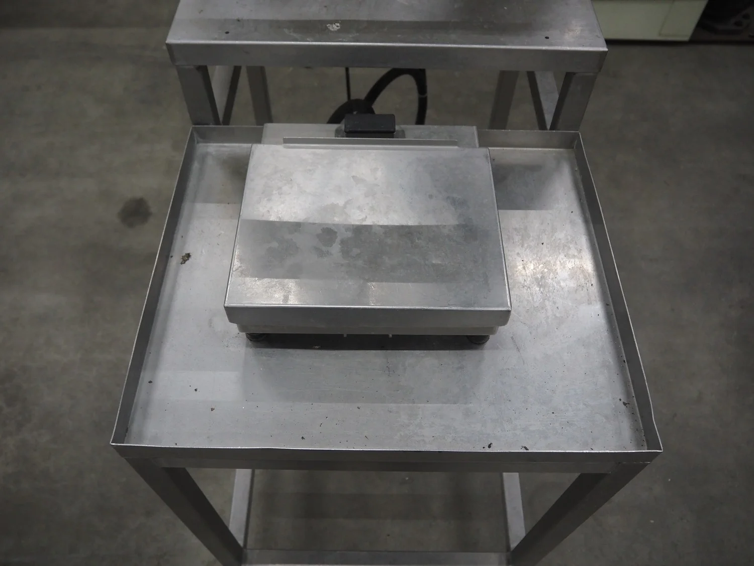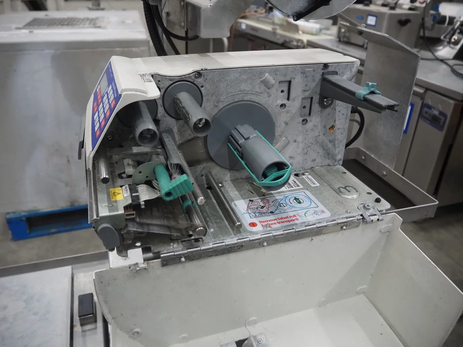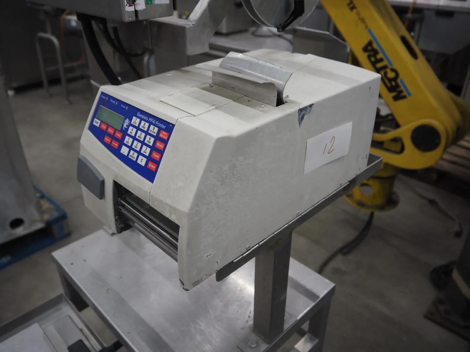 Herbert weighing machine with labeller, type: IH500, maximum: 3 kg, minimum weight: 0.02 kg, e= 0.001 kg, T = -1.000 kg, dimensions: 900 mm x 550 mm x 1600 mm.