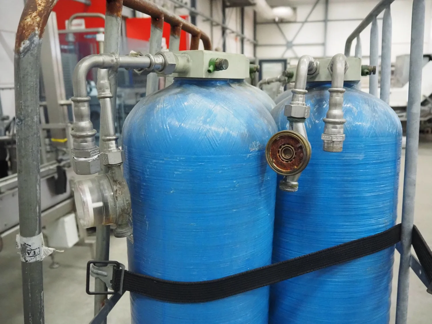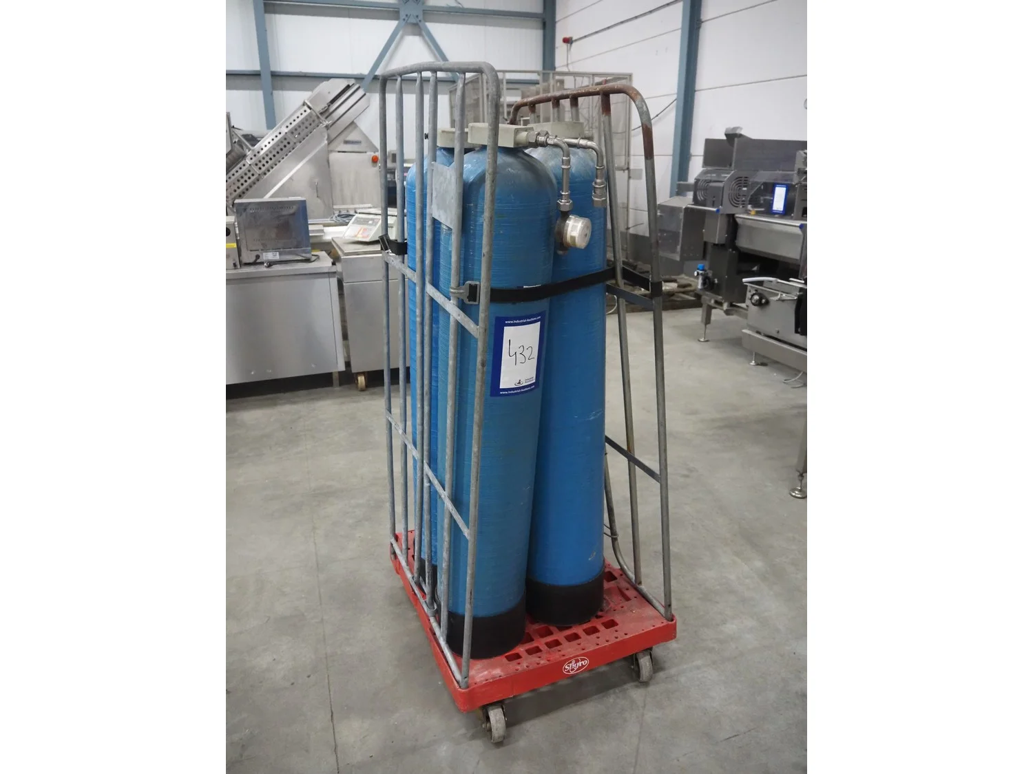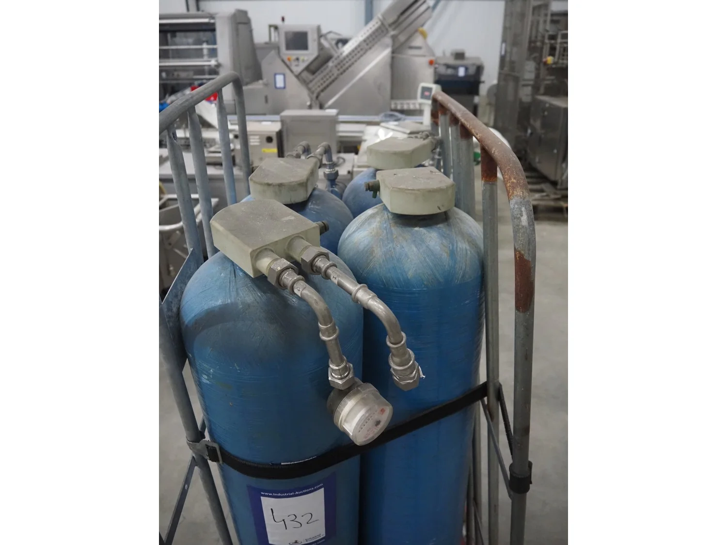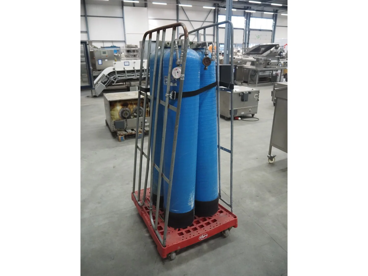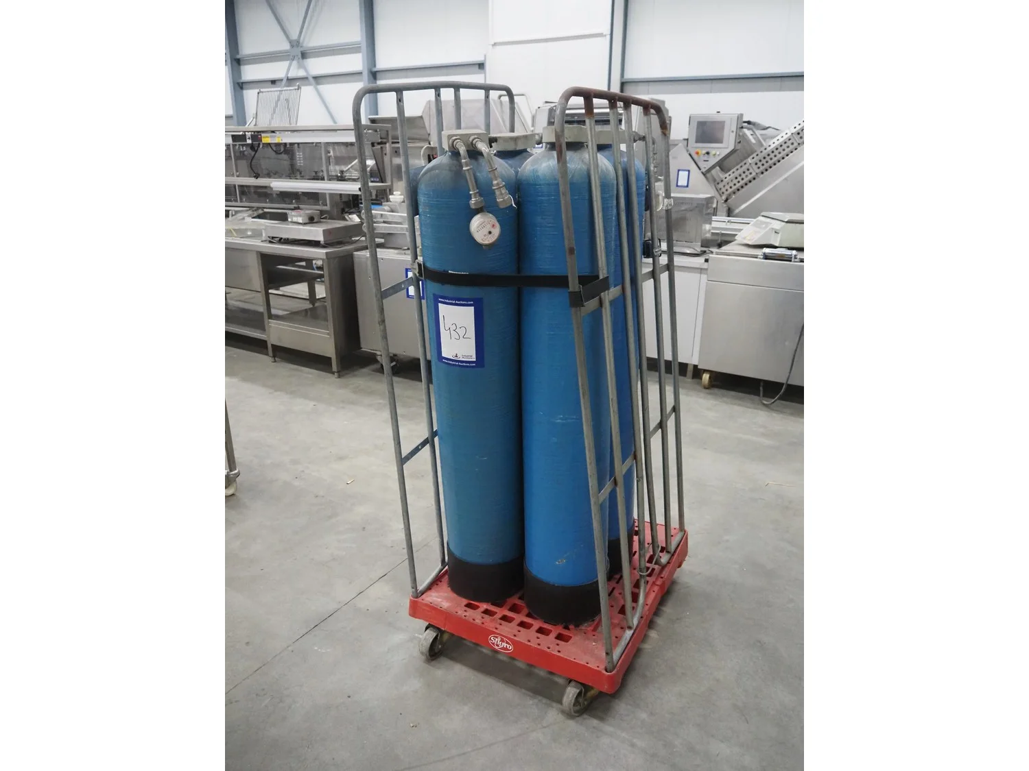Mobile container with 4 Holland Techno Group gas cylinders, dimensions each cylinder: Ø 260 mm x 1380 mm, total dimensions container: 820 mm x 700 mm x 1700 mm.