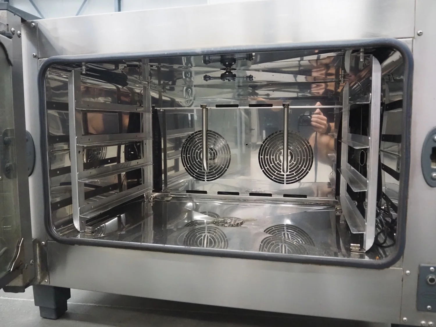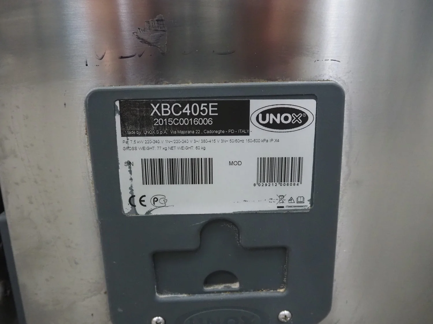 Unox combisteamer, type: XBC405E, serial number: 2015C0016006, 4 floors, floor dimensions: 360 mm x 600 mm, total dimensions: 860 mm x 560 mm x 700 mm.