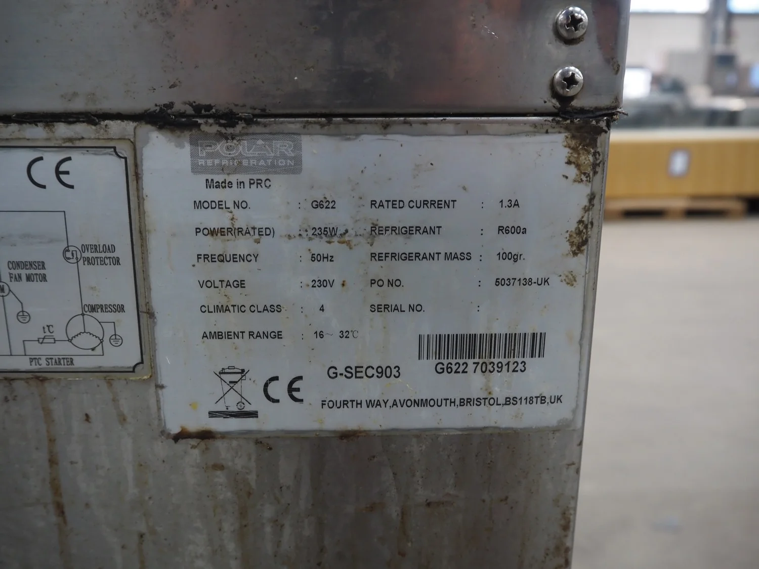 Polar 3-doors refrigerator, model: G622, 230 V, 50 Hz, 1.3 A, refrigerant: R600a, 100 gram, dimensions: 1370 mm x 700 mm x 900 mm.