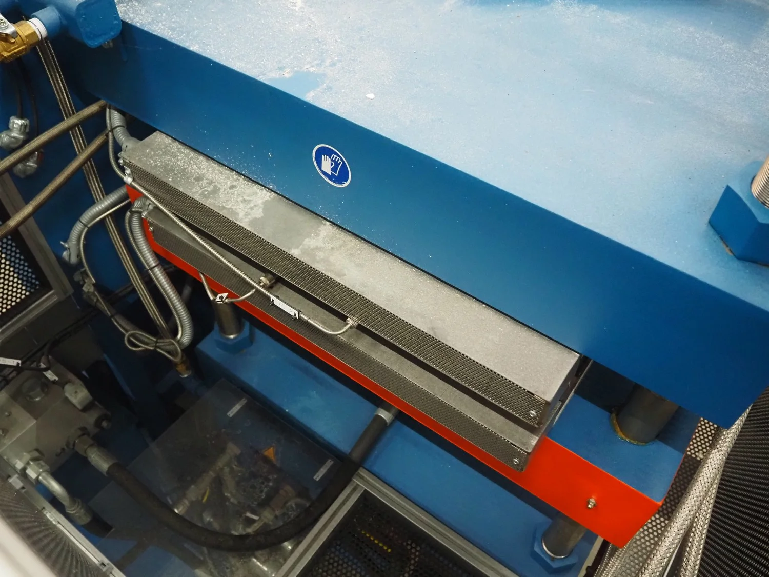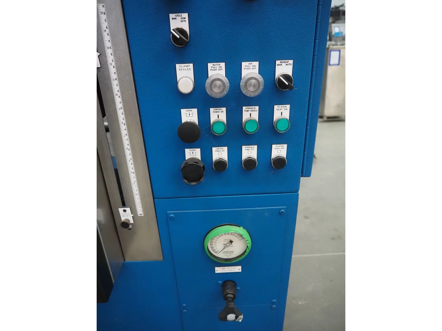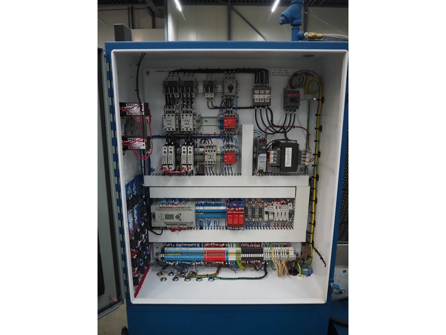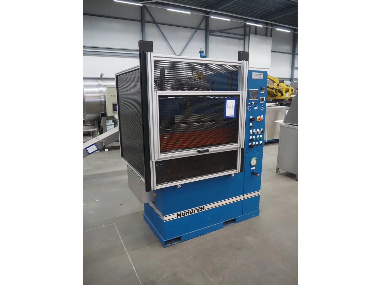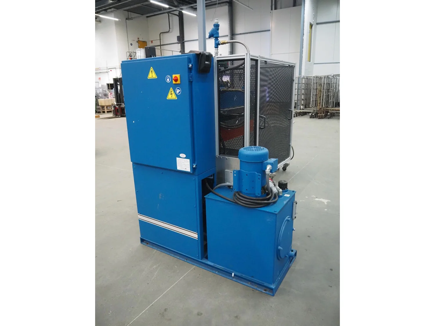Carver compression molding press, model: CMG75H-24-CX-CE, serial number: 210499, year of construction: 02-2022, 415 V, 3 Ph, 50 Hz, 15000 Watt per plate, weight: 3036 kg, dimensions: 1550 mm x 1550 mm x 2000 mm.