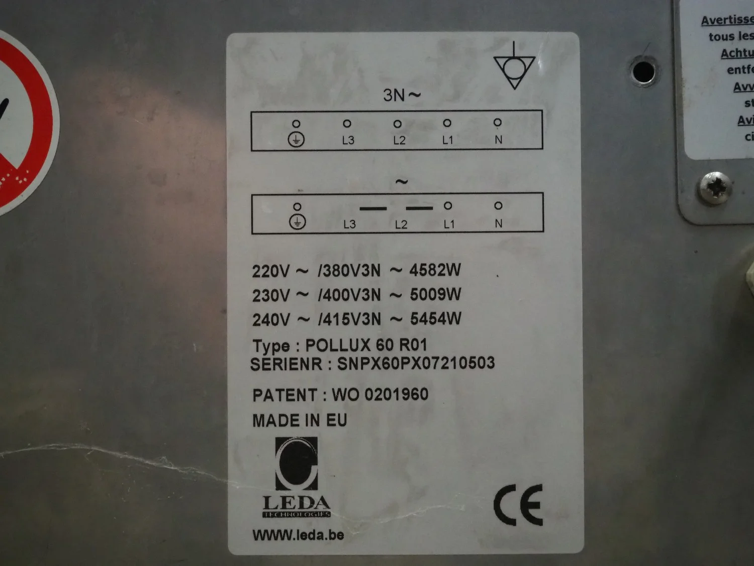 LEDA eggs oven, type: POLLUX 60 R01, serial number: SNPX60PXPX07210503, inside dimensions: 500 mm x 320 mm x 95 mm, total dimensions: 620 mm x 600 mm x 250.