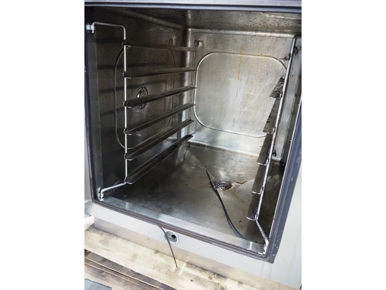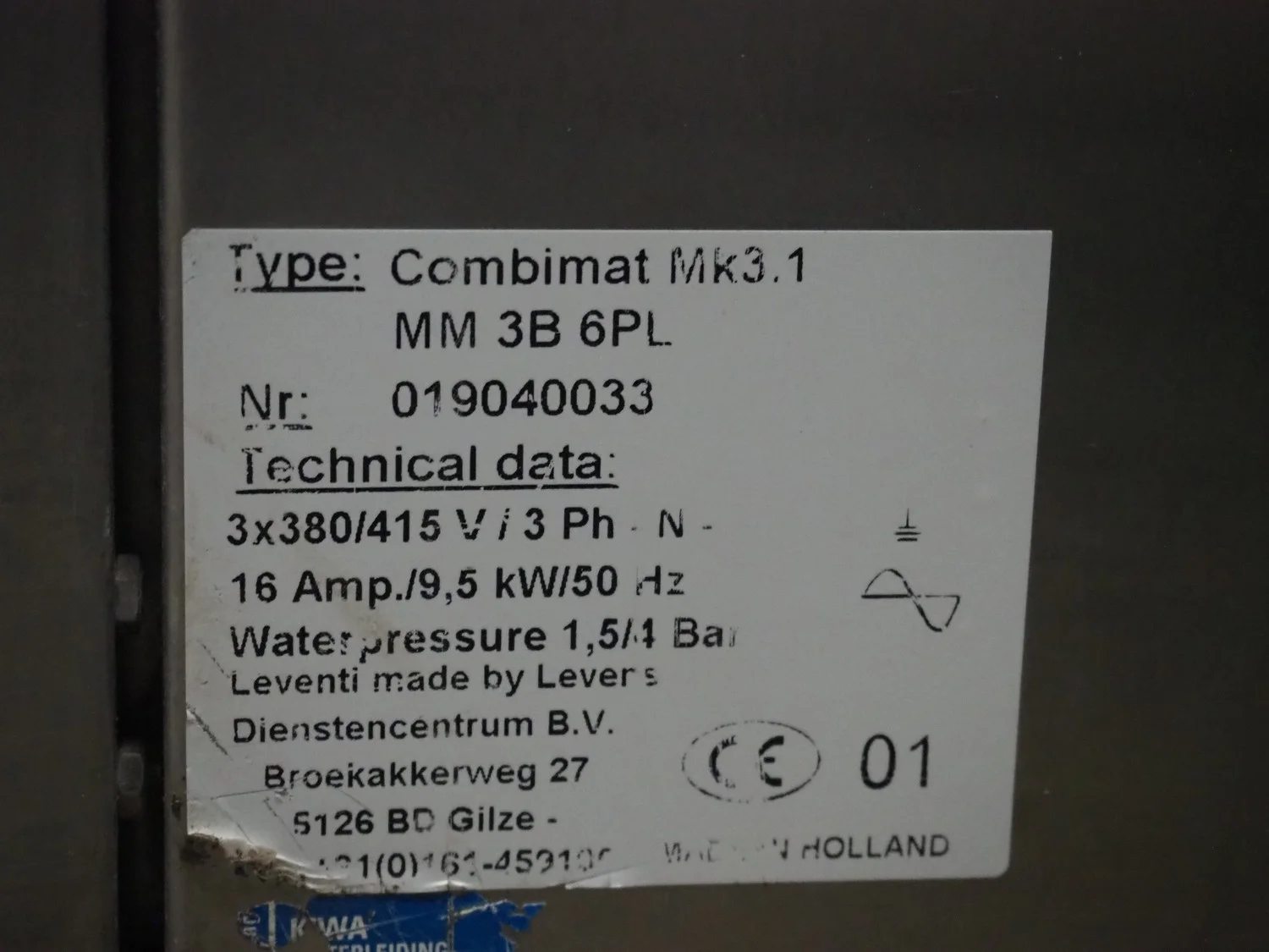 Leventi combi steamer, model: Combimat Mk3.1 MM 3B 6PL, number: 019040033, 3 x 380/415 V, 3 Ph, 50 Hz, 16 A, 9.5 kW, 6 floors, floor dimensions: (6x) 550 mm x 400 mm, total dimensions: 965 mm x 850 mm x 800 mm.