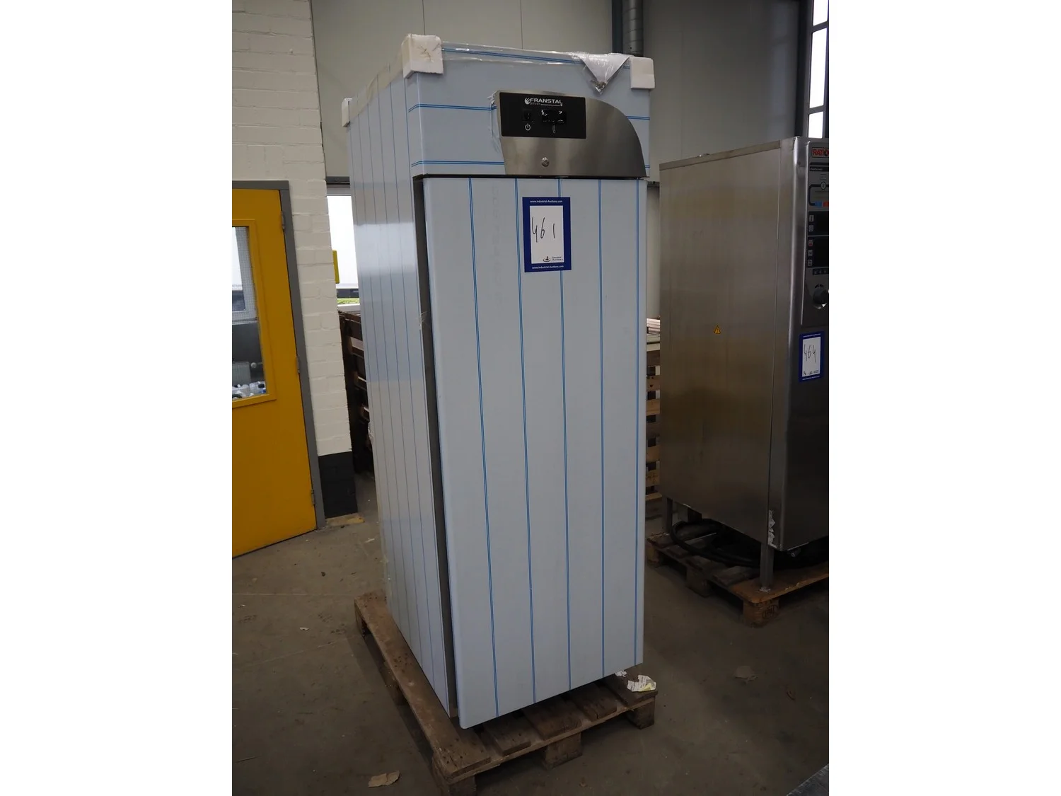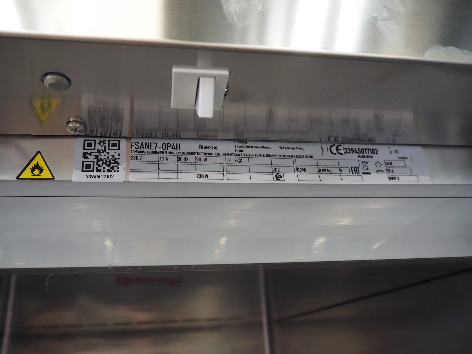 Franstal refrigerator, type: FSANE7-0P4H, 230 V, 50 Hz, 1.2 A, 210 Watt, refrigerant: R290, 0.08 kg, 20 floors, floor dimensions: (20x) 635 mm x 525 mm, total dimensions: 800 mm 690 mm x 2000 mm.