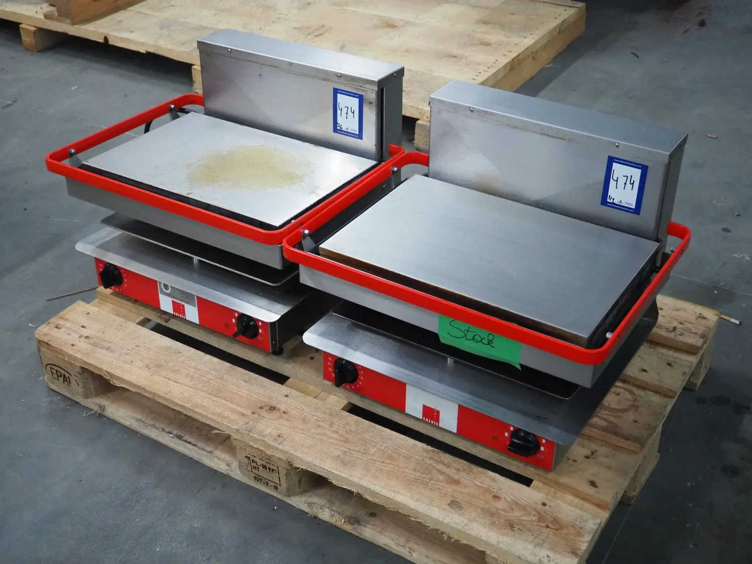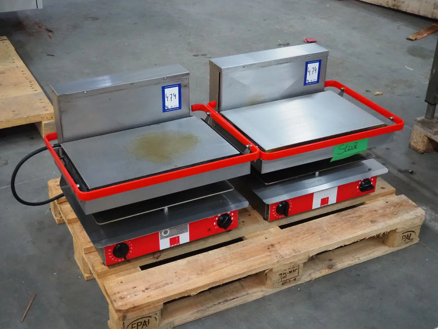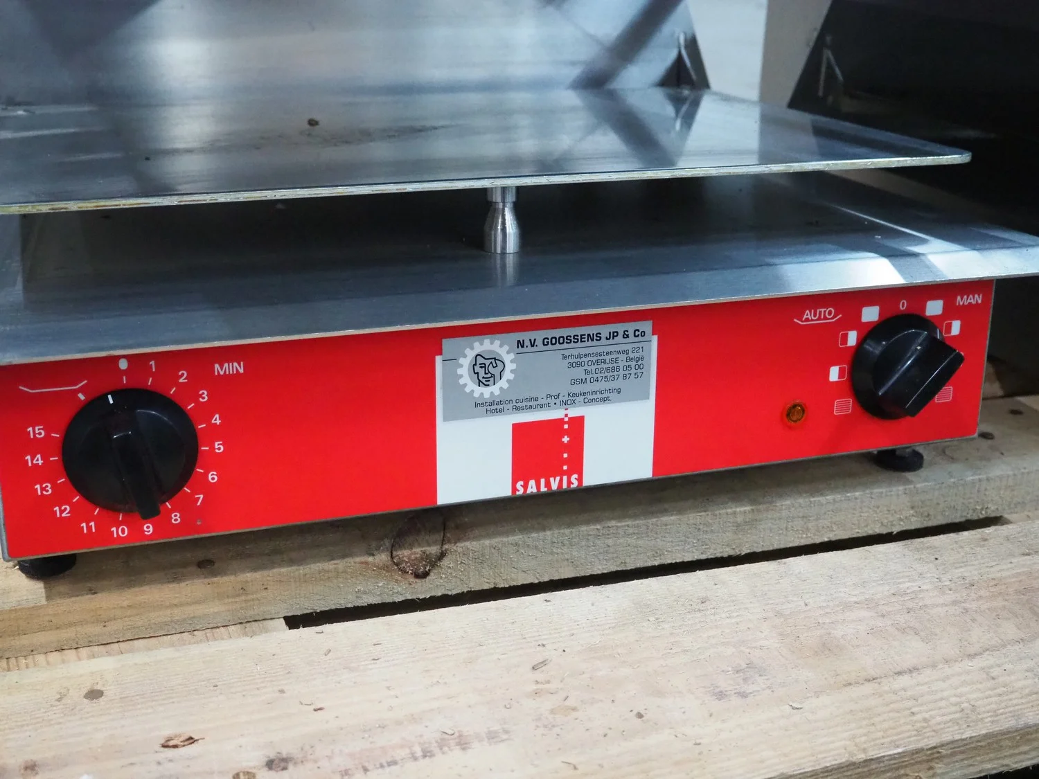 2 Salvis salamander grill, type: HL-C, serial number: 446812-BZ 1 and 419230-BZ 1, year of construction: 2016 and 2011, dimensions heater: (4x) 295 mm x 160 mm, plate dimensions: (2x) 480 mm x 330 mm, total dimensions: (2x) 600 mm x 530 mm x 445 mm.