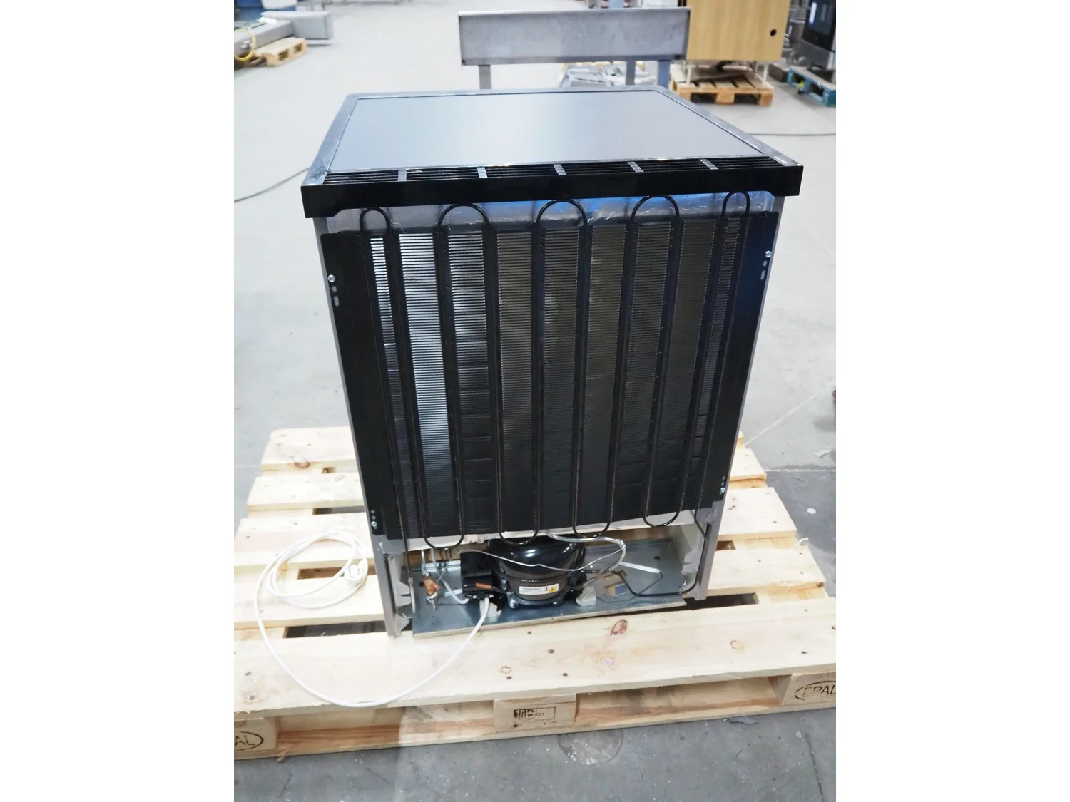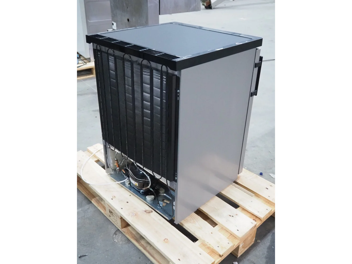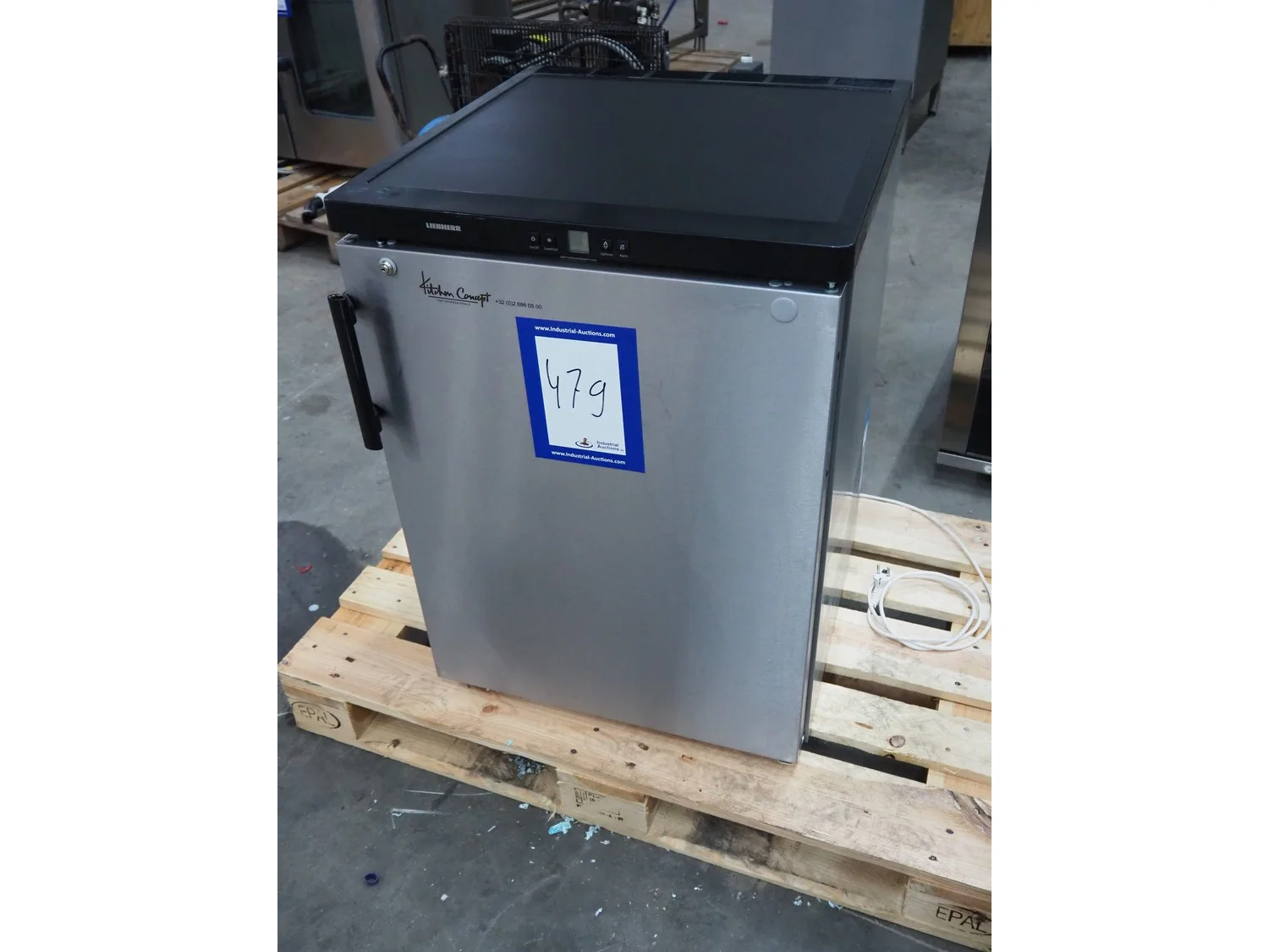 Liebherr shock freezer, serial number: 86.445.735.4, 220/240 V, 50 Hz, 0.6 A, 143 liter, refrigerant: R600a, 0.49 gram, 3 floors, floor dimensions: 470 mm x 430 mm, total dimensions: 650 mm x 600 mm x 850 mm.
