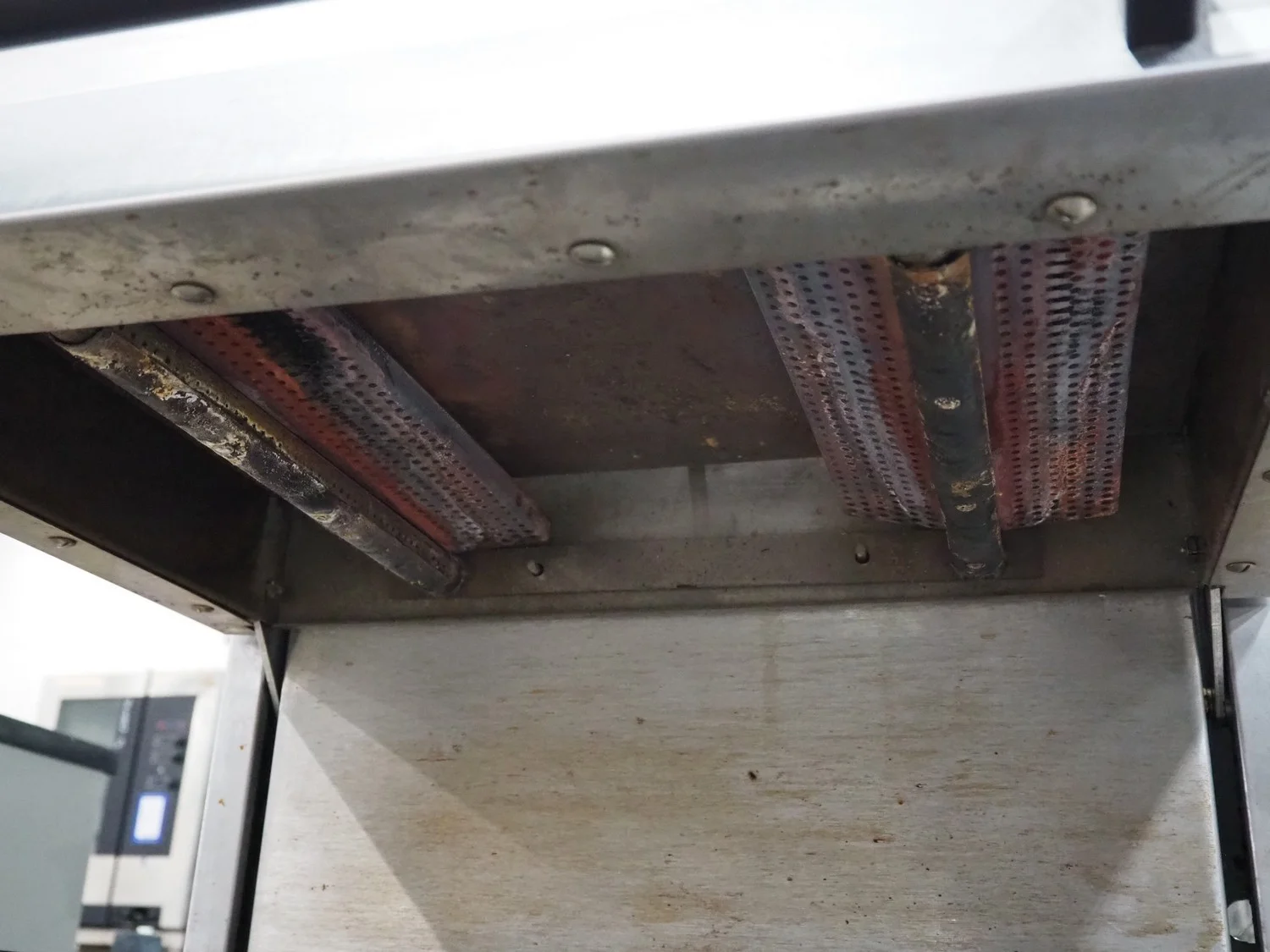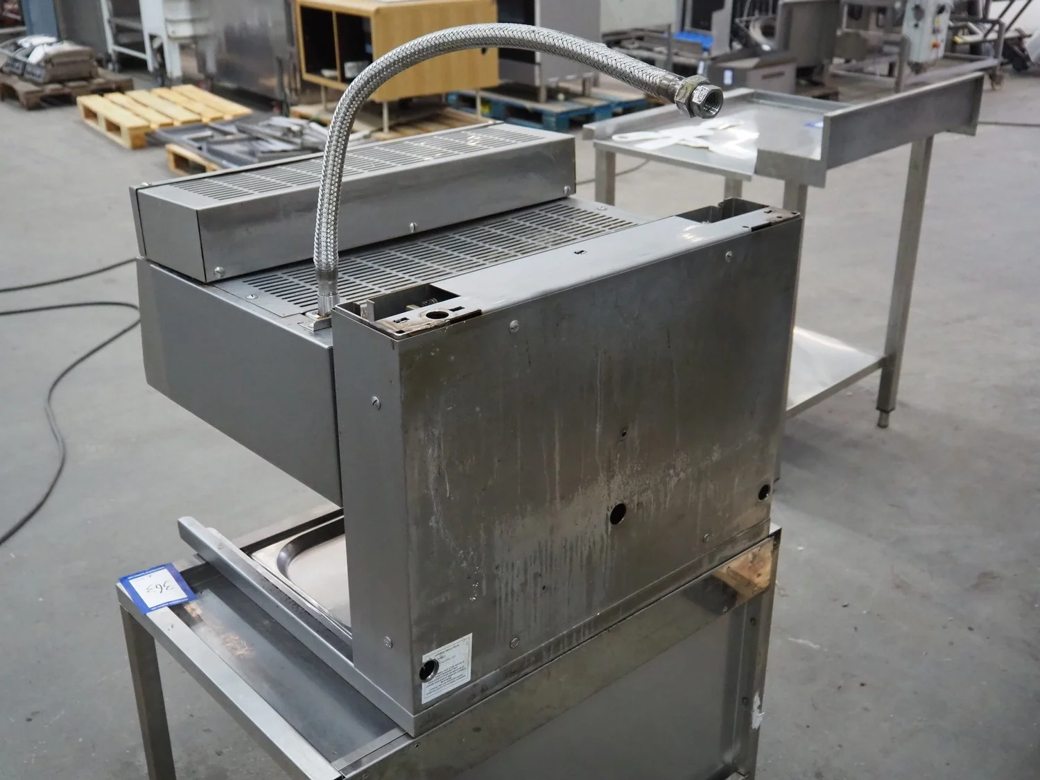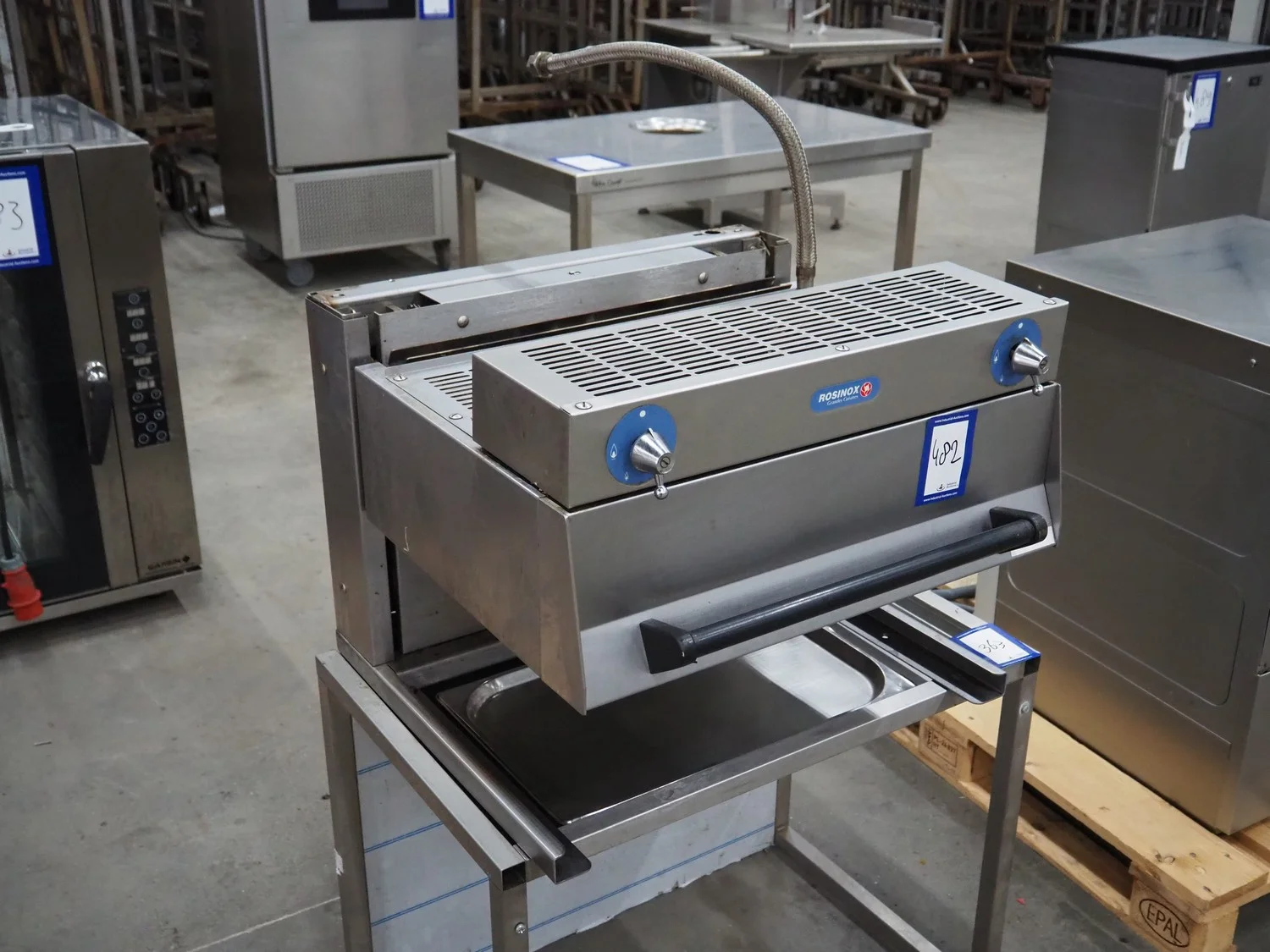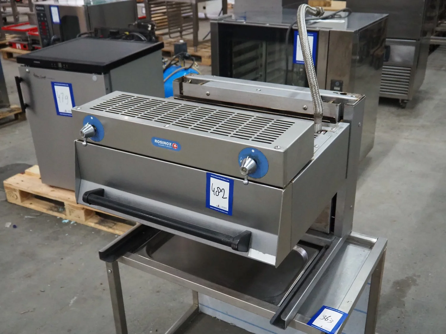 Rosinox gas heated grill, dimensions heated surface: 640 mm x 400 mm, total dimensions: 650 mm x 650 mm x 500 mm.