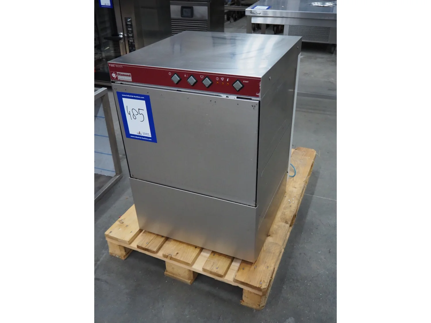 Diamond dishwasher, inside dimensions: 500 mm x 500 mm x 360 mm, total dimensions: 580 mm x 610 mm x 820 mm.