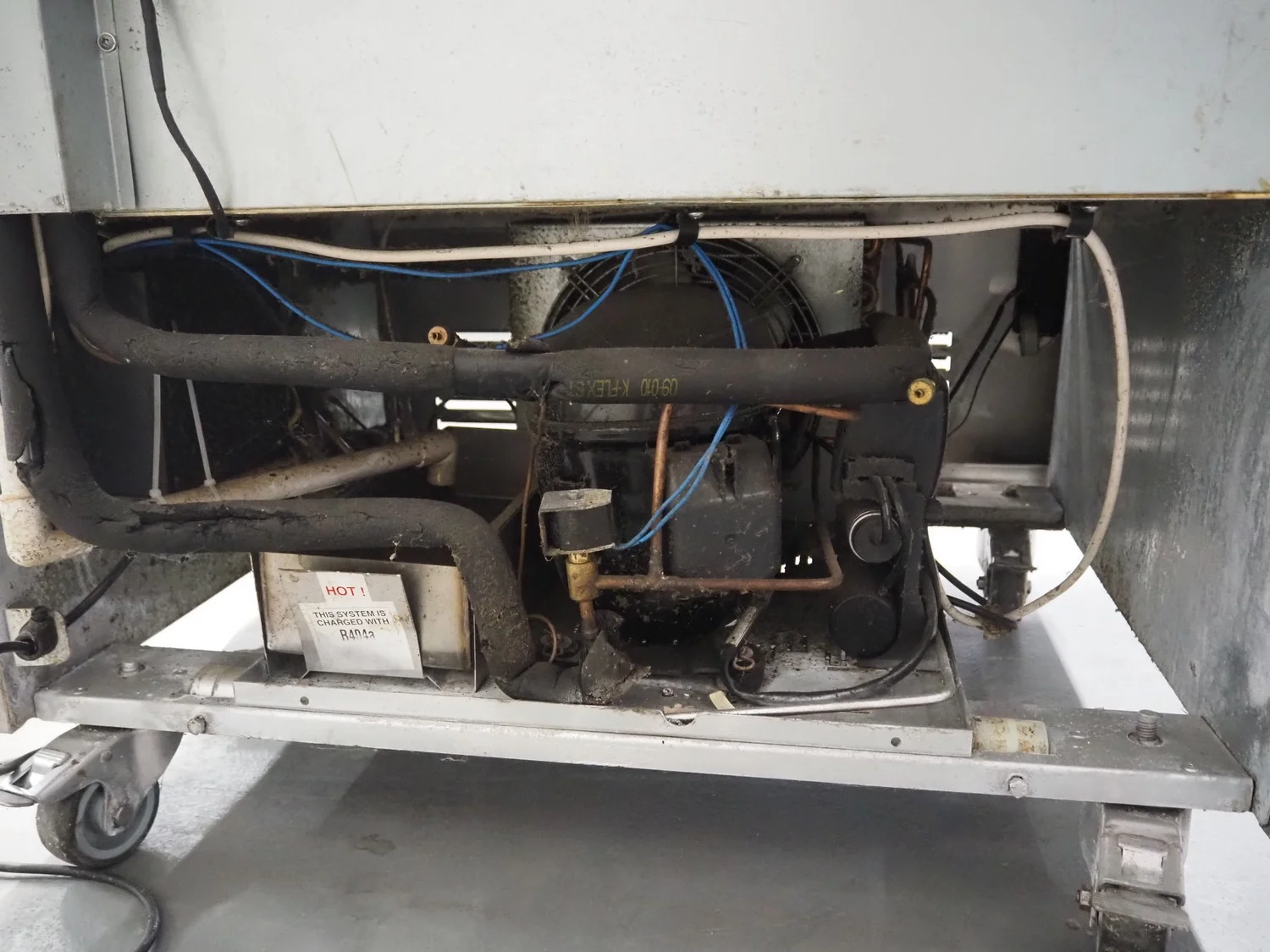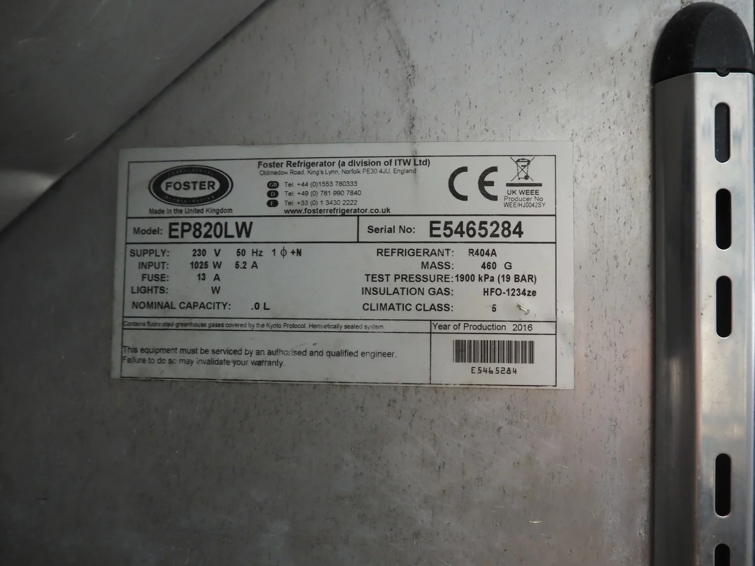Foster mobile refrigerator, model: EP820LW, serial number: E5465284, 230 V, 1 Ph, 50 Hz, 5.2 A, 1025 W, refrigerant: R404a, 3 floors, dimensions each floor: 540 mm x 650 mm, total dimensions: 800 mm x 700 mm x 2050 mm.
