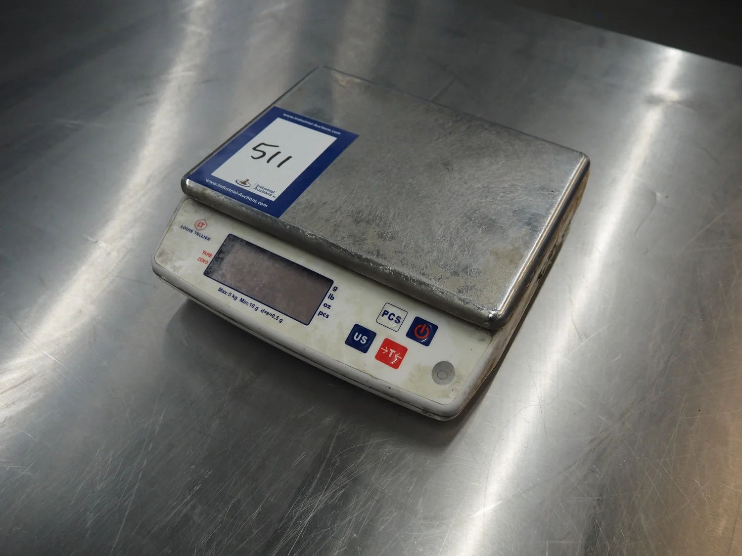 Louis Tellier weighing scale, serial numbe: T25030100, maximum weight: 5 kg, e=d= 0.5 gram, dimensions: 240 mm x 180 mm x 75 mm.
