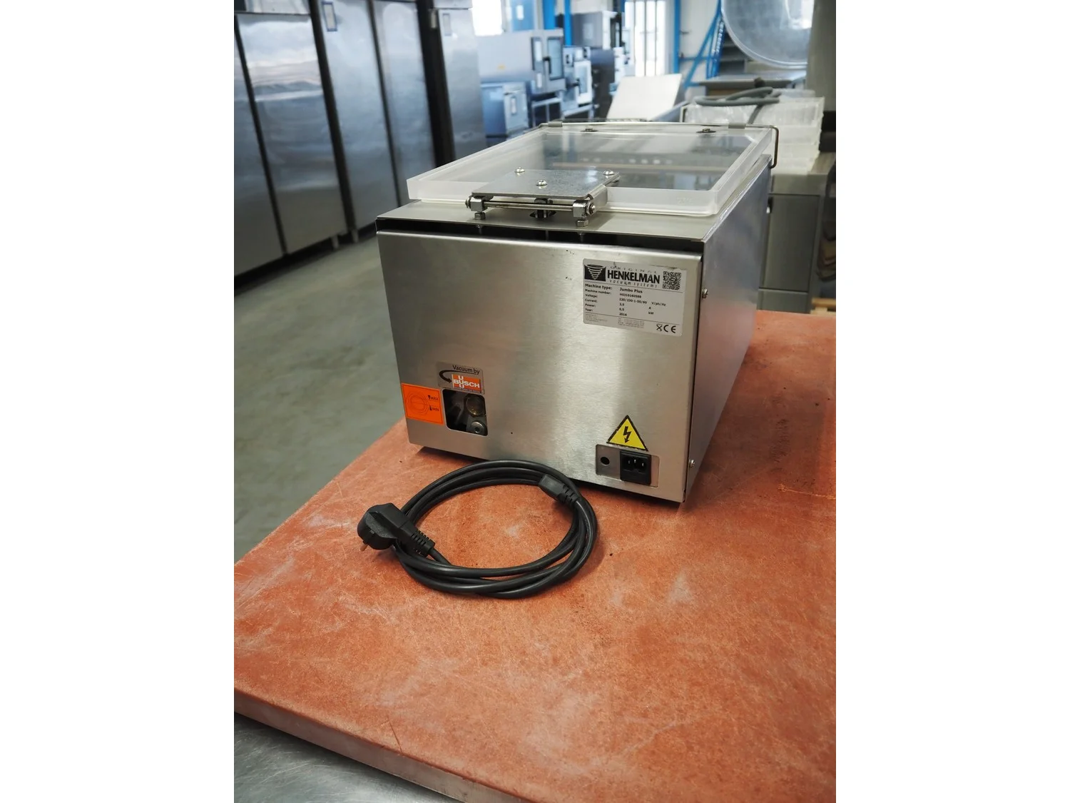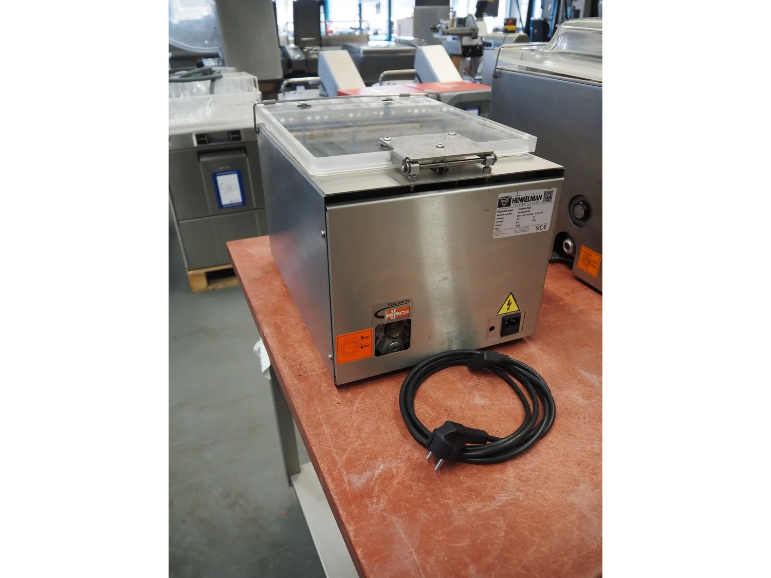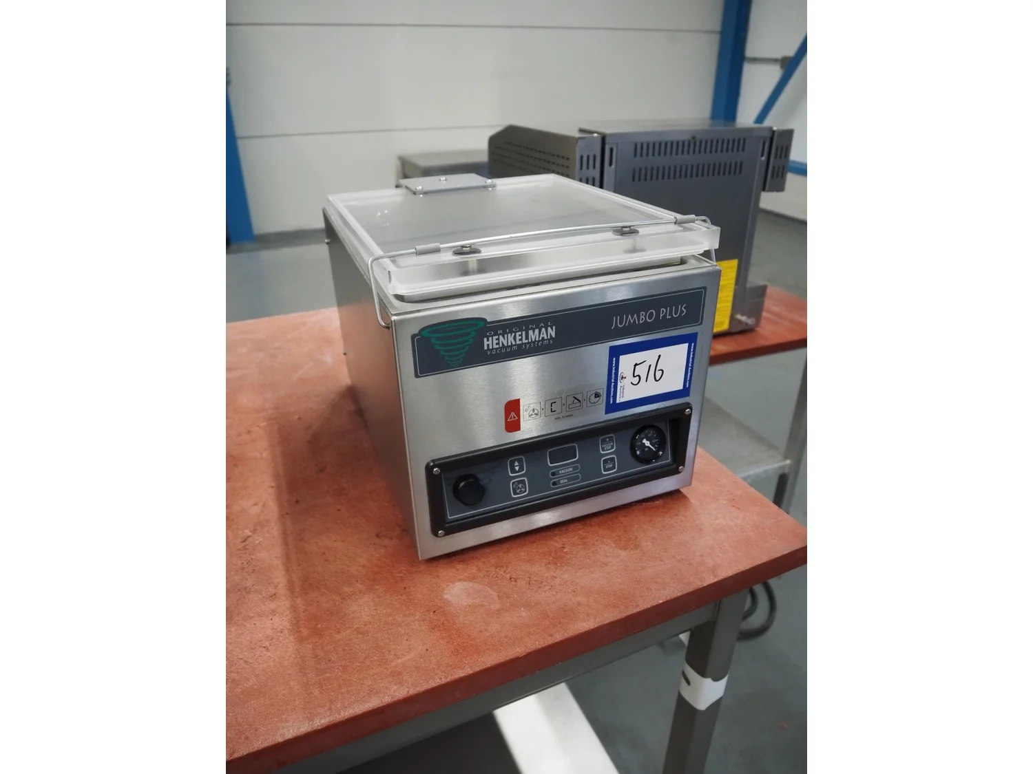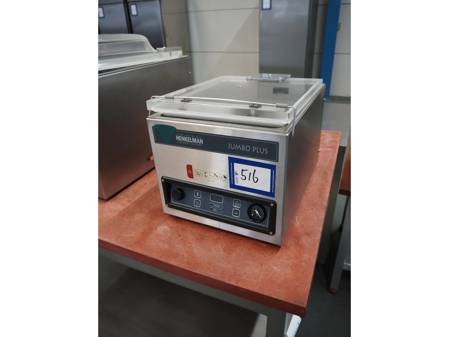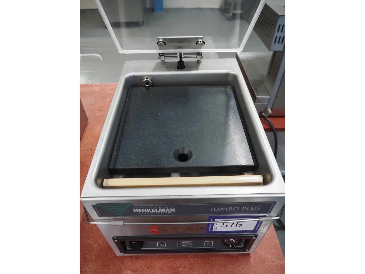 Henkelman vacuum machine, type: Jumbo Plus, machine number: H0J10160588, year of construction: 2016, 220/230 V, 1 Ph, 50/60 Hz, 3.5 A, 0.5 kW, seal length: 280 mm, chamber dimensions: 280 mm x 310 mm, total dimensions: 460 mm x 330 mm x 350 mm.