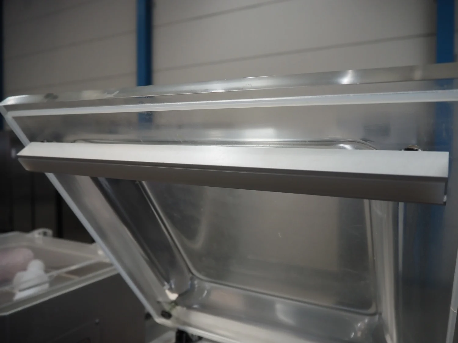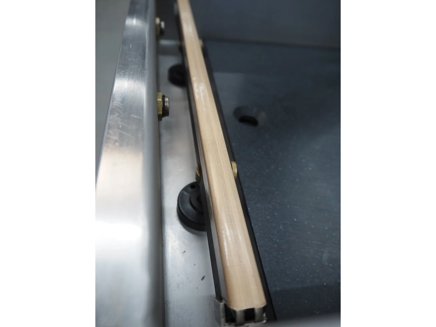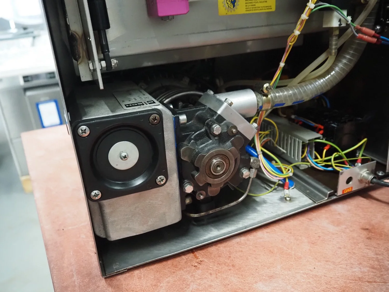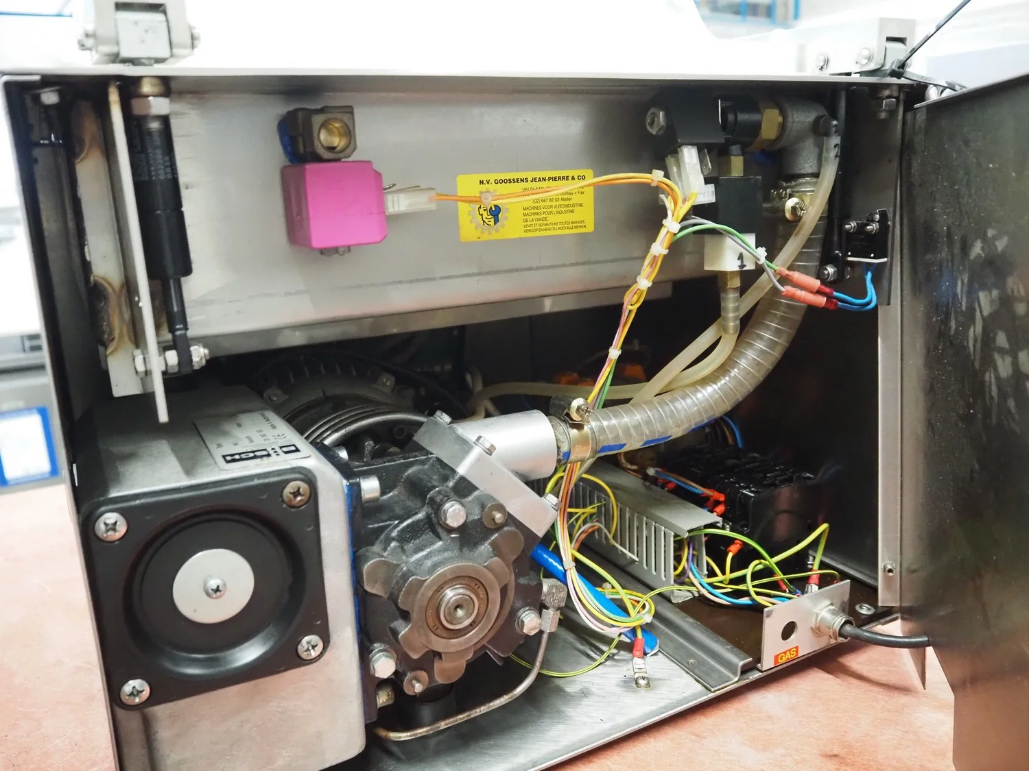 Henkelman vacuum machine, machine number: 20610283, year of construction: 1996, 230 V, 1 Ph, 50/60 Hz, 8 A, 1.6 kW, seal length: 410 mm, chamber dimensions: 425 mm x 4100 mm, total dimensions: 520 mm x 500 mm x 450 mm.