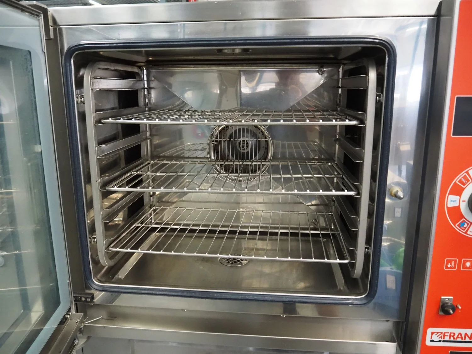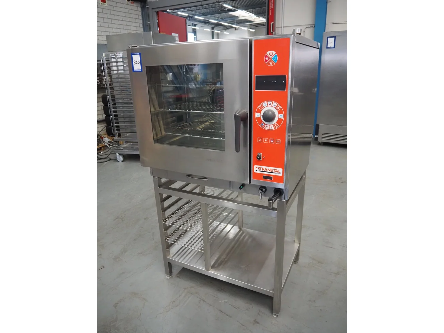 Franstal combisteamer on s/s frame, type: ME061T, serial number: LA020009220, 6 floors, floor dimensions: 530 mm x 300 mm, total dimensions: 950 mm x 900 mm x 1720 mm.
