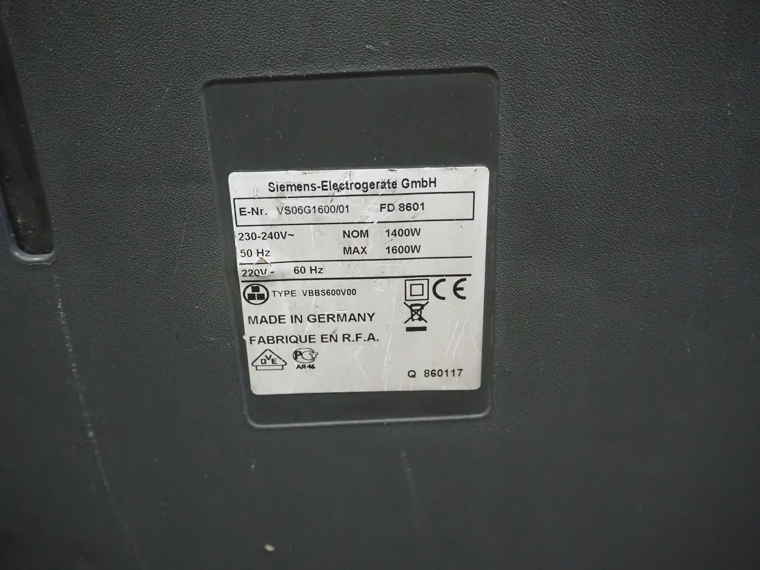 Siemens vacuum cleaner, 1600 Watt.