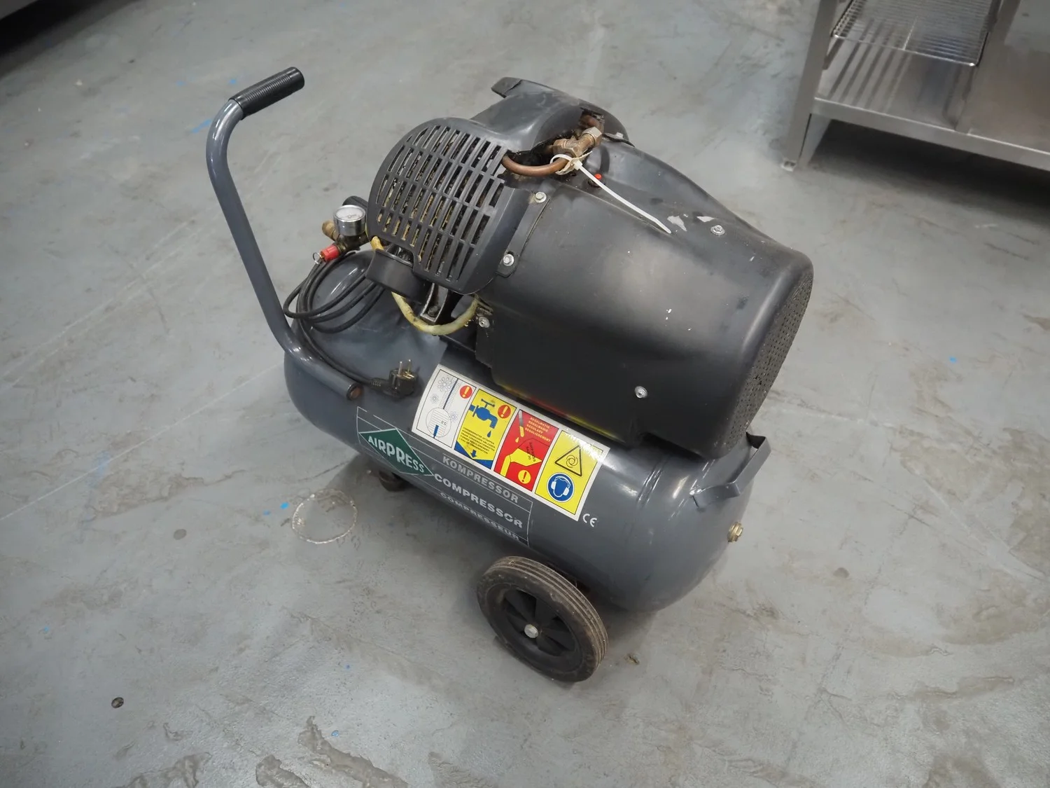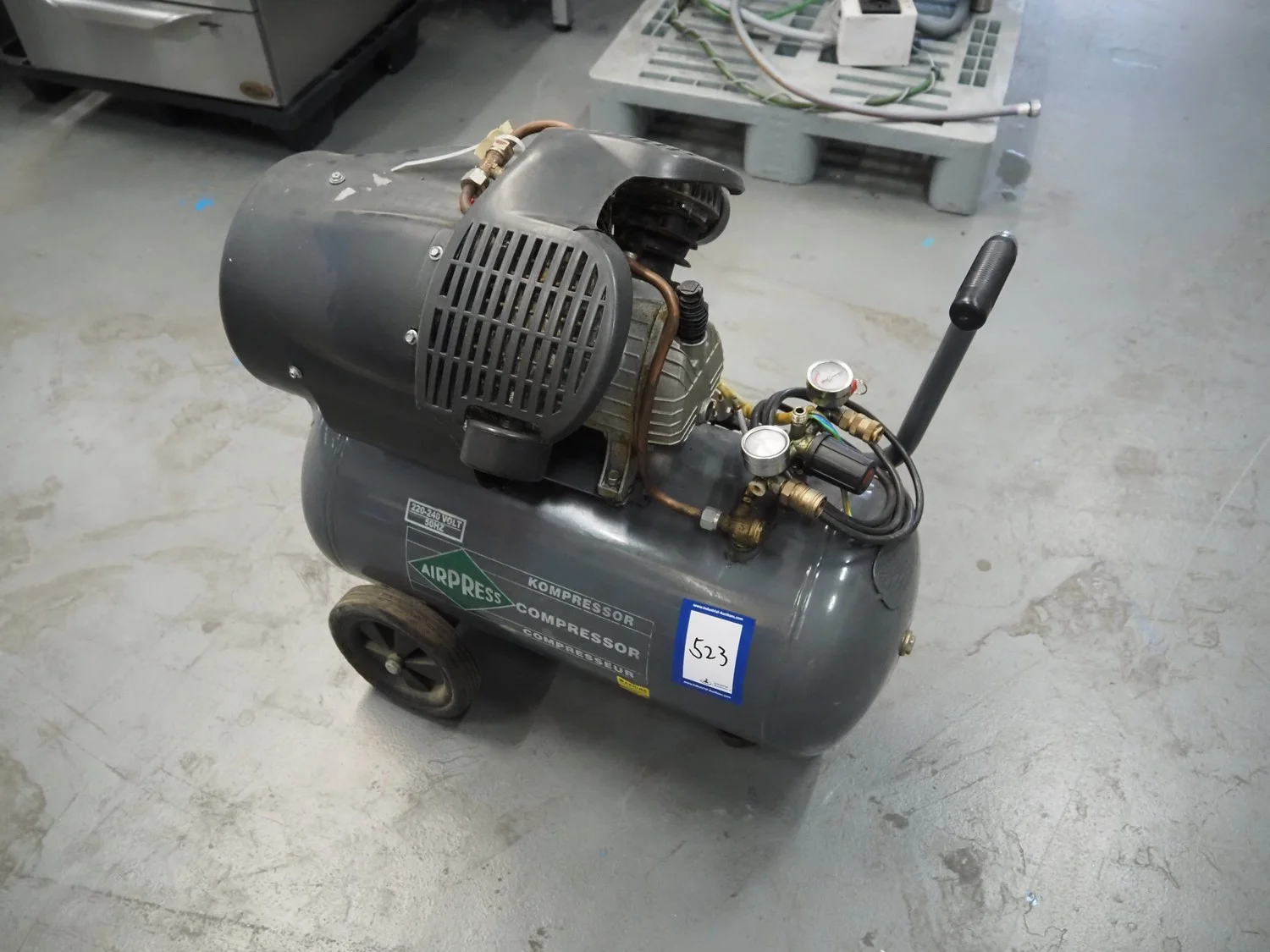 Airpress air compressor, 220/240 V, 50 Hz, dimensions: 670 mm x 620 mm x 665 mm.