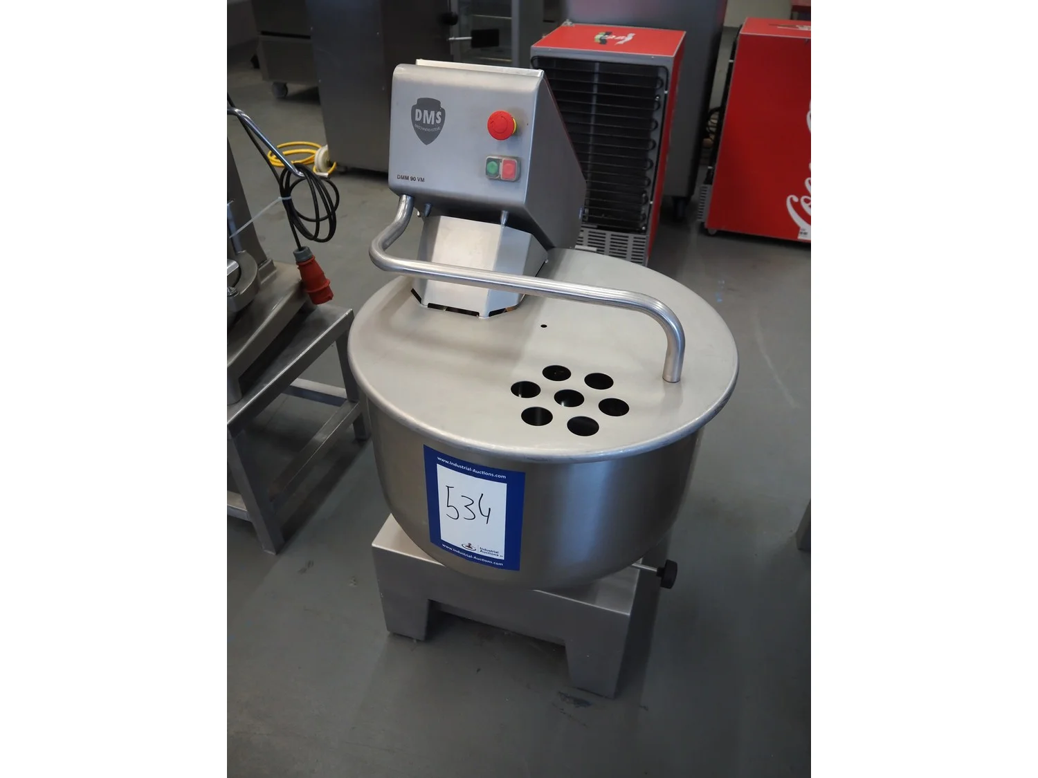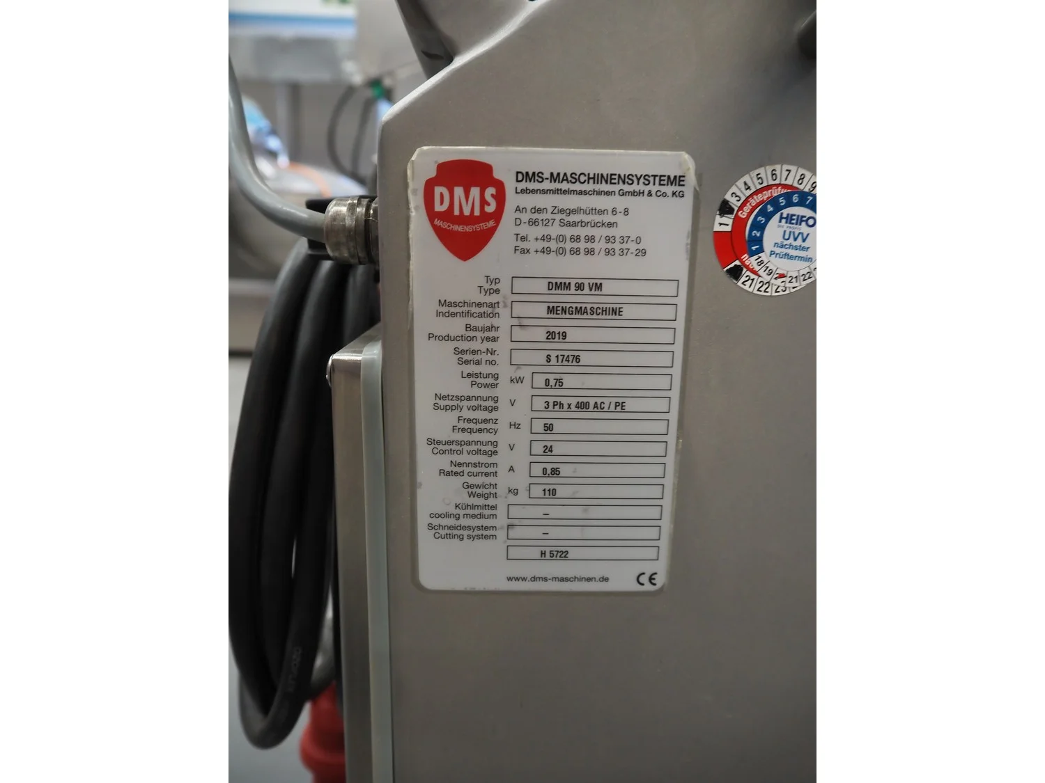 DMS mixer, type: DMM 90 VM, serial number: S 17476, year of construction: 2019, 400 V, 3 Ph, 50 Hz, 0.85 A, 0,75 kW, weight: 110 kg, volume: 90 liter, dimensions: 600 mm x 900 mm x 1120 mm.