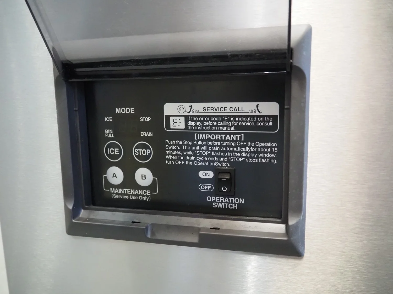 Hoshizaki ice machine, model: FM-150KE-50-N, serial number: G21816, 220-240 V, 50 Hz, 5 A, weight: 81 kg, refrigerant: R134a, dimensions: 940 mm x 620 mm x 800 mm.