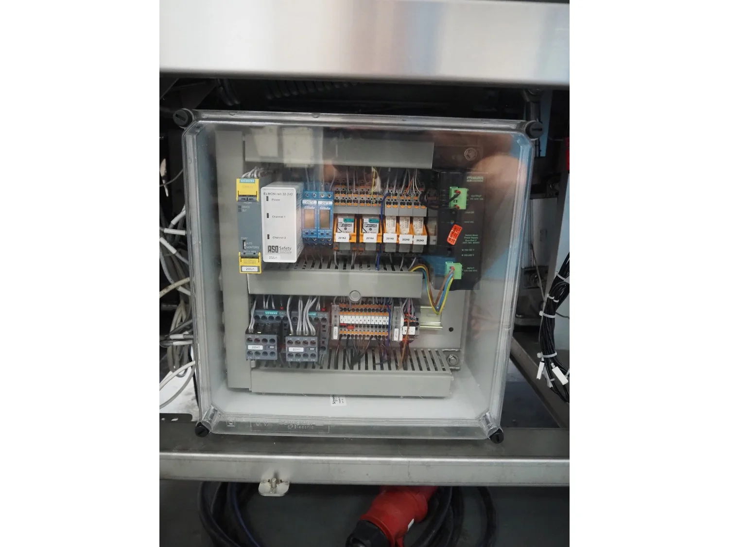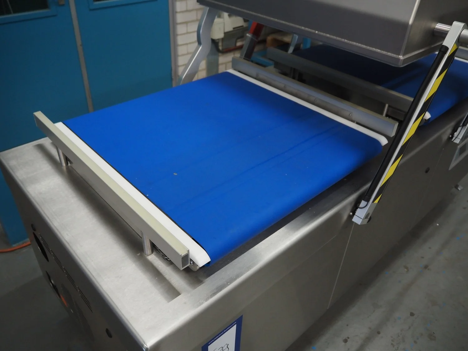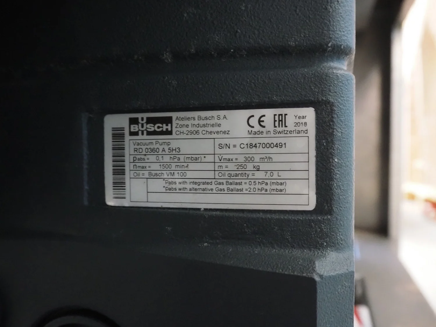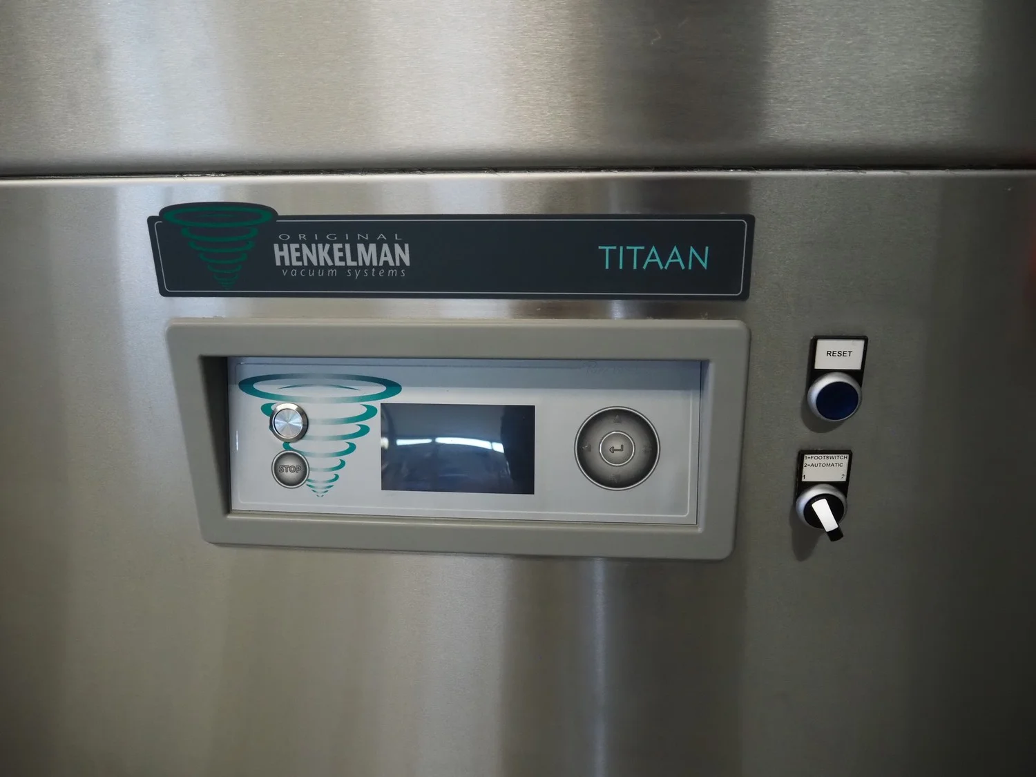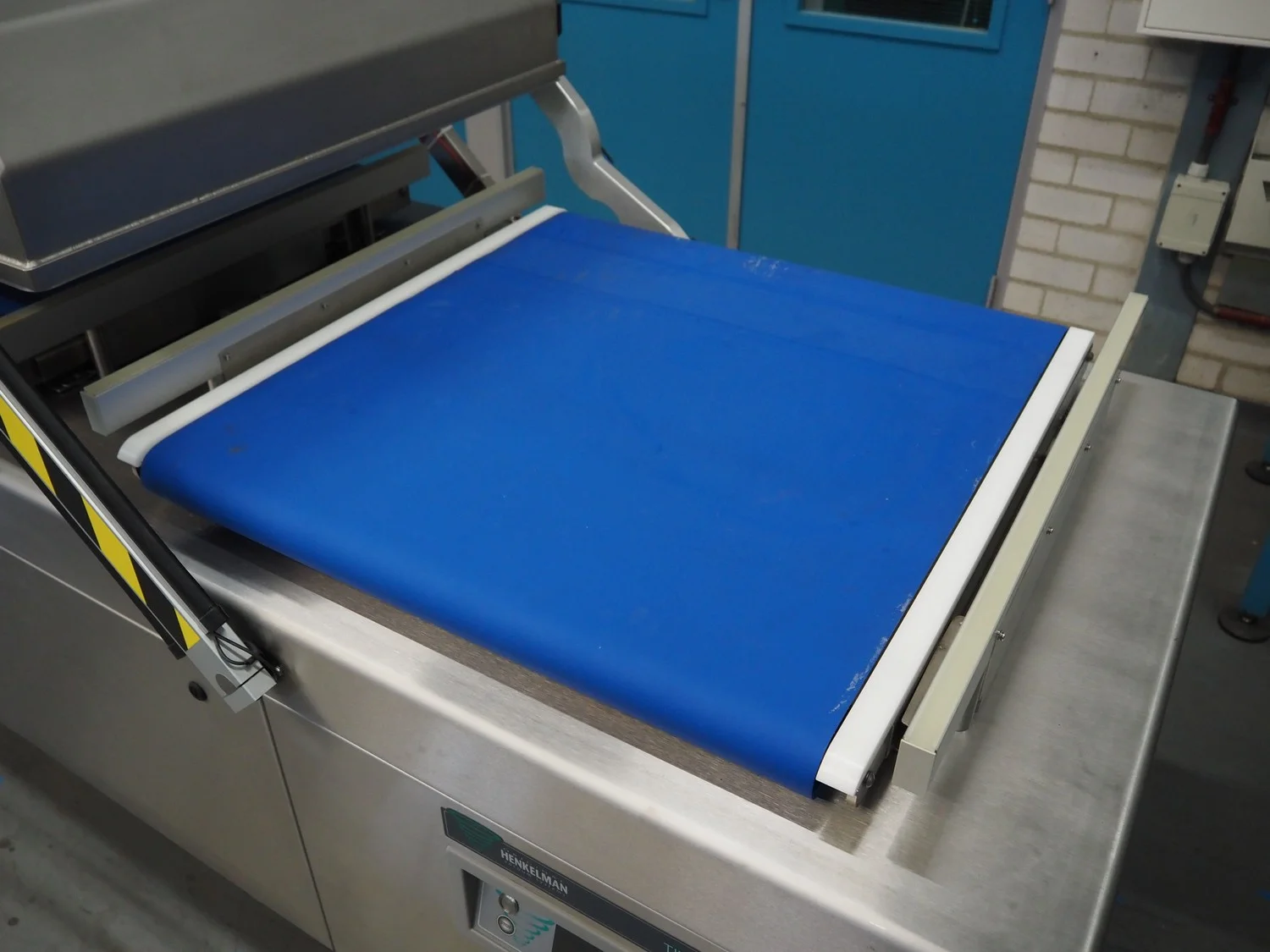 Henkelman mobile double chamber vacuum machine, type: Titaan 2-90, machine number: HTN10190004, year of construction: 2019, 400 V, 3 Ph, 50 Hz, 5.5 kW, seal length: (4x) 850 mm, chamber dimensions: (2x) 850 mm x 900 mm, working hours: 46:32, Busch vacuum pump, type: RD 0360 A 5H3, capacity: 300 m³ per hour, total dimensions: 2500 mm x 1200 mm x 1150 mm.